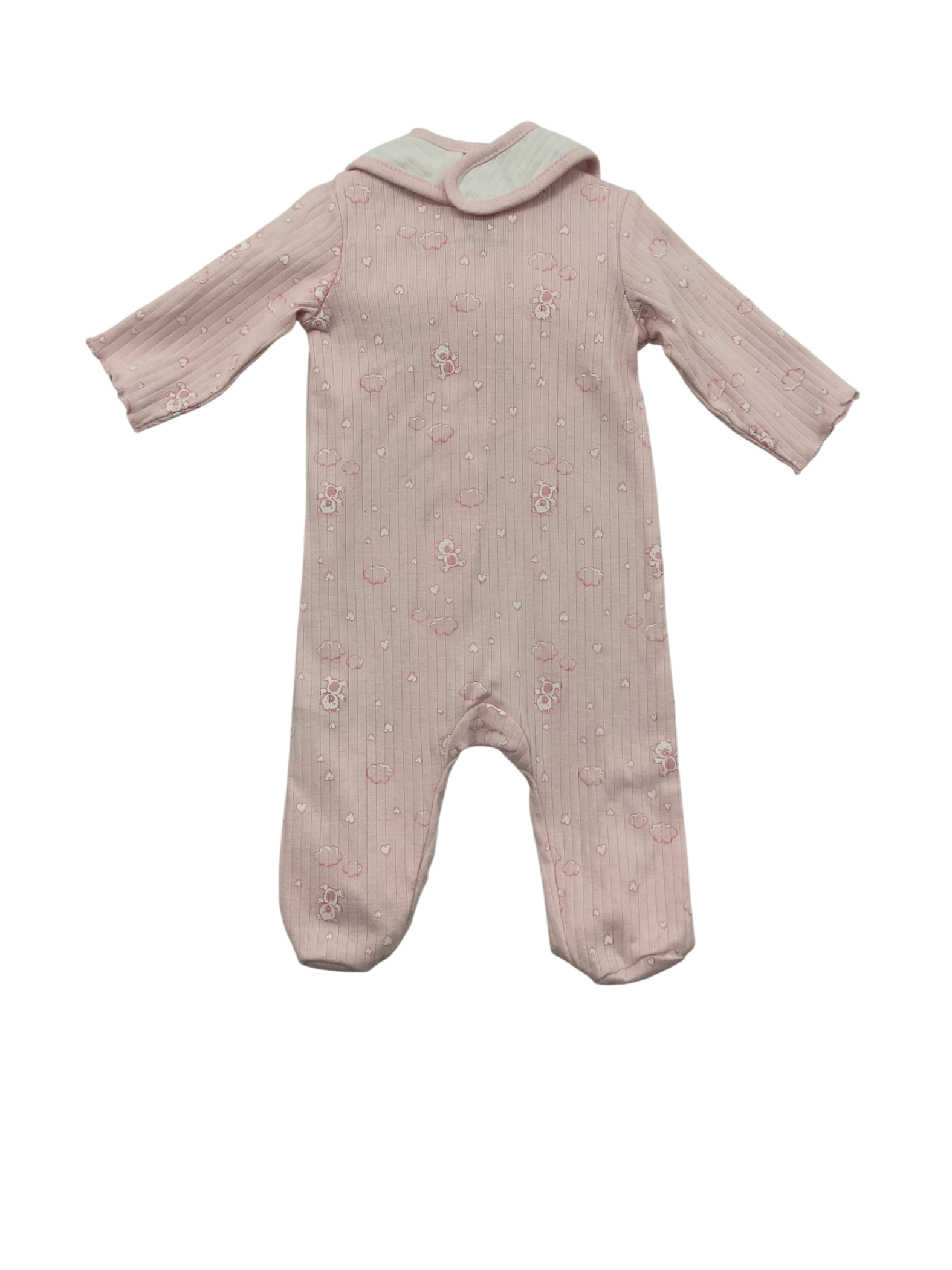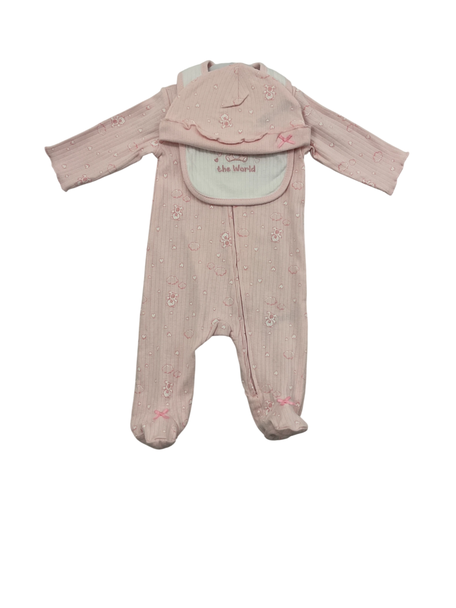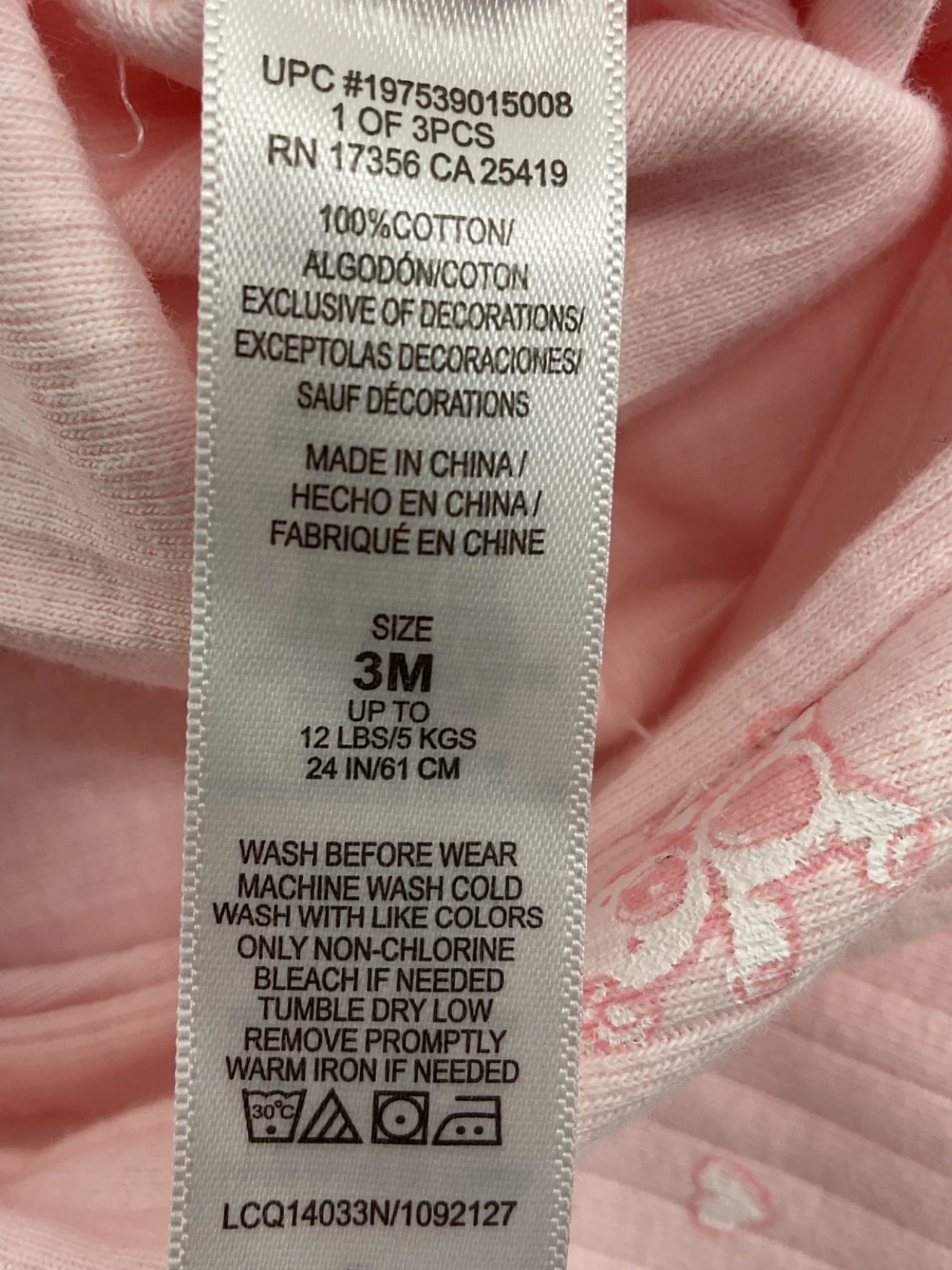 A pink onesie and a pink hat with long sleeves for a 3-month-old baby.