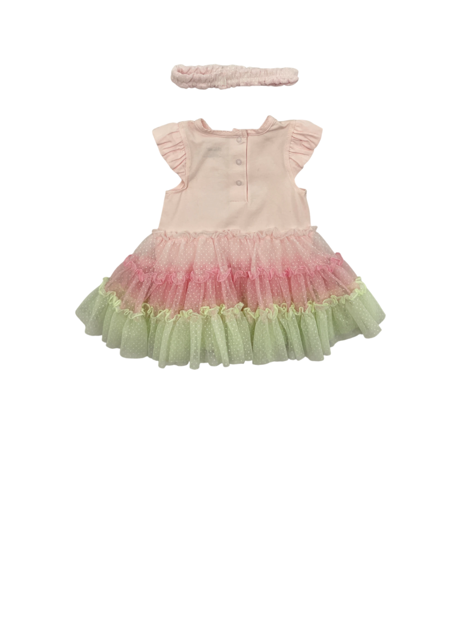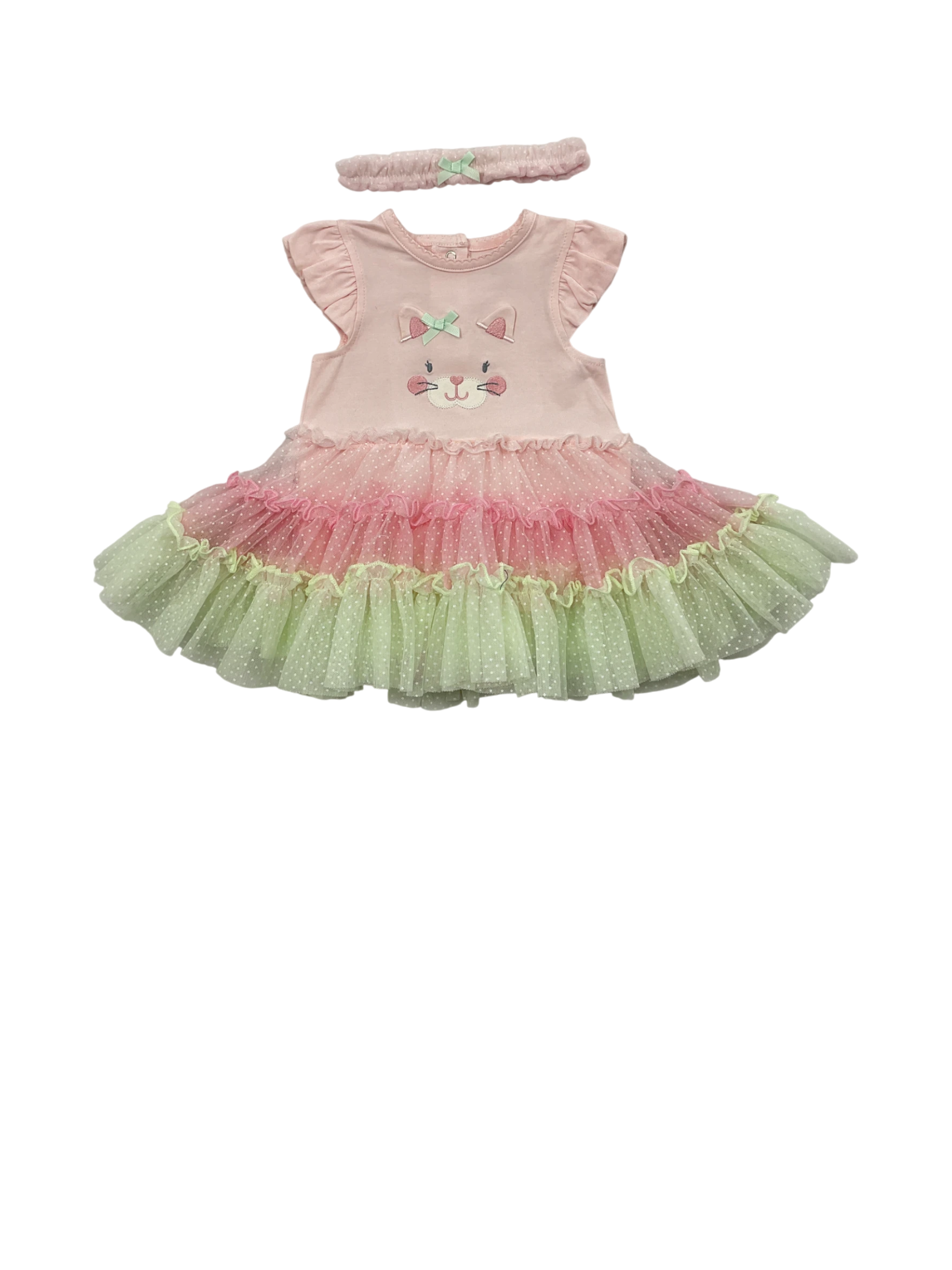 Little Me Tutu Popover Baby Girl Dress with Headband featuring a multicolor design and kitty embellishment.