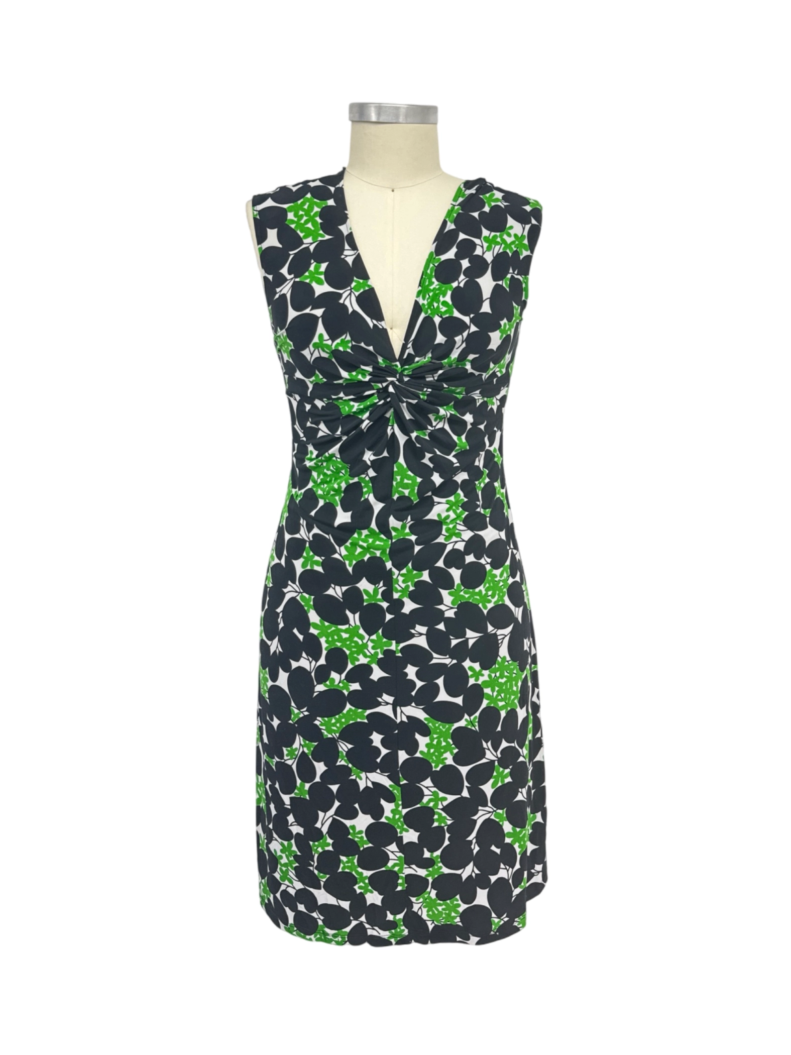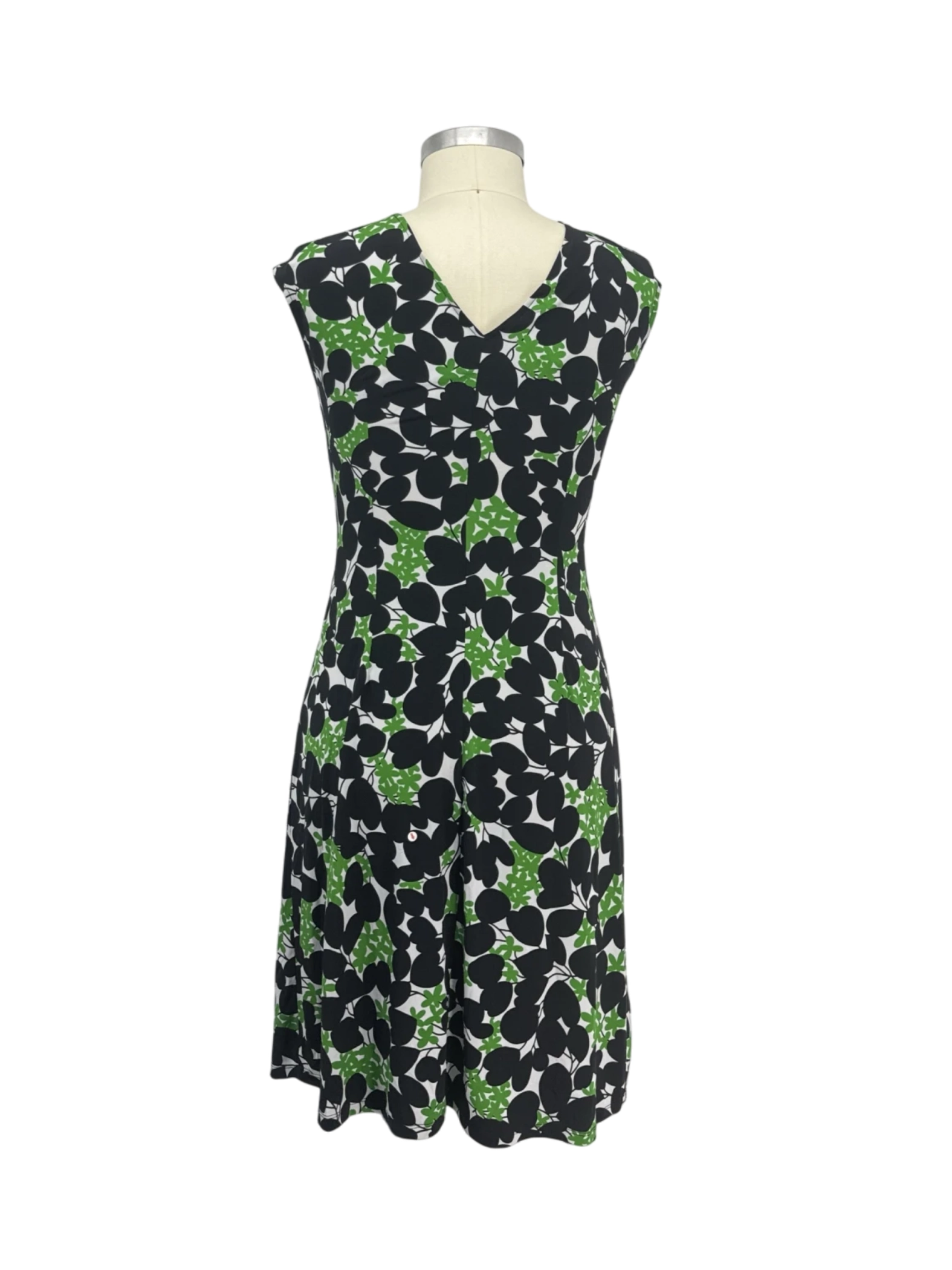 A women's midi dress in size 12, featuring a floral design in green, black, and white.
