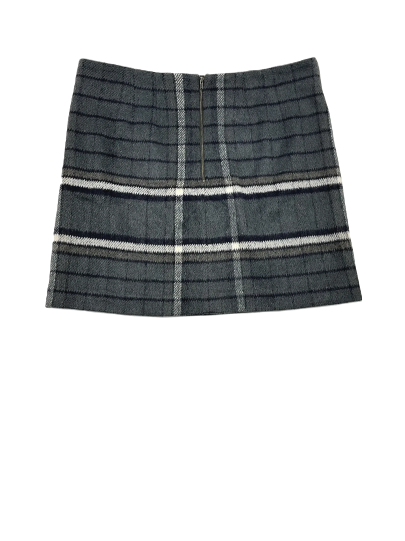 Elevate your wardrobe with this stylish pre-owned LOFT Outlet skirt. Featuring a chic plaid design in shades of gray, this skirt is perfect for fall and winter. Crafted from a blend of acrylic, polyester, and wool, it offers both comfort and durability. The A-line silhouette flatters your figure, while the mini length adds a touch of sophistication. This skirt is a versatile addition to any closet, ideal for pairing with sweaters, blouses, or boots.