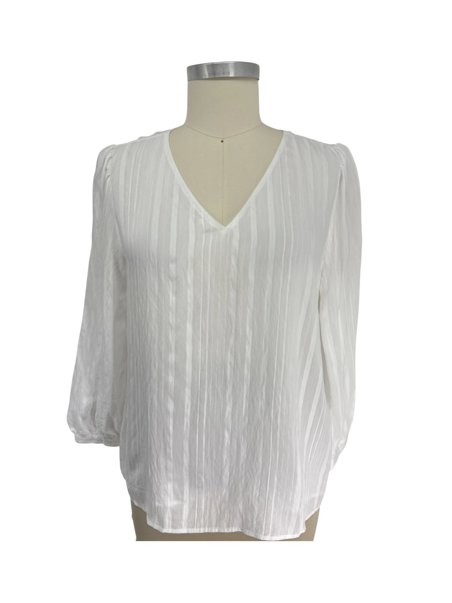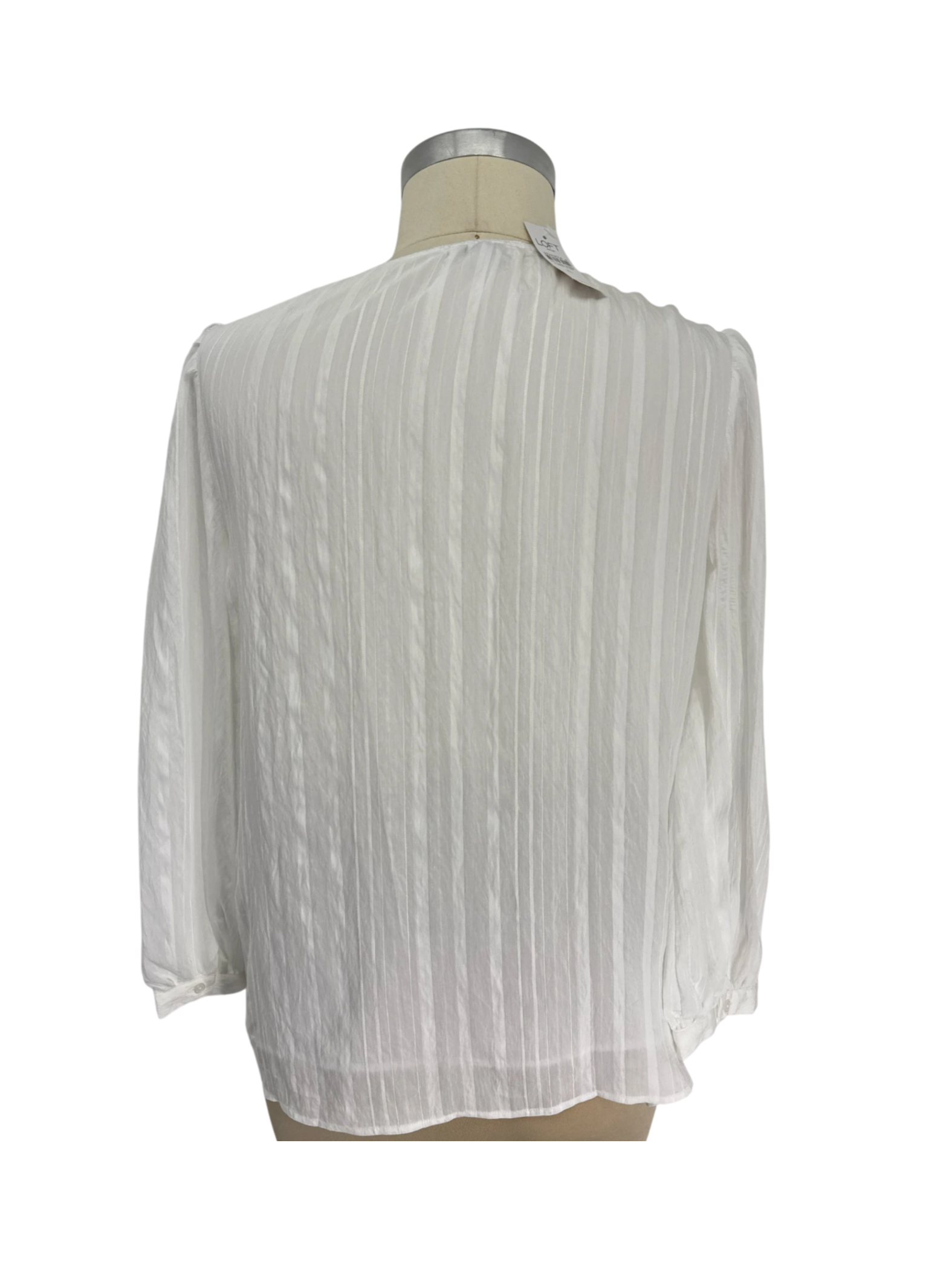 This stylish pre-owned Loft blouse is a versatile addition to any wardrobe. Crafted with a soft, flowy material, this top features a flattering V-neck and long sleeves, perfect for a variety of occasions. The clean white color makes it easy to pair with any outfit. Ideal for a casual day out or dressing up for a special event, this blouse offers both comfort and elegance. This Loft blouse is a must-have for any fashion-conscious individual.