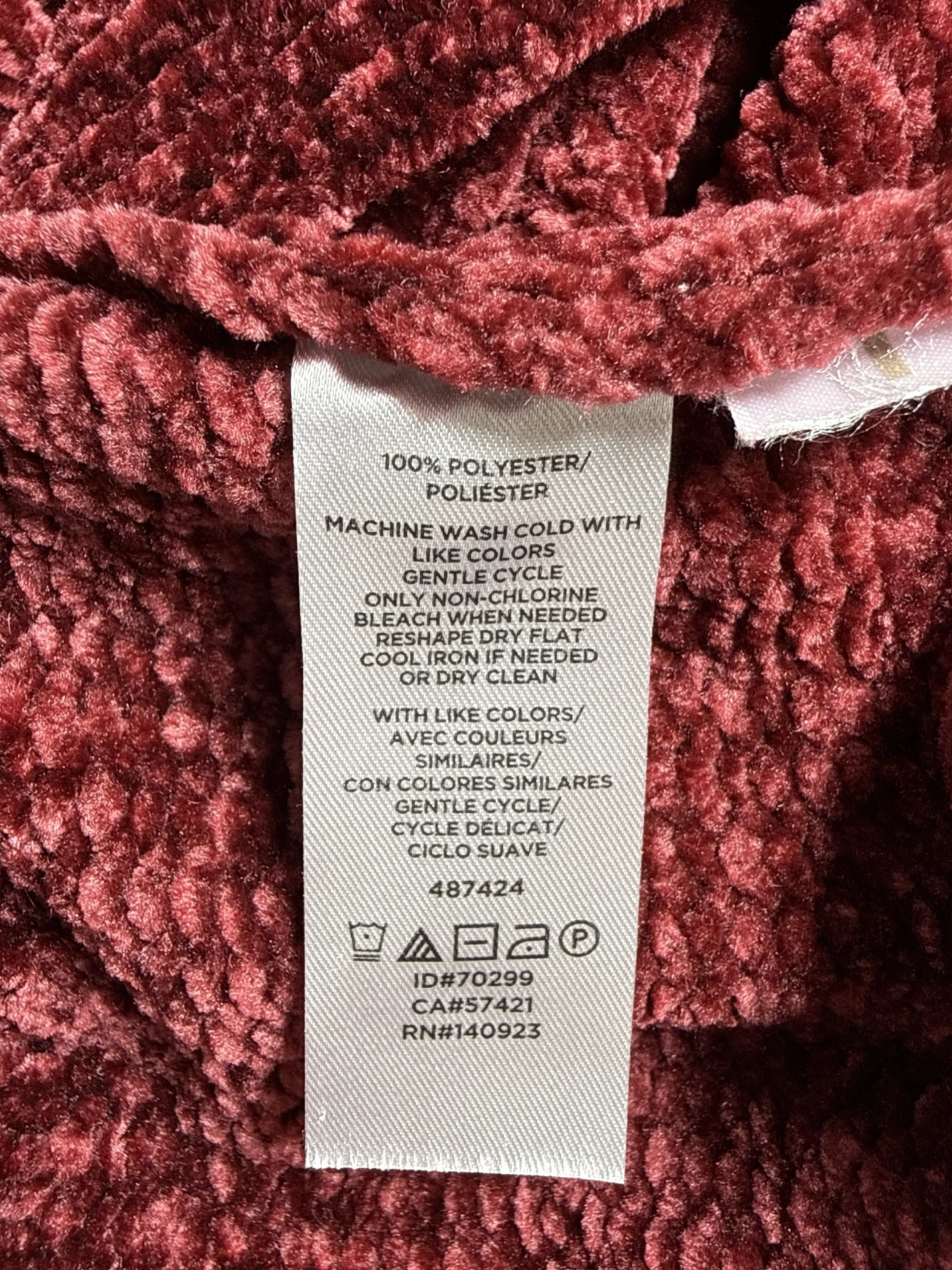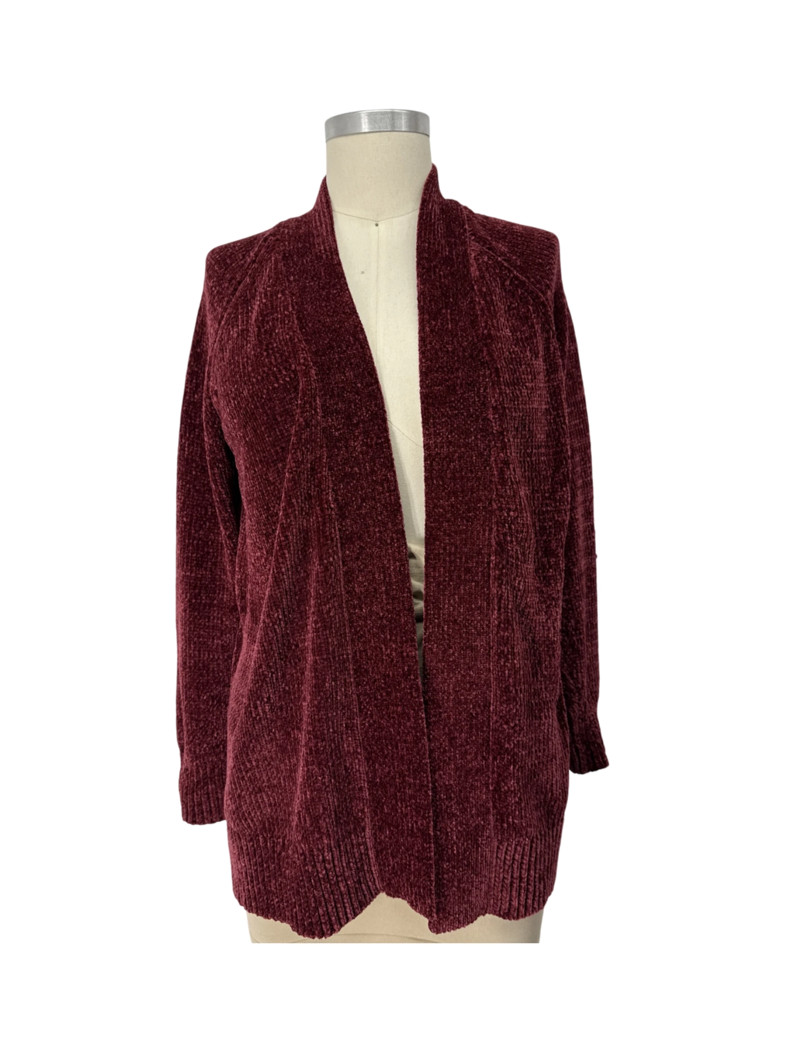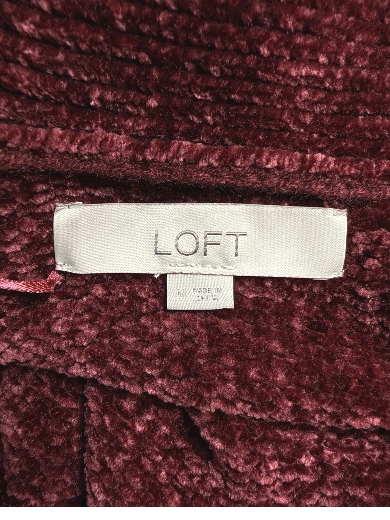 Cozy up in this pre-owned LOFT burgundy cardigan. This versatile piece is perfect for layering, providing both warmth and style. Crafted from soft polyester, this cardigan offers a comfortable fit. It's a must-have for your fall and winter wardrobe, easily paired with jeans, skirts, or dresses. The classic design and rich color make it a timeless addition to any closet, perfect for casual wear or dressing up an outfit.