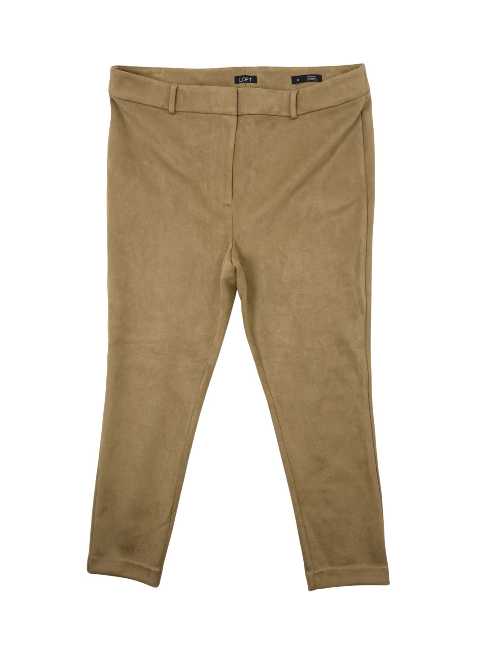 Elevate your wardrobe with these stylish pre-owned LOFT dress pants. Featuring a sleek, skinny leg silhouette, these pants offer a flattering fit for any occasion. The rich brown color and durable polyester material make them a versatile addition to your collection. Ideal for creating polished looks. Get ready to step out in style with these timeless LOFT dress pants.