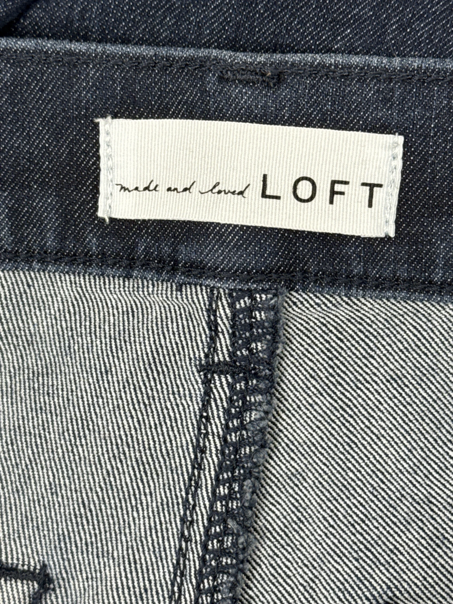 These pre-owned LOFT jeans offer a chic and flattering fit. The dark denim wash and skinny leg create a sleek silhouette. Featuring stylish button details, these jeans are a versatile addition to any wardrobe. Made from durable denim, they're perfect for everyday wear. Elevate your style with these fashionable and timeless jeans.