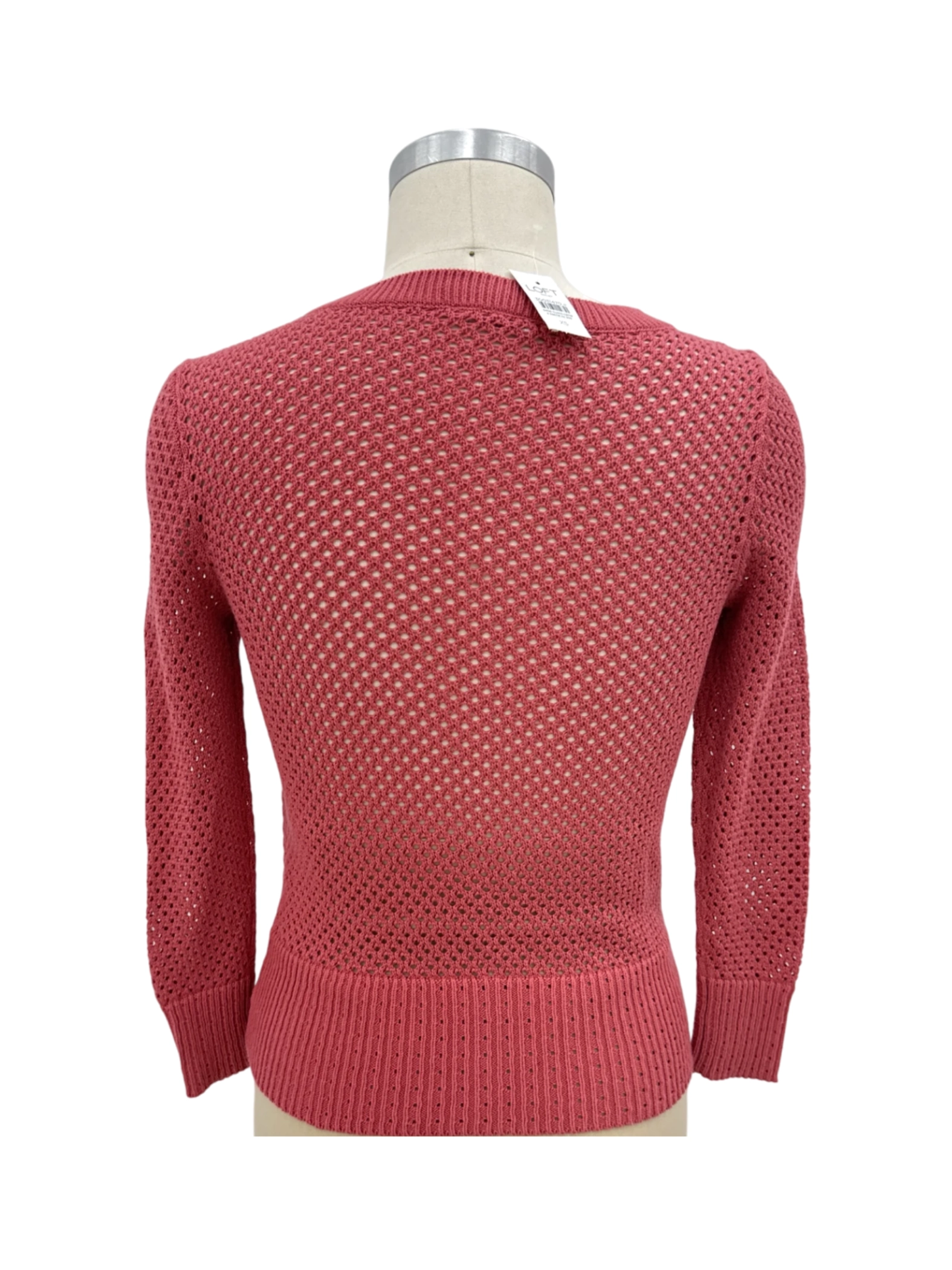 This pre-owned LOFT sweater is a stylish addition to any wardrobe. Crafted from breathable cotton, it features a unique open knit design and a flattering round neckline. The pink hue adds a touch of color, perfect for layering during the transition seasons. This comfortable sweater is ideal for both casual and semi-formal occasions, offering versatile wearability. The XS size ensures a tailored fit, making it a wardrobe staple. Add a touch of elegance to your outfits with this classic sweater!