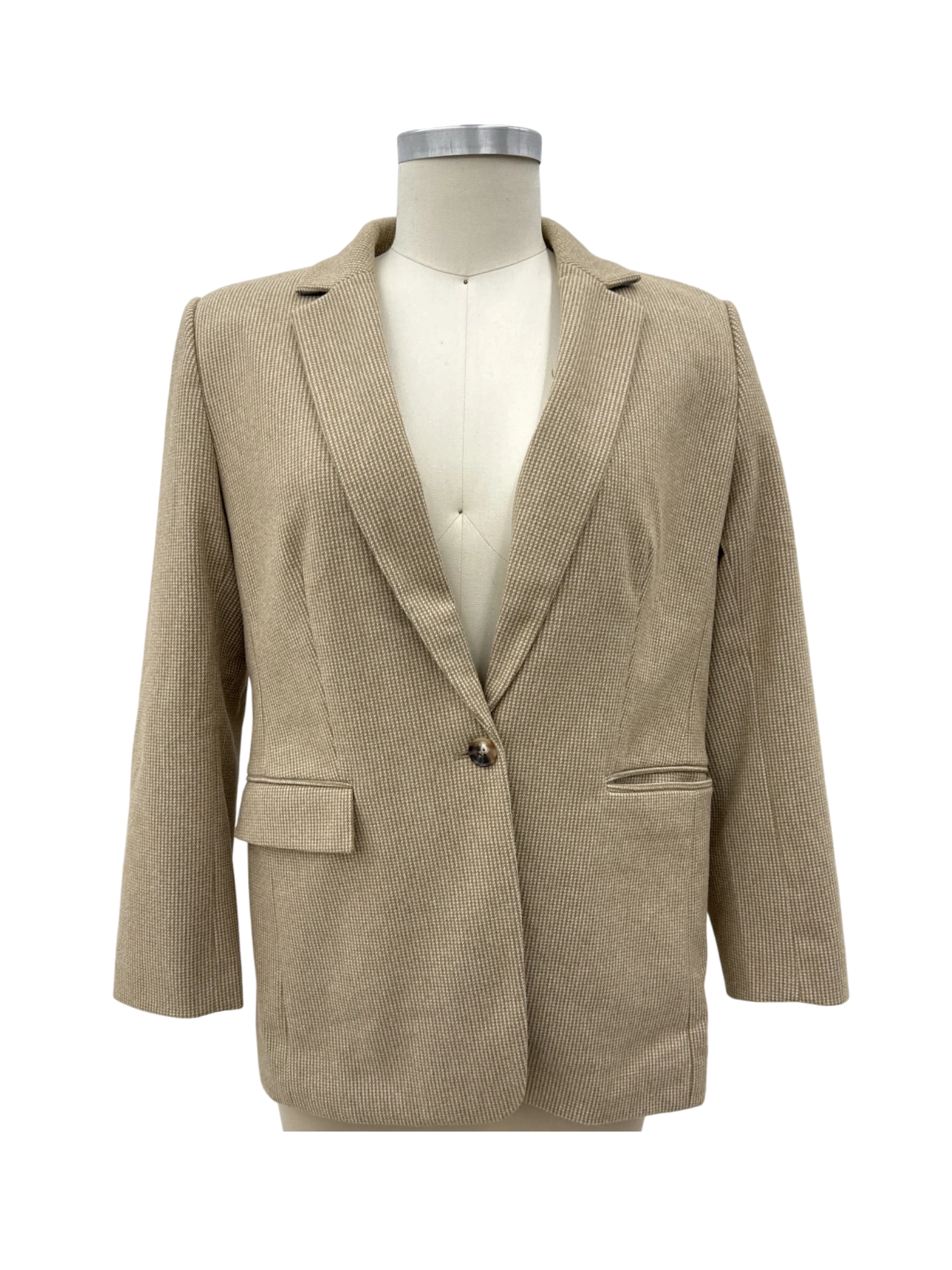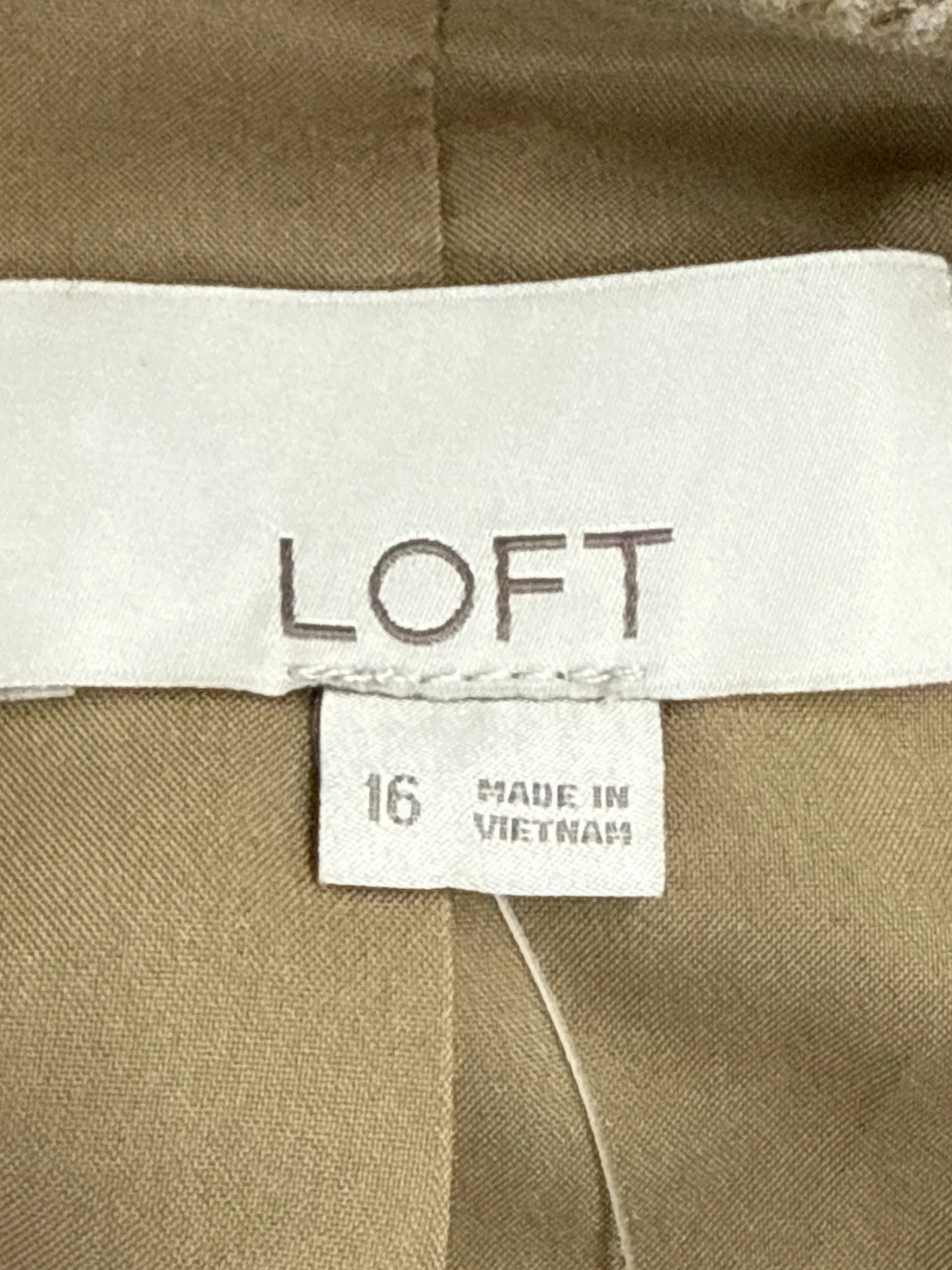 Elevate your wardrobe with this stylish pre-owned LOFT blazer. This sophisticated jacket is perfect for adding a touch of class to any outfit. The tailored fit and neutral color make it versatile for both professional and casual settings. Crafted from high-quality materials, this blazer is designed for comfort and durability. Ideal for the office, a night out, or any occasion where you want to make a statement. Available in size 16. A must-have for the fashion-conscious woman.