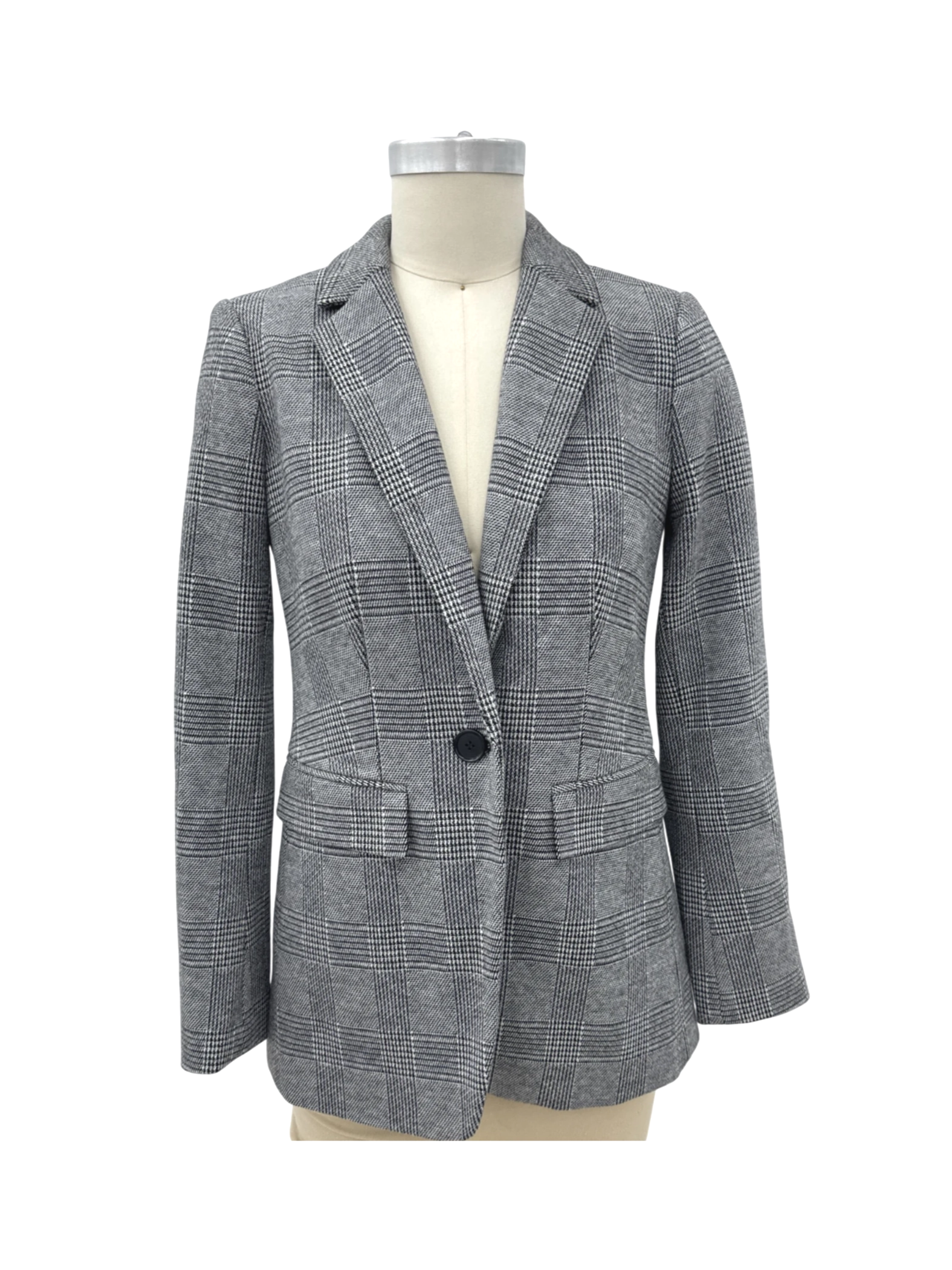 Elevate your wardrobe with this stylish pre-owned LOFT blazer, perfect for adding a touch of sophistication to any outfit. The blazer features a classic checkered pattern in shades of gray, making it a versatile piece for both professional and casual settings. Crafted from a blend of polyester, rayon, and spandex, this blazer offers a comfortable fit with a flattering silhouette. With its timeless design and quality construction, this LOFT blazer is a must-have addition to your collection. Great for layering in spring and fall.