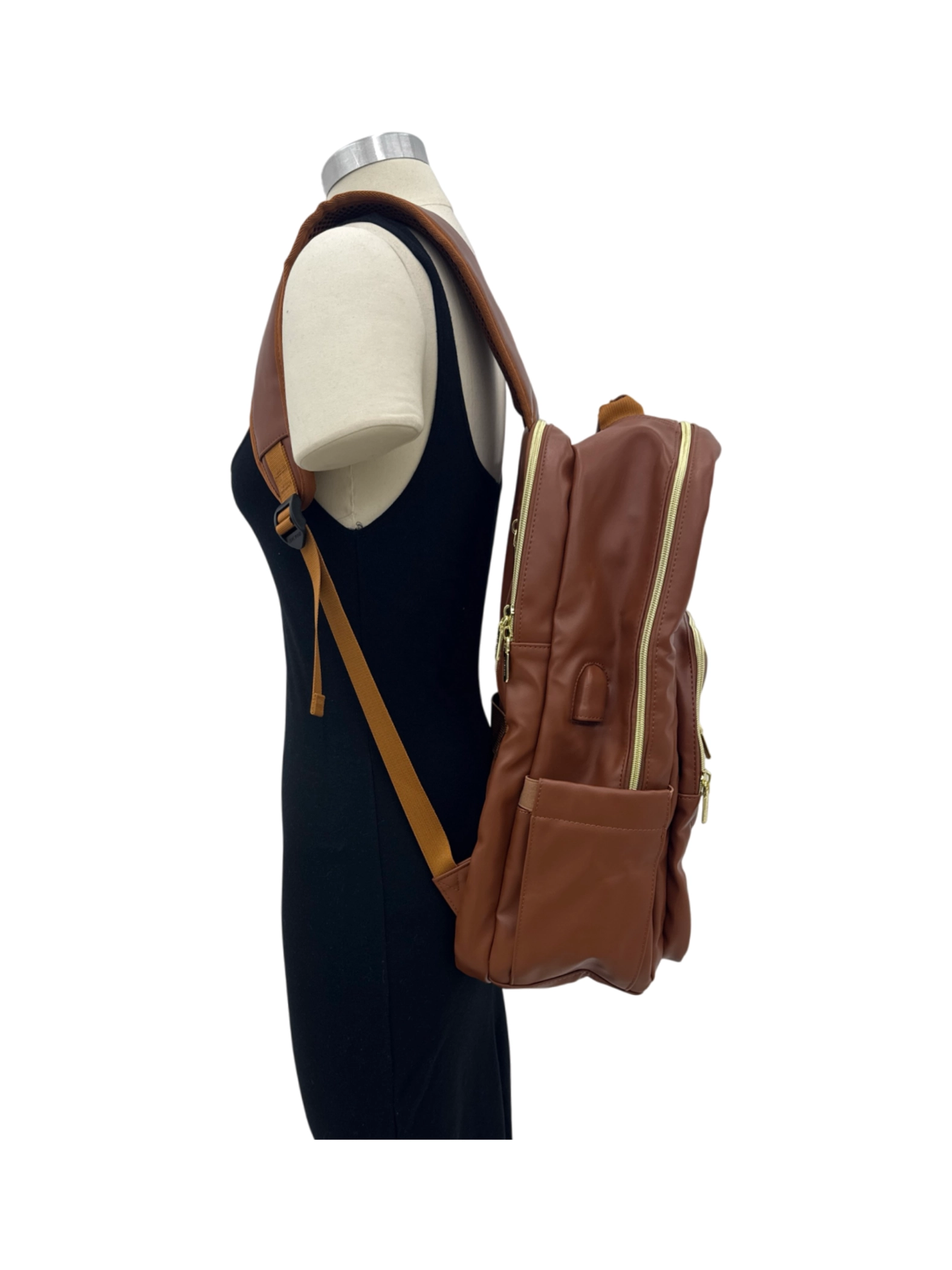 This pre-owned Lovevook backpack is the perfect blend of style and functionality. Crafted from quality faux leather in a rich brown hue, it features a chic chevron design on the front pocket and gold-tone zippers for added elegance. With multiple compartments, it offers ample space for your essentials, making it ideal for daily use or travel. The adjustable straps ensure a comfortable fit. This backpack is a great sustainable choice for any fashion enthusiast.