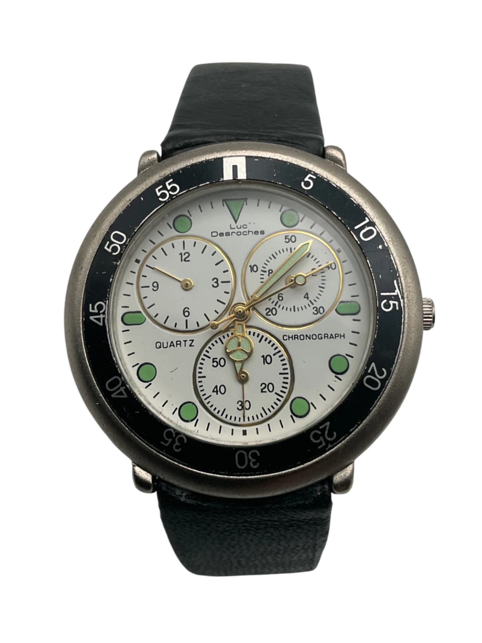 The men's Luc Desroches chronograph watch is made from genuine leather.