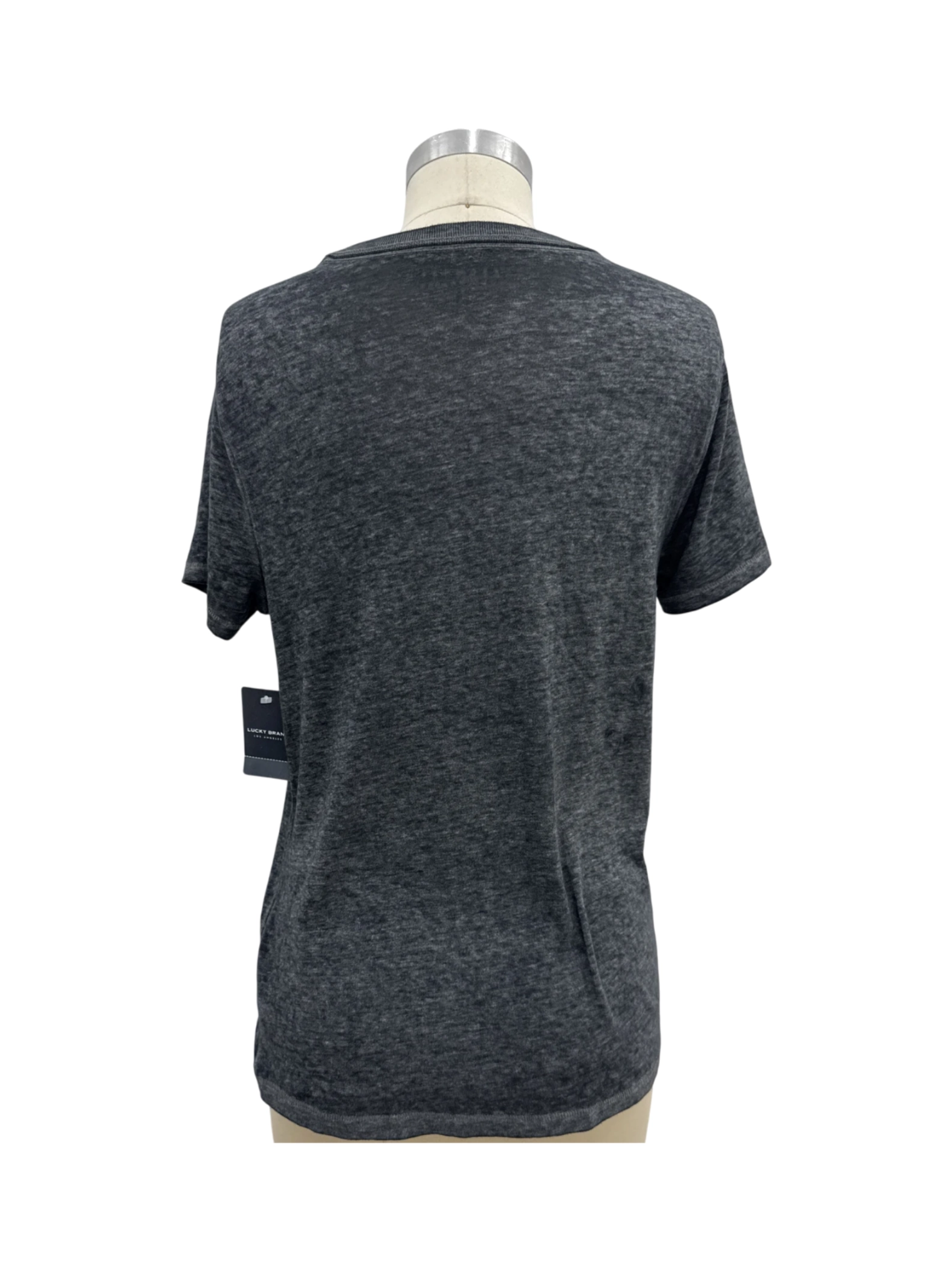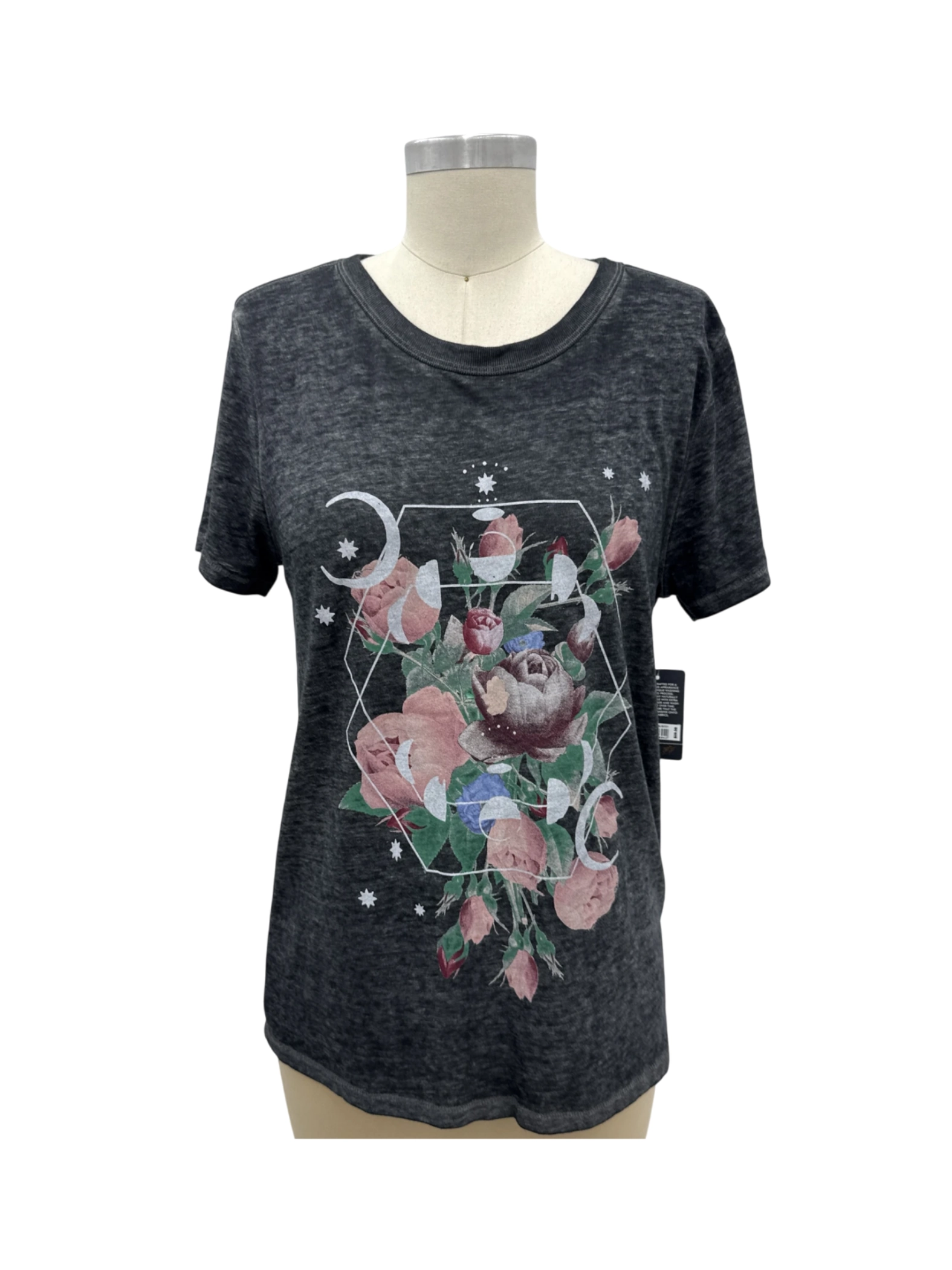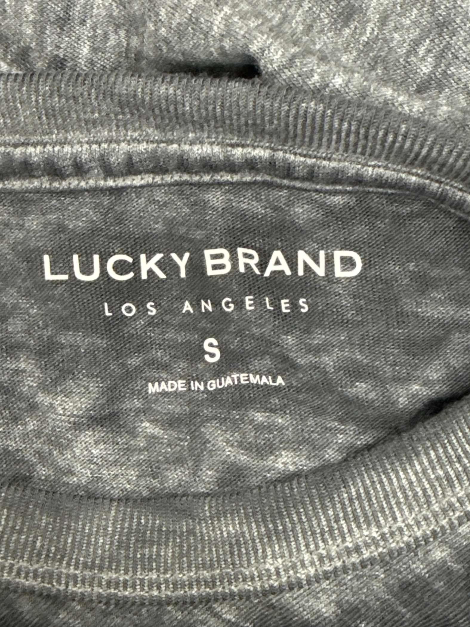 This Lucky Brand t-shirt is a stylish pre-owned find. Featuring a unique floral design on a gray background, it's perfect for casual wear. Made from a blend of polyester and cotton, this tee offers both comfort and durability. This shirt is ideal for warmer seasons, and can be easily styled with jeans or skirts for a chic, everyday look. Embrace vintage charm with this beautifully designed top.