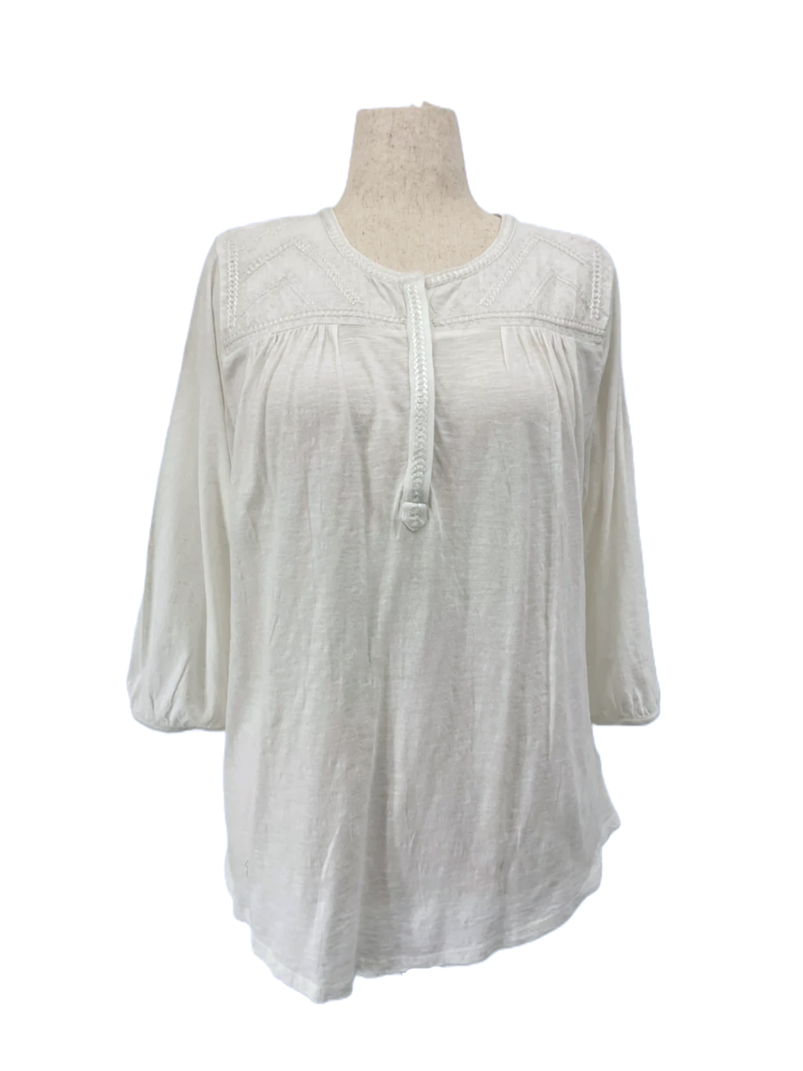 A white blouse for women with 3/4 sleeves in size 1X.