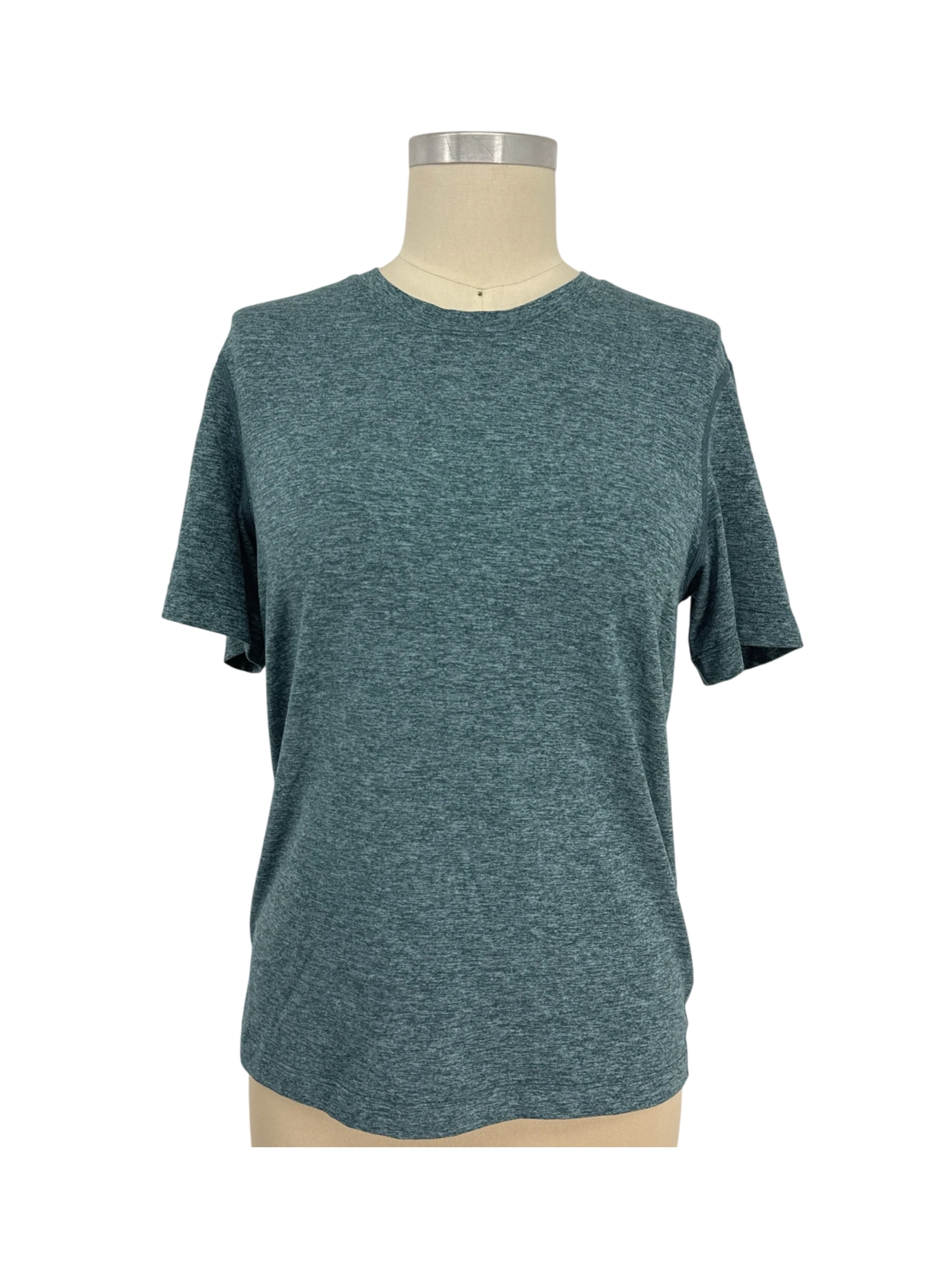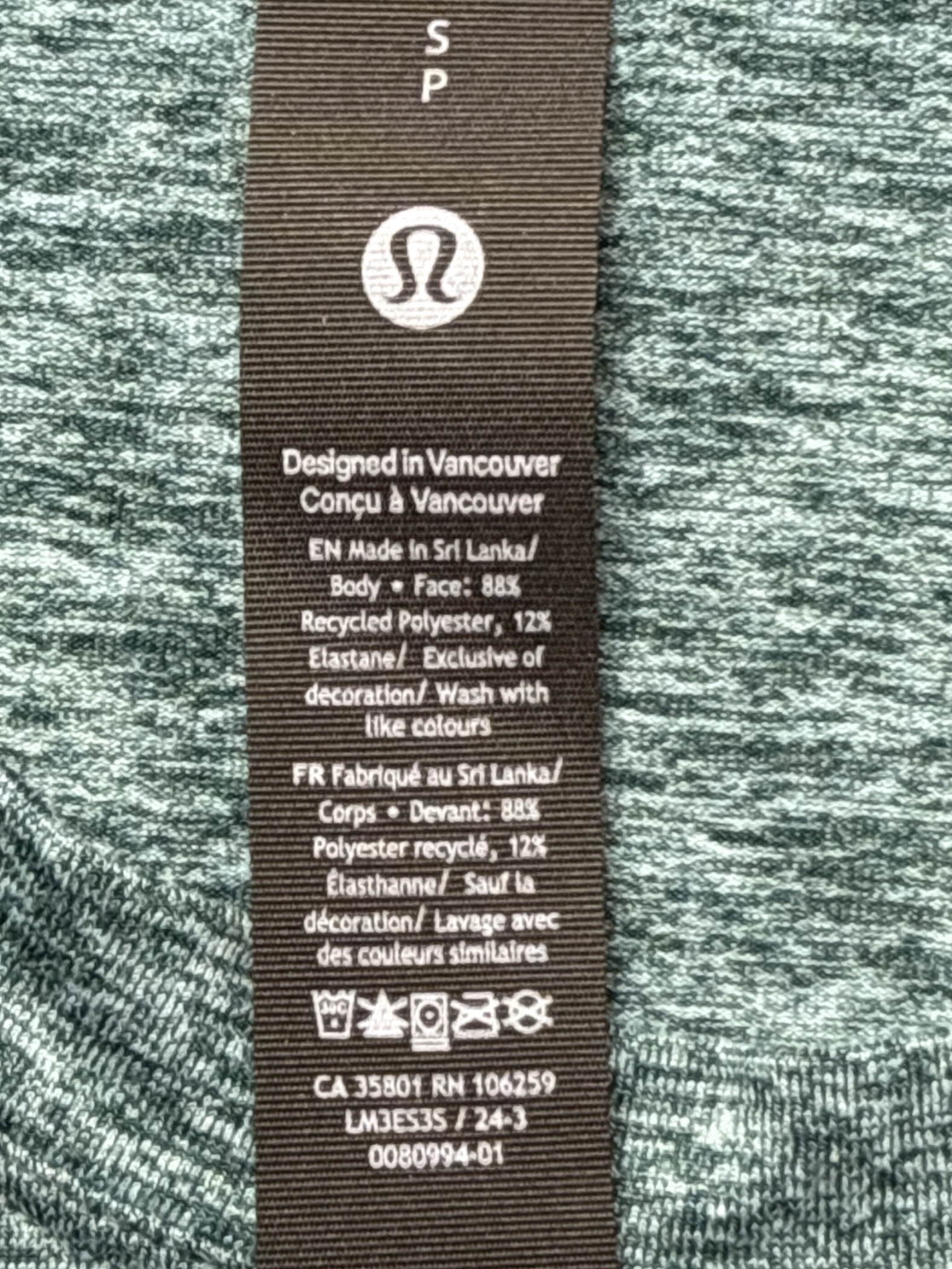 Elevate your activewear collection with this pre-owned Lululemon T-shirt. Crafted from a blend of recycled polyester and elastane, this tee offers both comfort and performance. The sleek design and versatile green color make it perfect for workouts or casual wear. Experience the quality and style of Lululemon without the new price tag. A sustainable and stylish choice for any active woman's wardrobe.