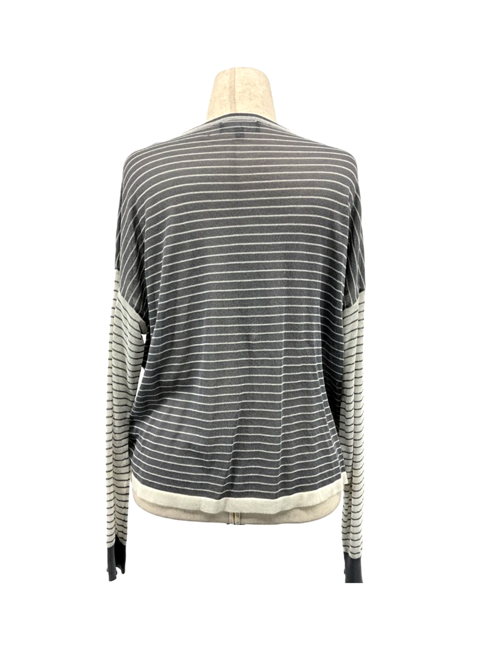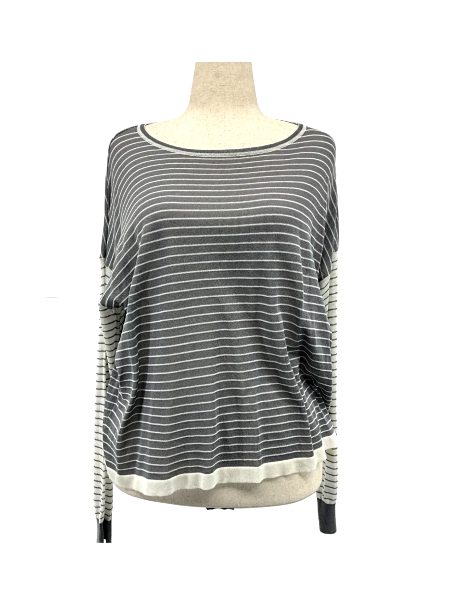 This pre-owned Lulus sweater is a stylish addition to any wardrobe. Featuring a classic striped pattern in gray and white, it offers a versatile look suitable for various occasions. Crafted from a blend of viscose and polyester, this sweater provides both comfort and durability. The round neck and long sleeves offer a flattering silhouette. Perfect for layering during cooler seasons or wearing on its own, this sweater is a must-have for those seeking a blend of style and practicality.