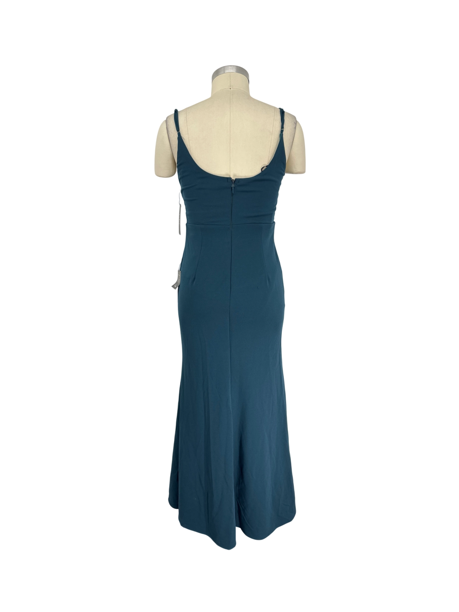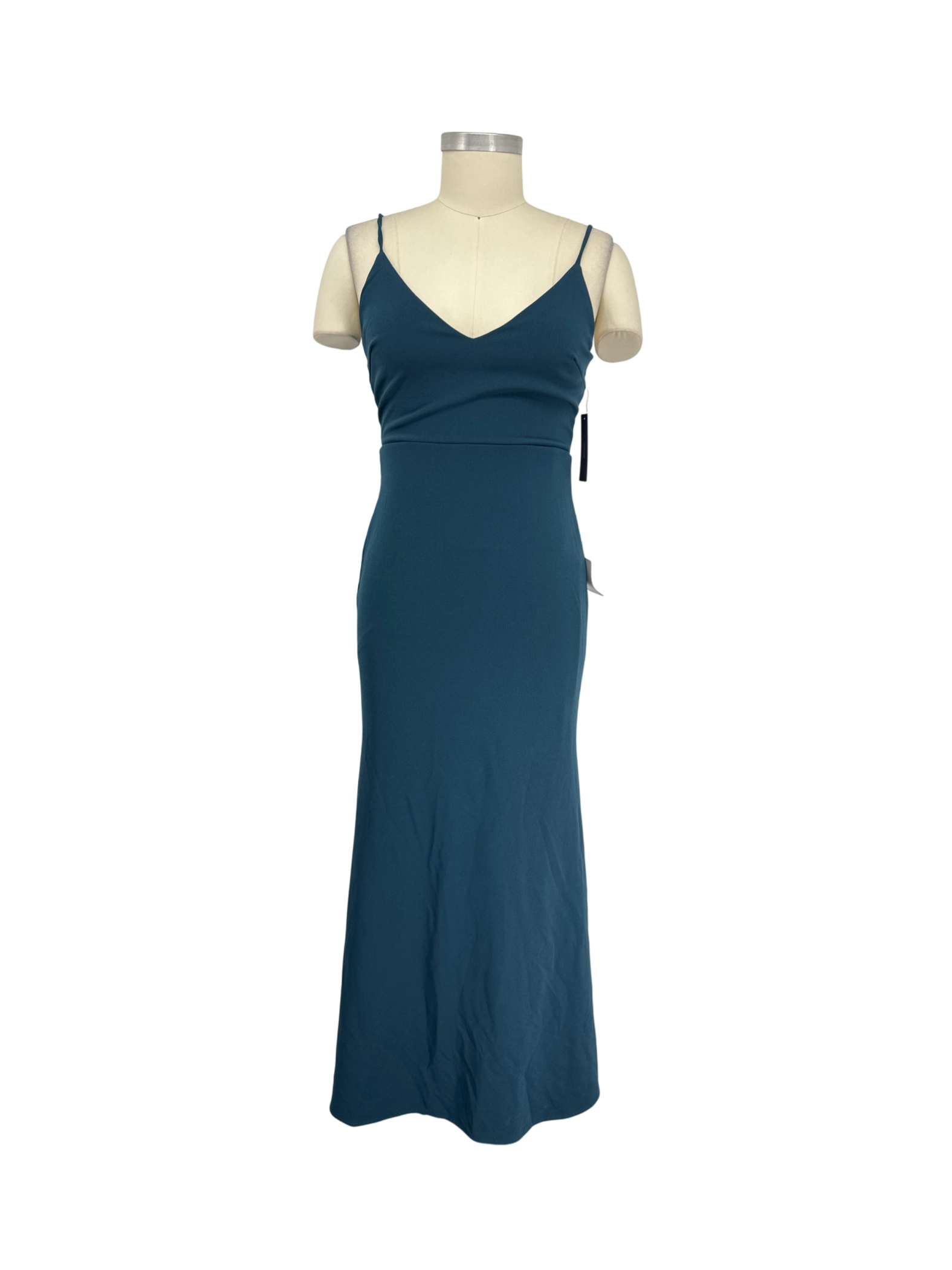 Elegant and sophisticated Lulus maxi dress, perfect for a special occasion or a night out. This stunning dress features a flattering V-neckline and a sleek silhouette that skims your figure. The dress is crafted from a comfortable blend of polyester and spandex, with a gorgeous teal color. The maxi length adds a touch of glamour, and the sleeveless design is ideal for warm weather. This gently used dress is a must-have addition to any fashion-forward wardrobe.