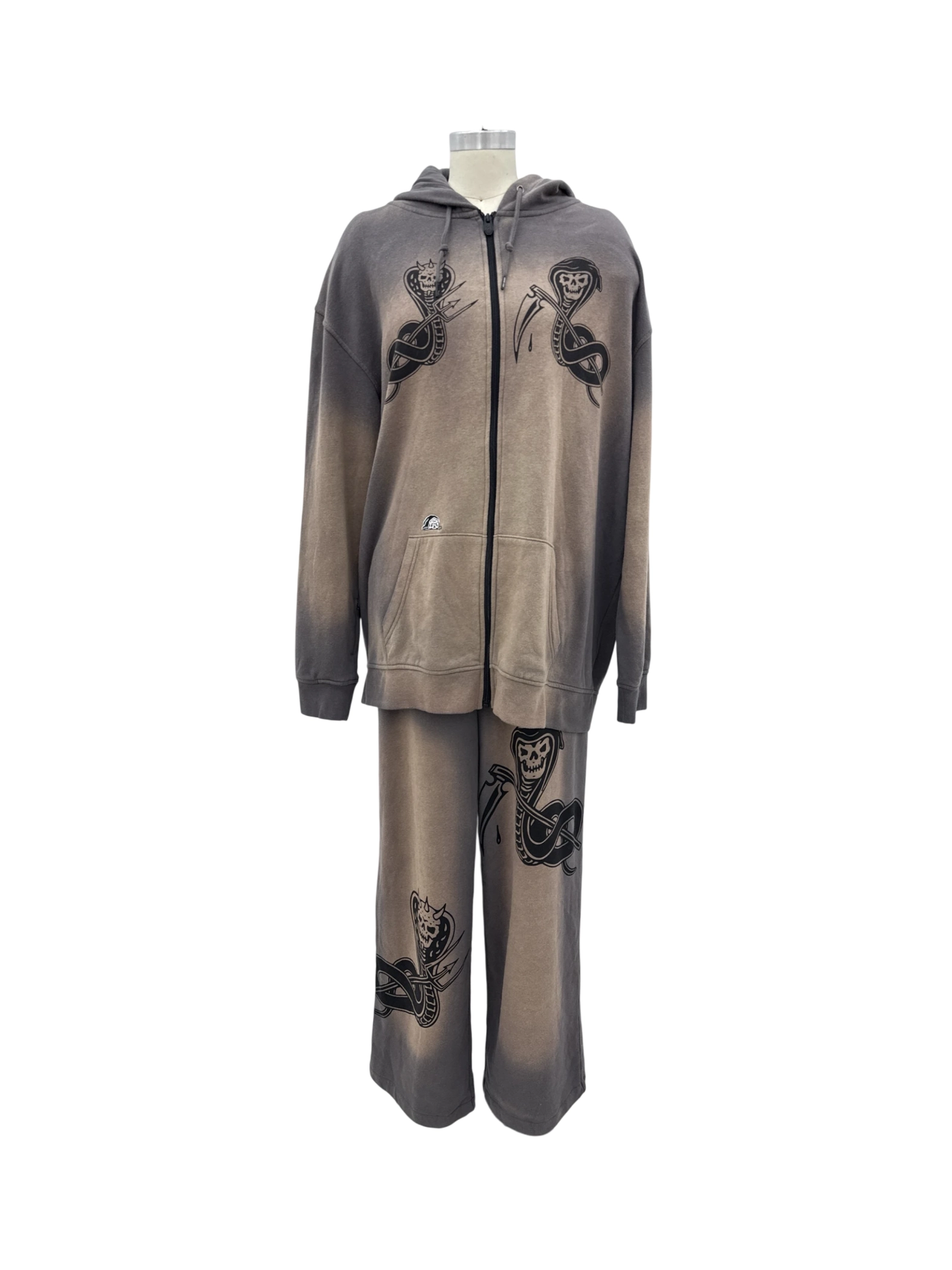 Embrace the edgy aesthetic with this pre-owned Lurking Class women's set. This set features a hooded sweatshirt and matching pants, both showcasing unique graphics. The soft cotton blend ensures comfort while the design makes a statement. Perfect for those who appreciate streetwear and bold style. Ideal for casual outings, this set is a standout addition to any wardrobe. Get this trendy set at a great price.