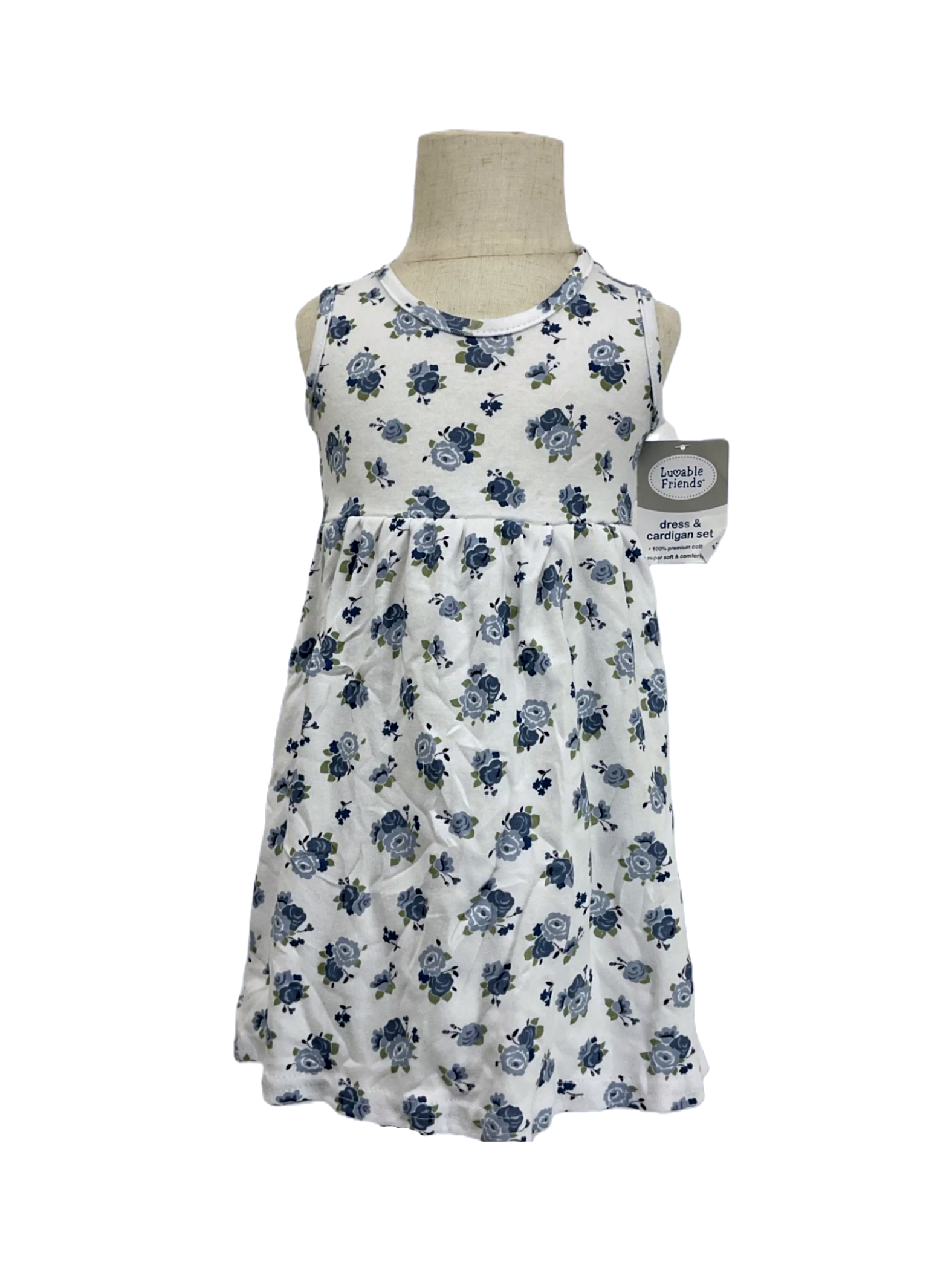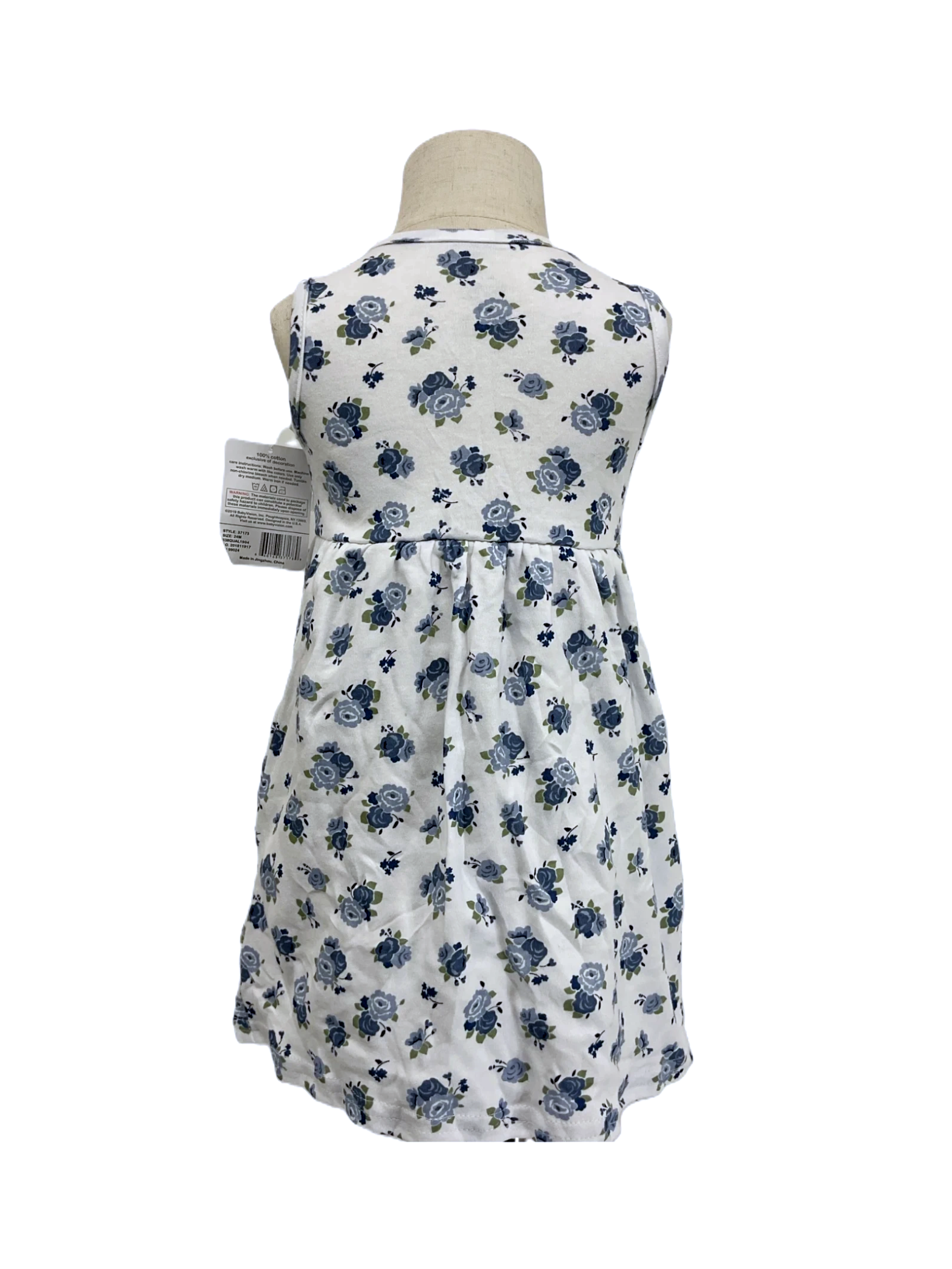 A sleeveless dress in blue, green, and white floral pattern for girls, size 24 months.