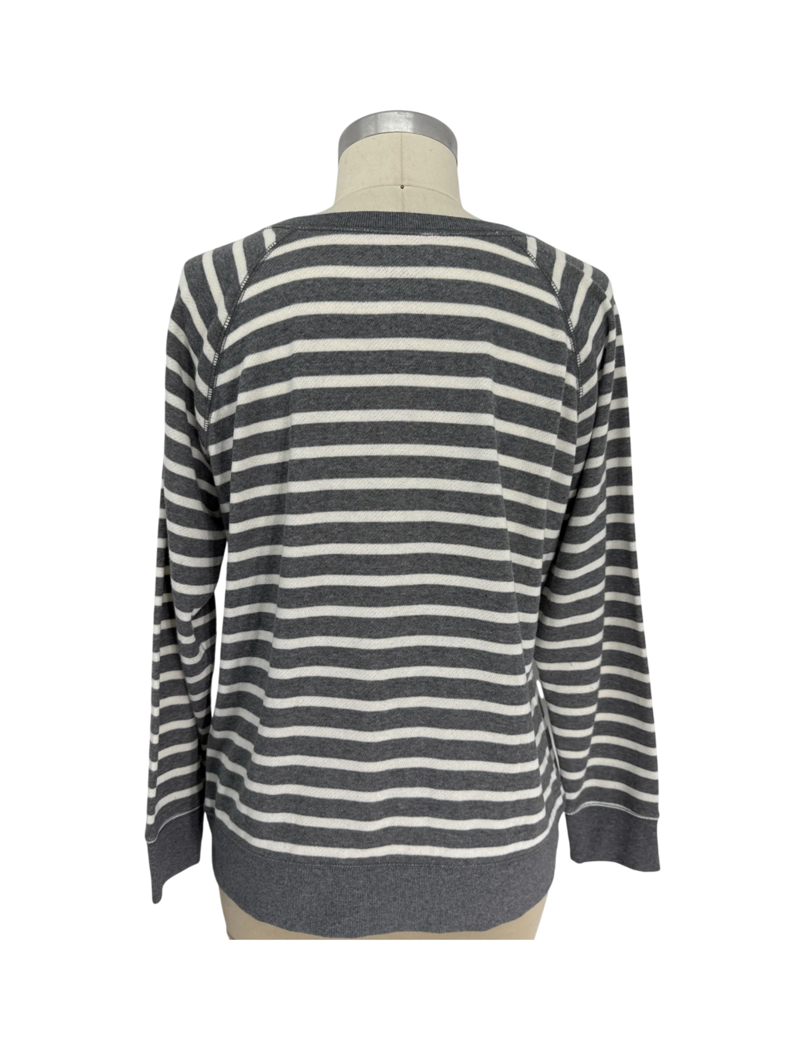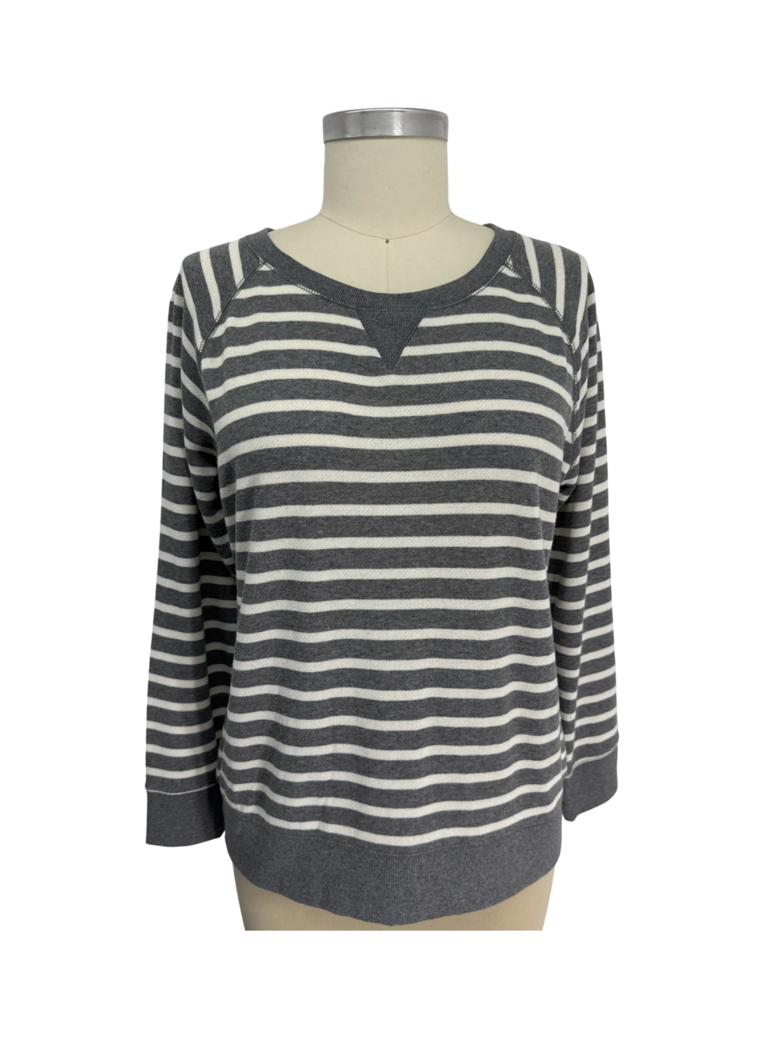 This pre-owned Made of Life sweater is a cozy and stylish addition to any wardrobe. Featuring a classic striped pattern in gray and white, it offers a versatile look suitable for various occasions. The sweater is made from a comfortable cotton blend, perfect for cooler weather. With a round neckline and a comfortable fit, it's an easy-to-wear piece that can be dressed up or down. Ideal for layering, this sweater combines style and comfort seamlessly.