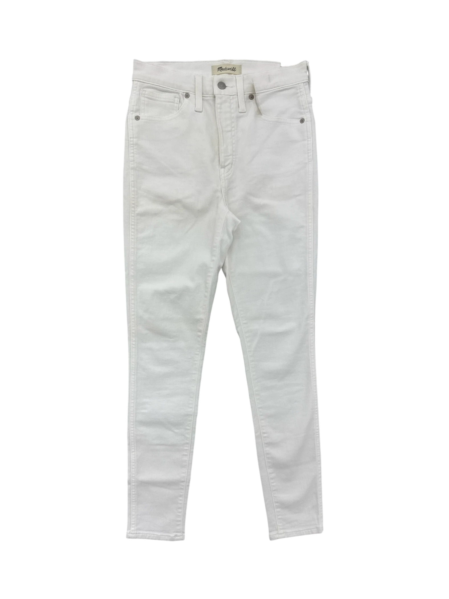 These Madewell high-rise skinny jeans in a crisp white are a wardrobe essential. Crafted from a comfortable cotton blend with a touch of stretch, they offer a flattering fit. The 10" high-rise waist and skinny leg silhouette creates a sleek and stylish look. These pre-owned jeans are perfect for everyday wear, providing versatility and timeless style. Made in Guatemala