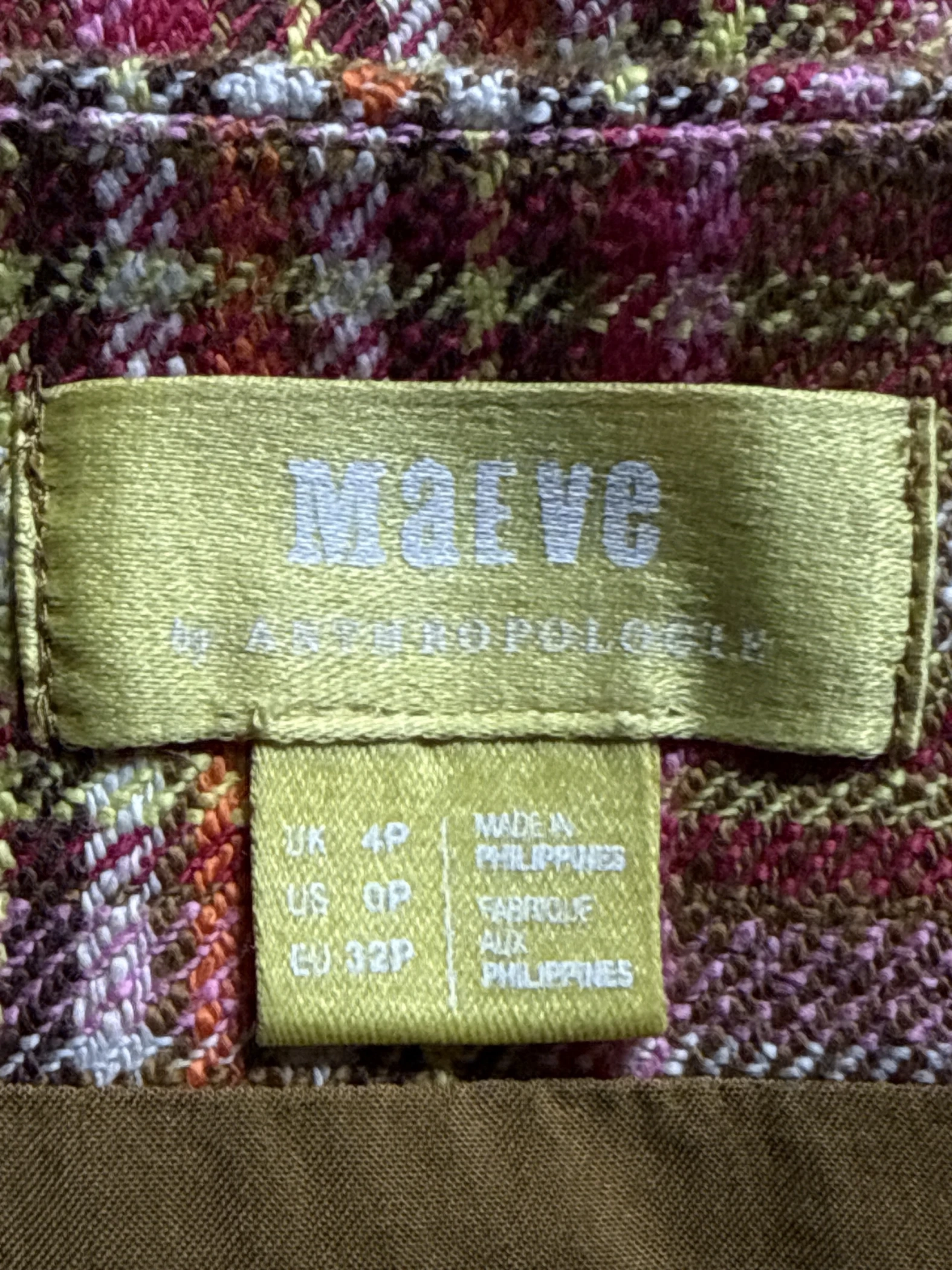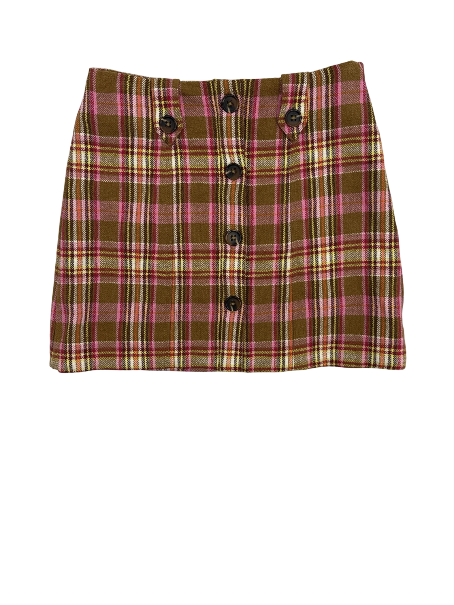 Elevate your fall wardrobe with this stylish Maeve skirt. This pre-owned A-line mini skirt features a classic plaid pattern in brown and pink hues, perfect for the season. Crafted from a soft cotton blend, it offers both comfort and style. Pair it with tights and boots for a chic everyday look or dress it up for an evening out.