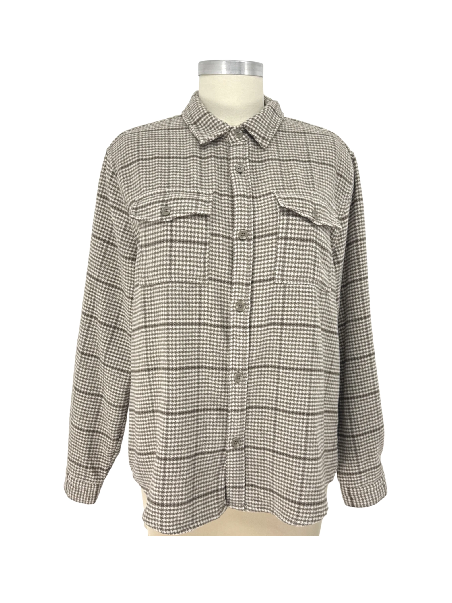 Elevate your wardrobe with this pre-owned MAGASCHONI button-up blouse. Featuring a classic checkered pattern in shades of brown, this top is perfect for cooler seasons. It has long sleeves, a collared neckline, and a comfortable fit. Made from a blend of high-quality materials, this blouse offers both style and durability. Pair it with your favorite jeans or skirt for a chic, timeless look.