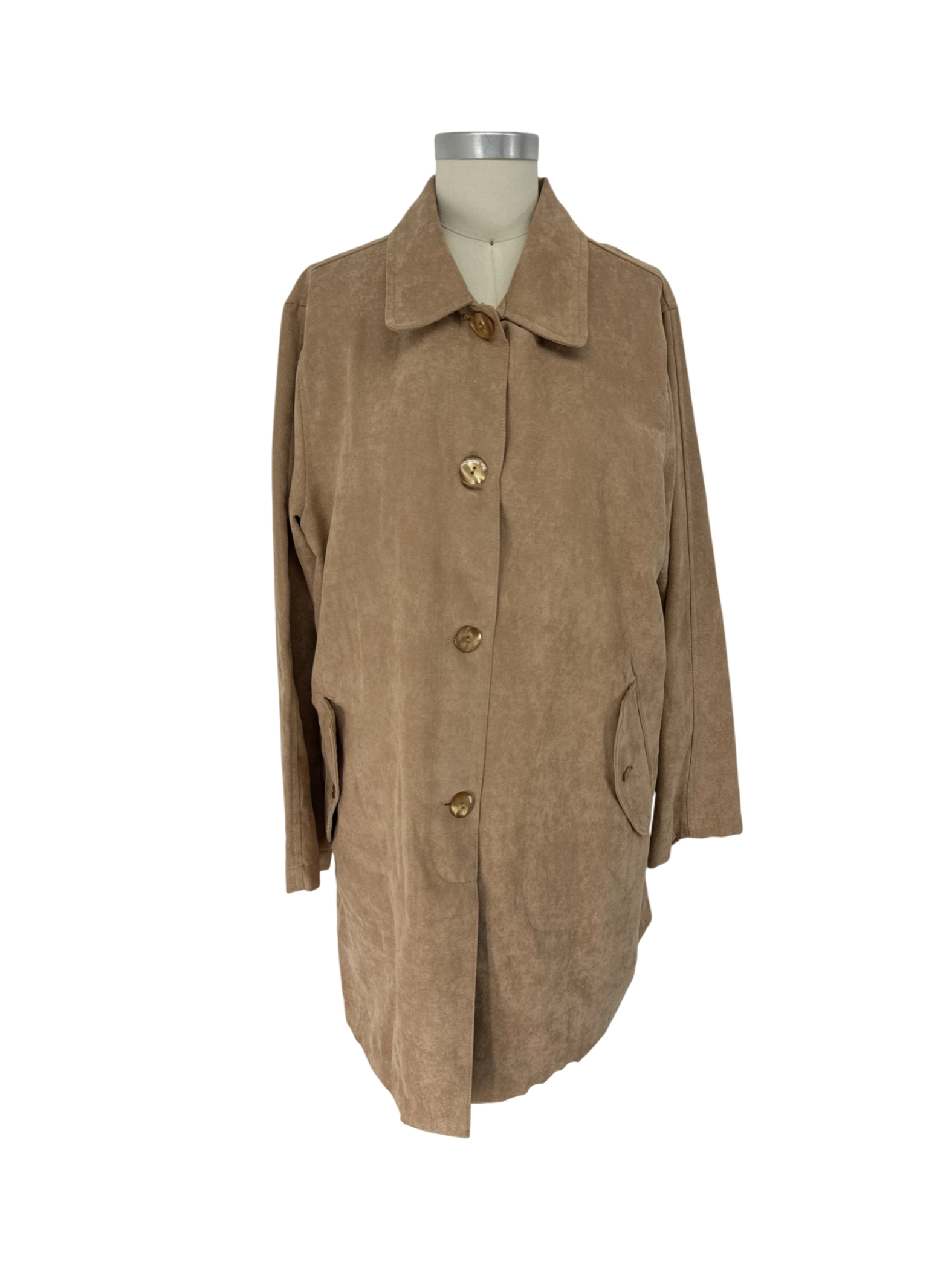 This pre-owned Maggie Sweet coat is a stylish addition to any wardrobe. This elegant coat features a classic silhouette, perfect for layering in cooler weather. Crafted from a soft fabric, this coat ensures both comfort and style. The neutral brown color makes it versatile for pairing with various outfits. The petite size offers a tailored fit, making it a great choice for those looking for a well-fitted coat. Ideal for daily wear, this coat combines timeless design with enduring quality.