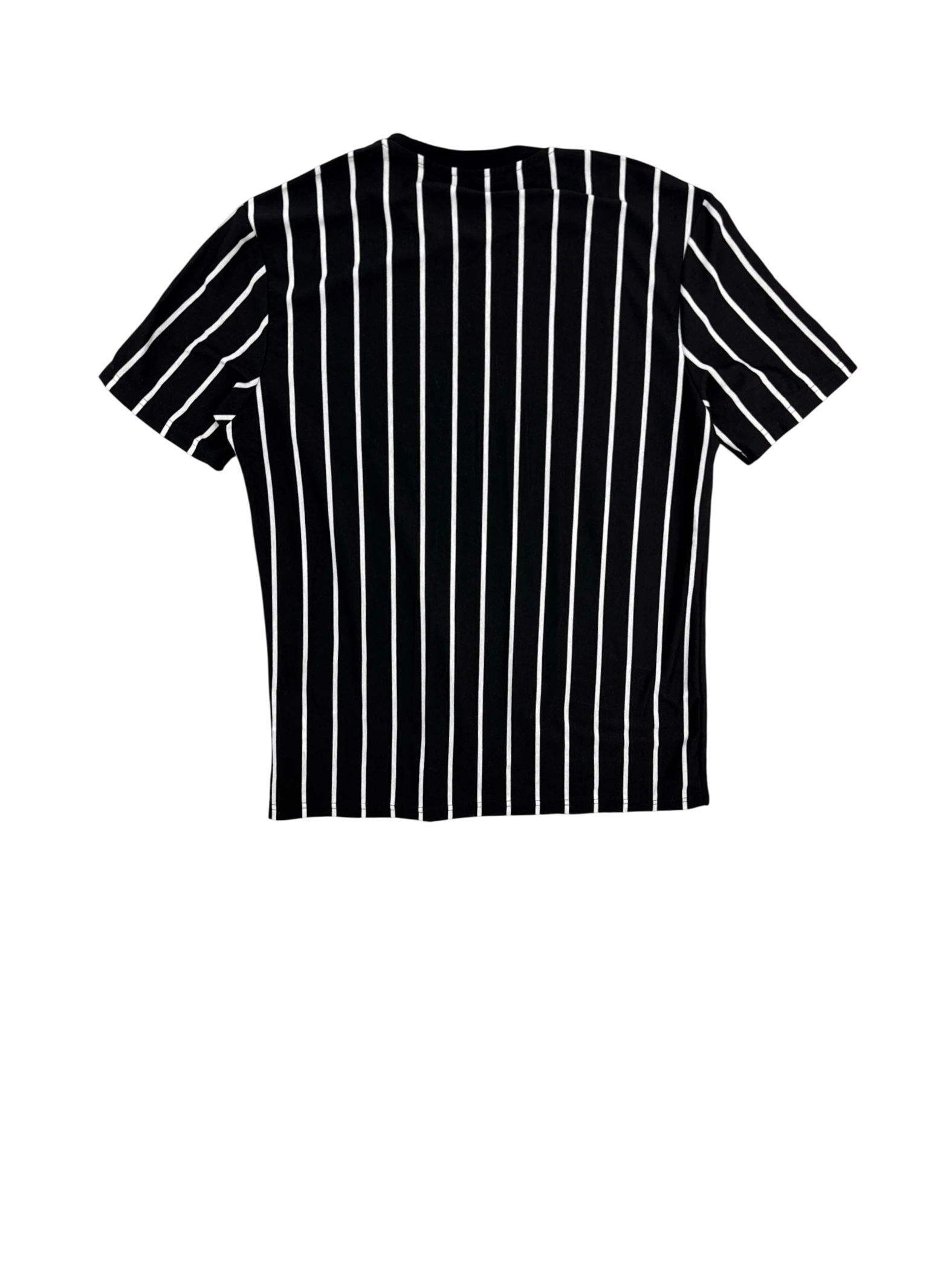 Elevate your casual wardrobe with this stylish MANFINITY men's top. This pre-owned tee features a classic black and white striped pattern, offering a versatile look perfect for any occasion. Crafted from a blend of polyester and elastane, it ensures both comfort and durability. The round neck and short sleeves provide a comfortable fit, making it an ideal choice for warmer weather. A timeless addition to your closet, it's the perfect blend of style and affordability.