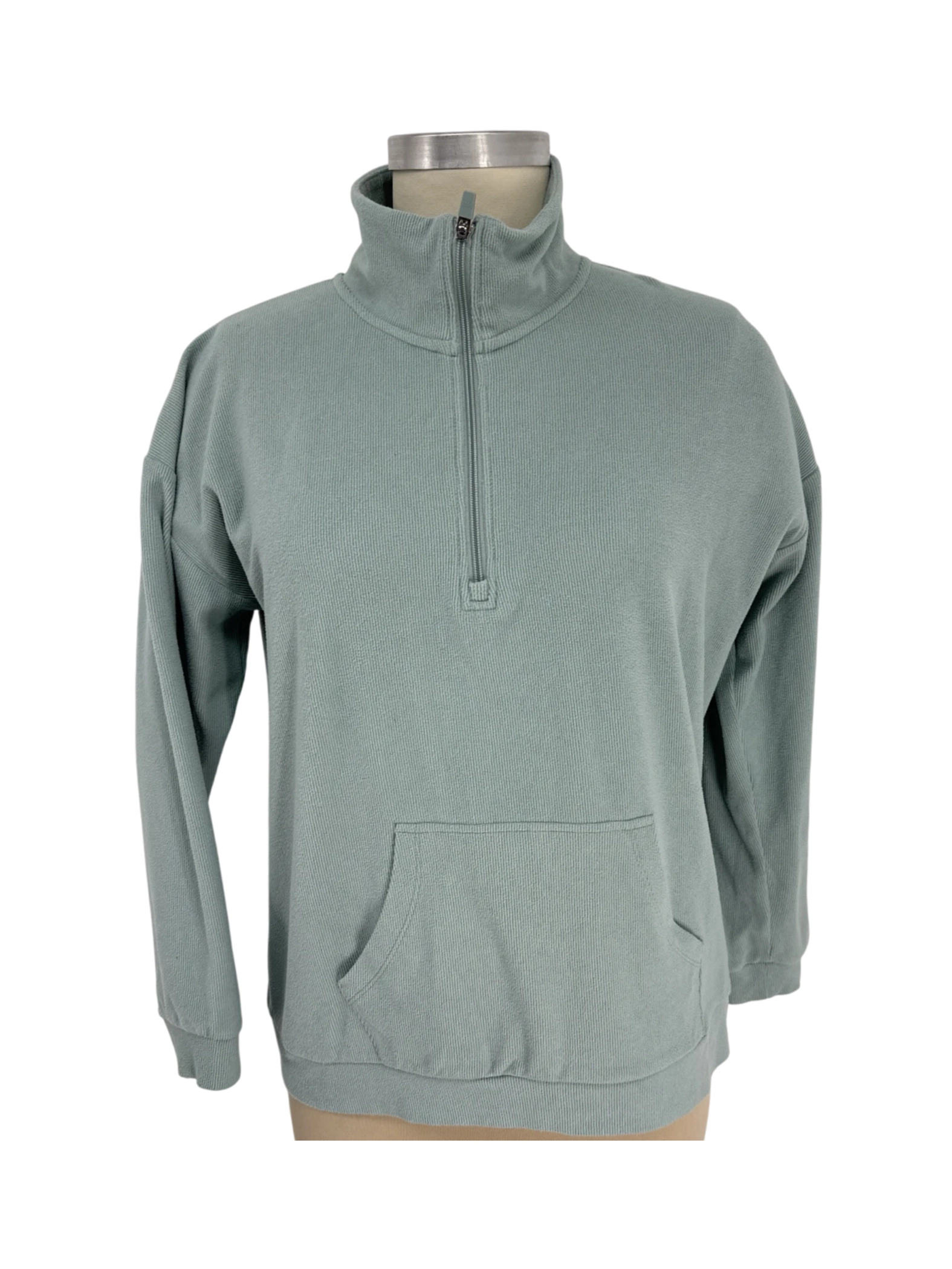 Pre-owned Marc New York teal turtleneck sweater. This stylish sweater features a comfortable turtleneck, practical front pocket, and a versatile solid color. Crafted from a blend of high-quality materials, it promises both warmth and a flattering fit. Ideal for fall and winter, this sweater provides an effortlessly chic look. Pair it with jeans or skirts for a stylish, everyday outfit.