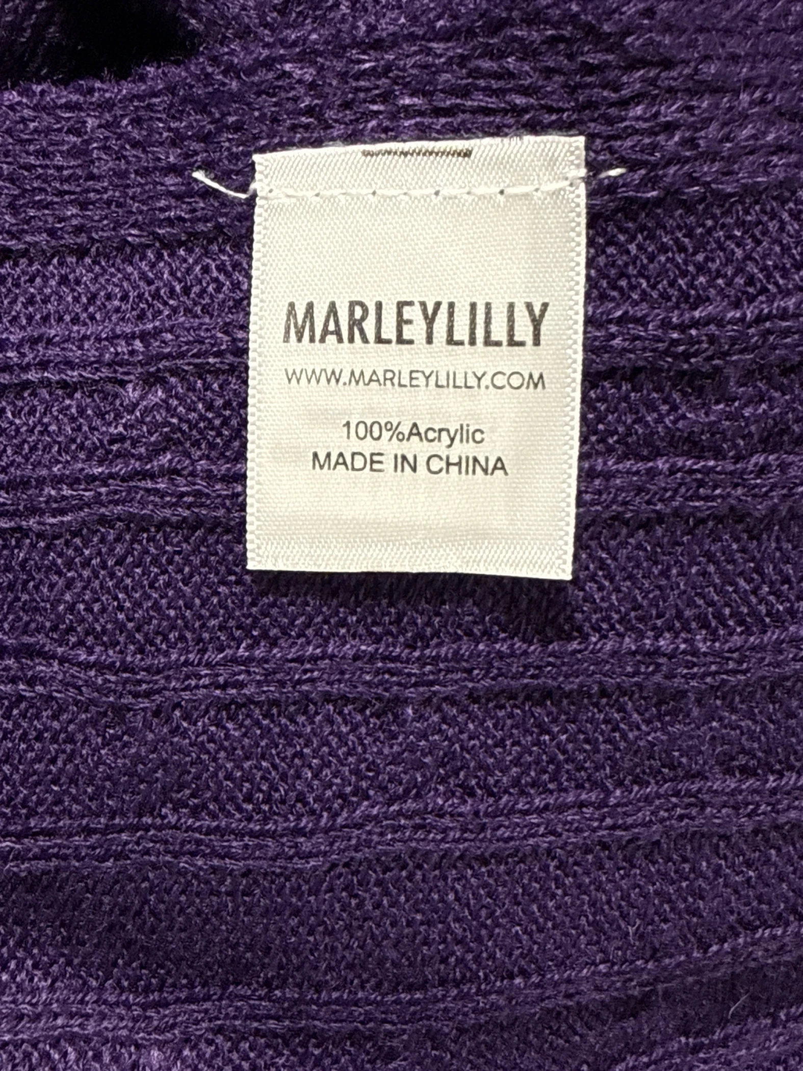 This pre-owned Marley Lilly tunic top is a stylish and cozy addition to any wardrobe. The one-shoulder design in a vibrant purple hue and cable knit detail exudes chic comfort. Crafted from 100% acrylic, this top promises warmth and easy care. Perfect for layering during the cooler months or as a statement piece on a spring or fall evening. The top is ideal for a unique look, making it a versatile option for your closet.