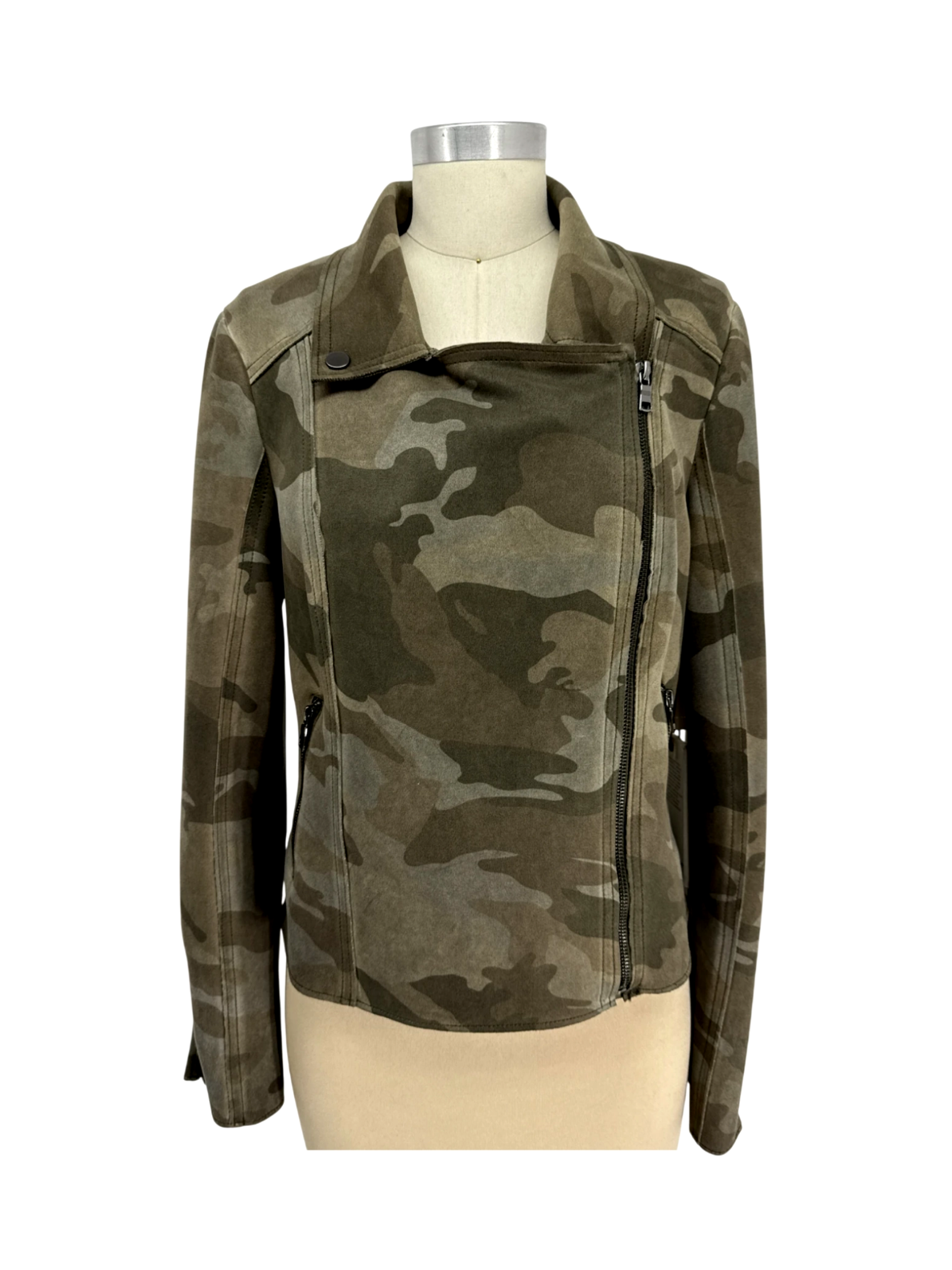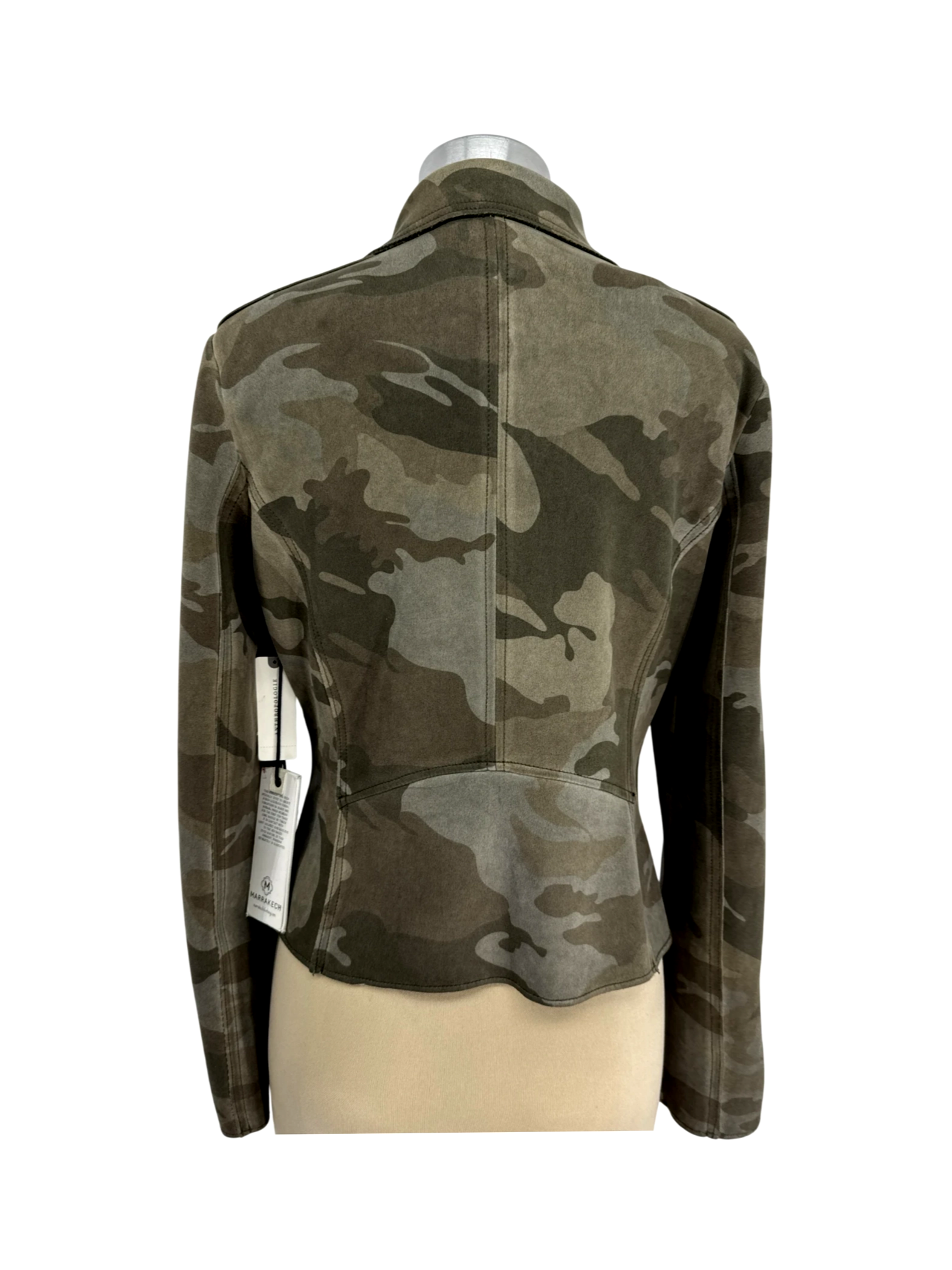 Elevate your outerwear collection with this stylish pre-owned MARRAKECH camouflage motorcycle jacket. Featuring a sleek design with a zip closure and multiple pockets, this jacket combines fashion and functionality. It's perfect for adding a touch of edgy flair to any outfit. Made with a comfortable blend of polyester and spandex, this jacket is ideal for cooler seasons, offering both warmth and a flattering fit. A must-have addition to any wardrobe!