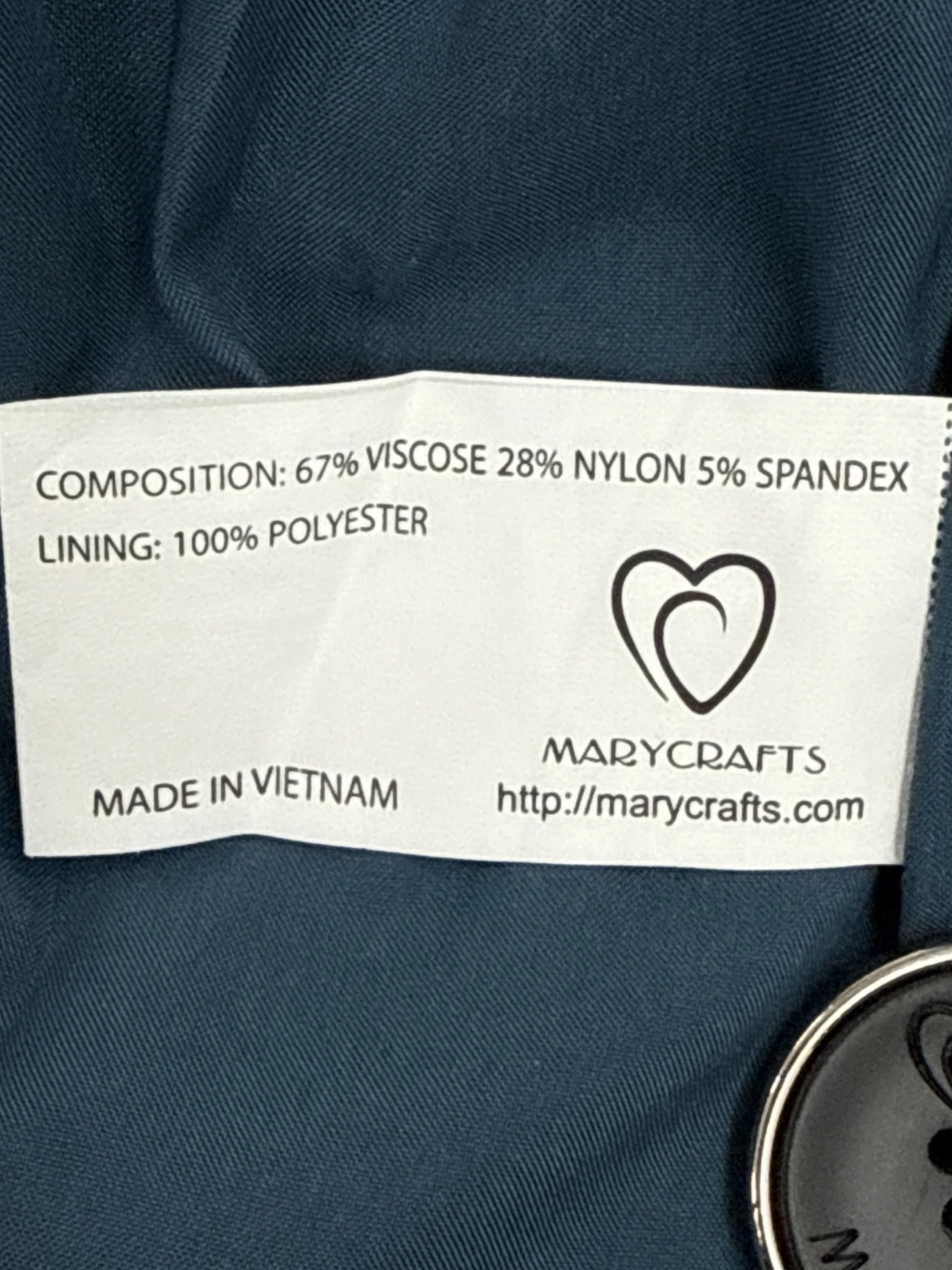 Elevate your wardrobe with this stylish MARY CRAFTS blazer. This women's jacket features a classic design with a modern touch, perfect for layering during the fall or spring seasons. Crafted from a blend of viscose, nylon, spandex and polyester, this pre-owned blazer offers both comfort and durability. This versatile piece can be dressed up or down, making it an essential addition to any fashion-forward closet. Great condition, ready to wear.