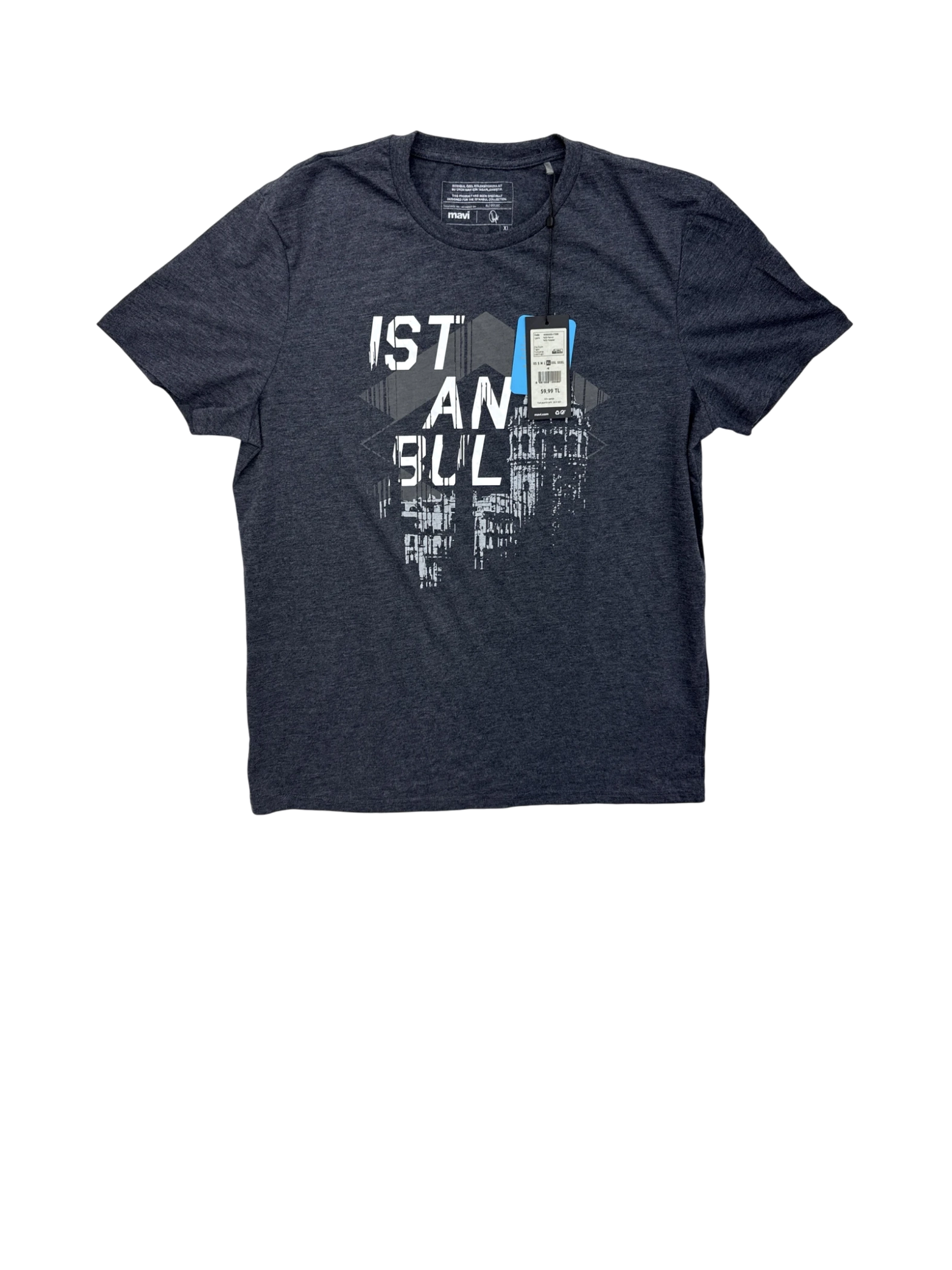 This pre-owned Mavi t-shirt is perfect for adding a touch of casual style to your wardrobe. The shirt features a classic crew neck and short sleeves, offering a comfortable fit. Crafted from a blend of cotton and polyester, it ensures breathability and durability. The stylish grey design with an Istanbul graphic makes it a versatile piece. Ideal for everyday wear, this tee is a great addition to any man's closet.