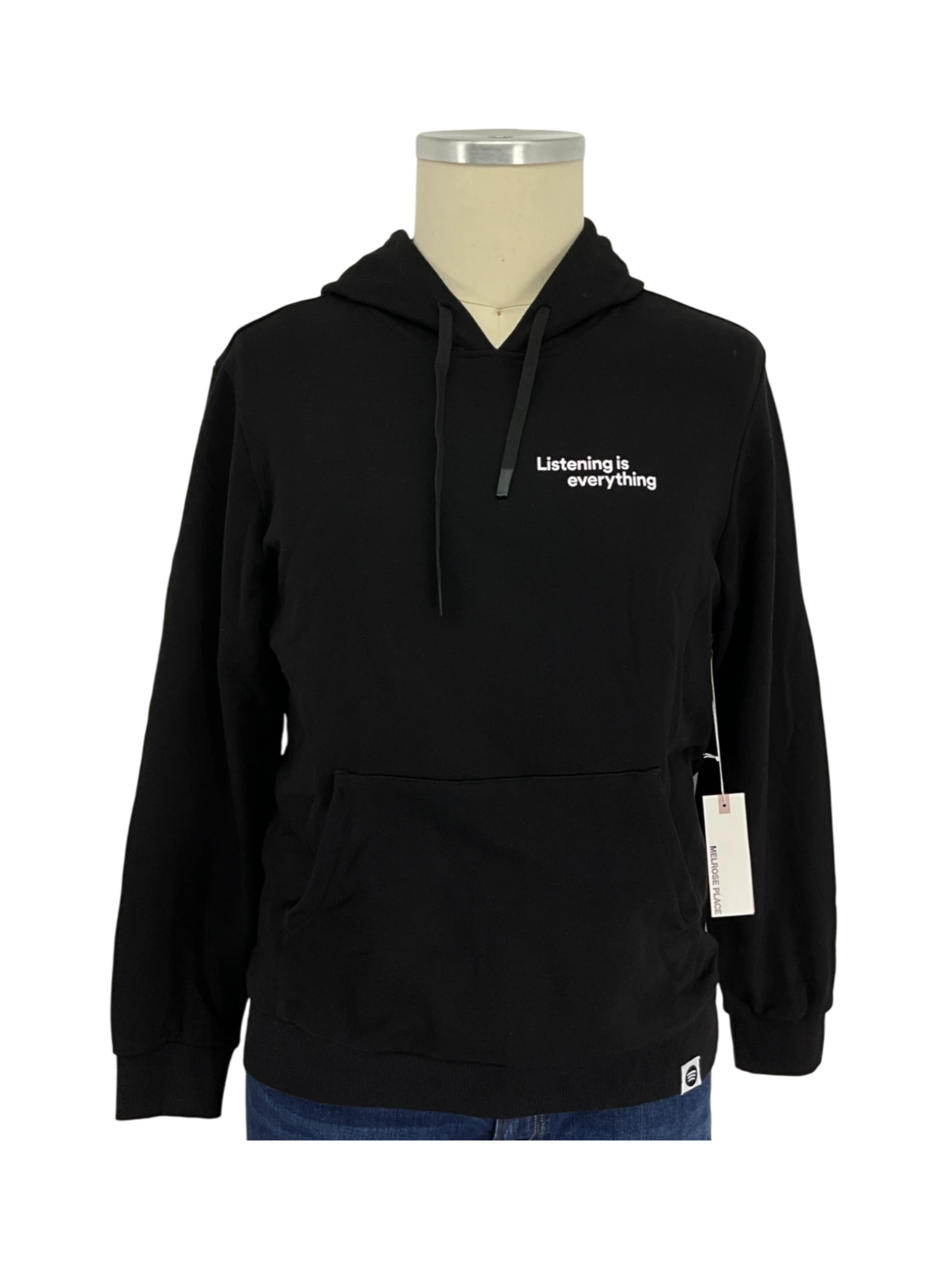 Melrose Place black pullover with front pocket and hood in size XL.