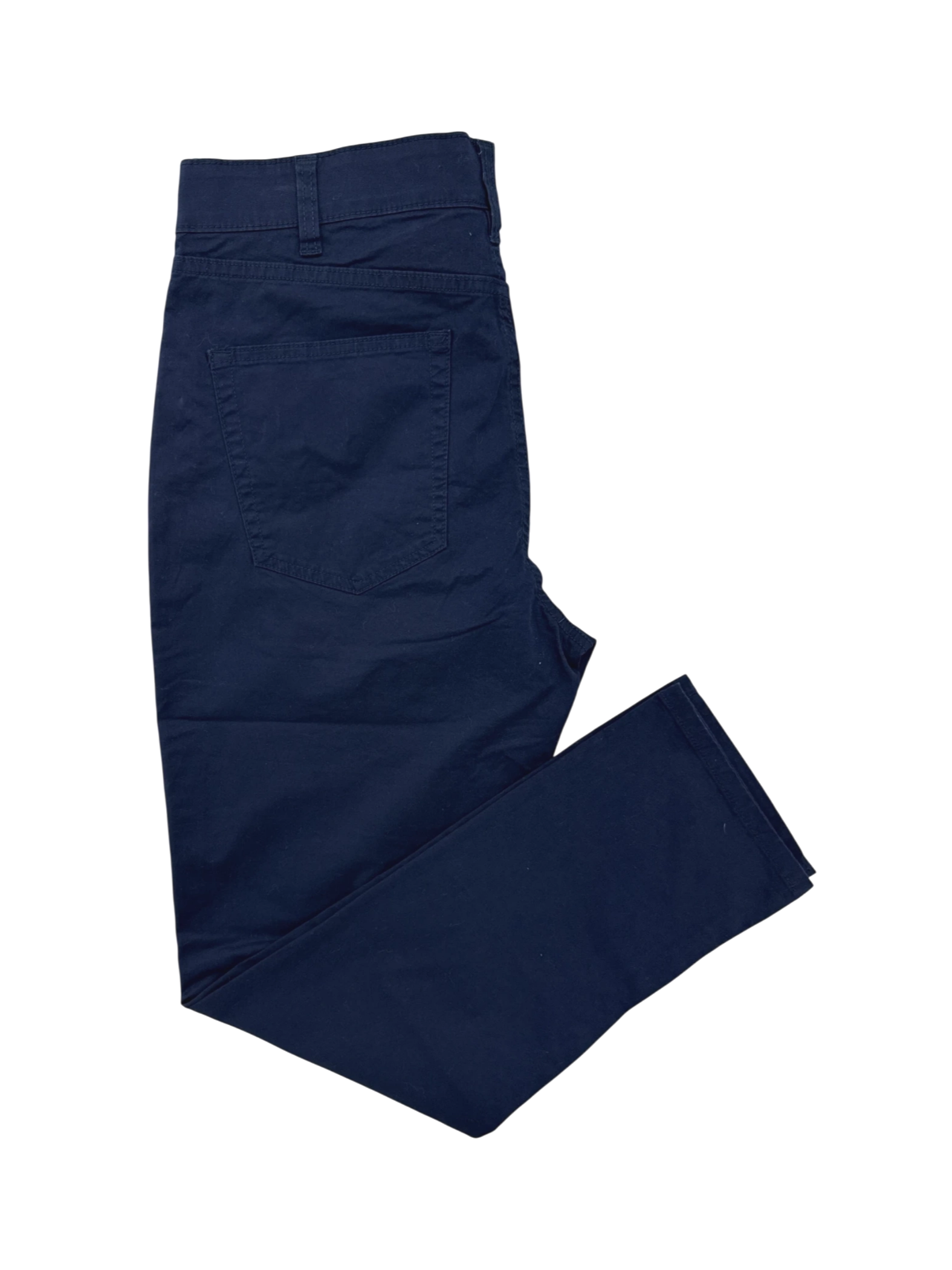 These pre-owned Member's Mark Mason Straight Fit 5-Pocket Pants in a classic navy blue offer both style and comfort. Made from a durable cotton blend with a touch of spandex for stretch, they are perfect for everyday wear. The straight-leg cut and timeless design make these pants a versatile addition to any man's wardrobe. Excellent condition and a great value.
