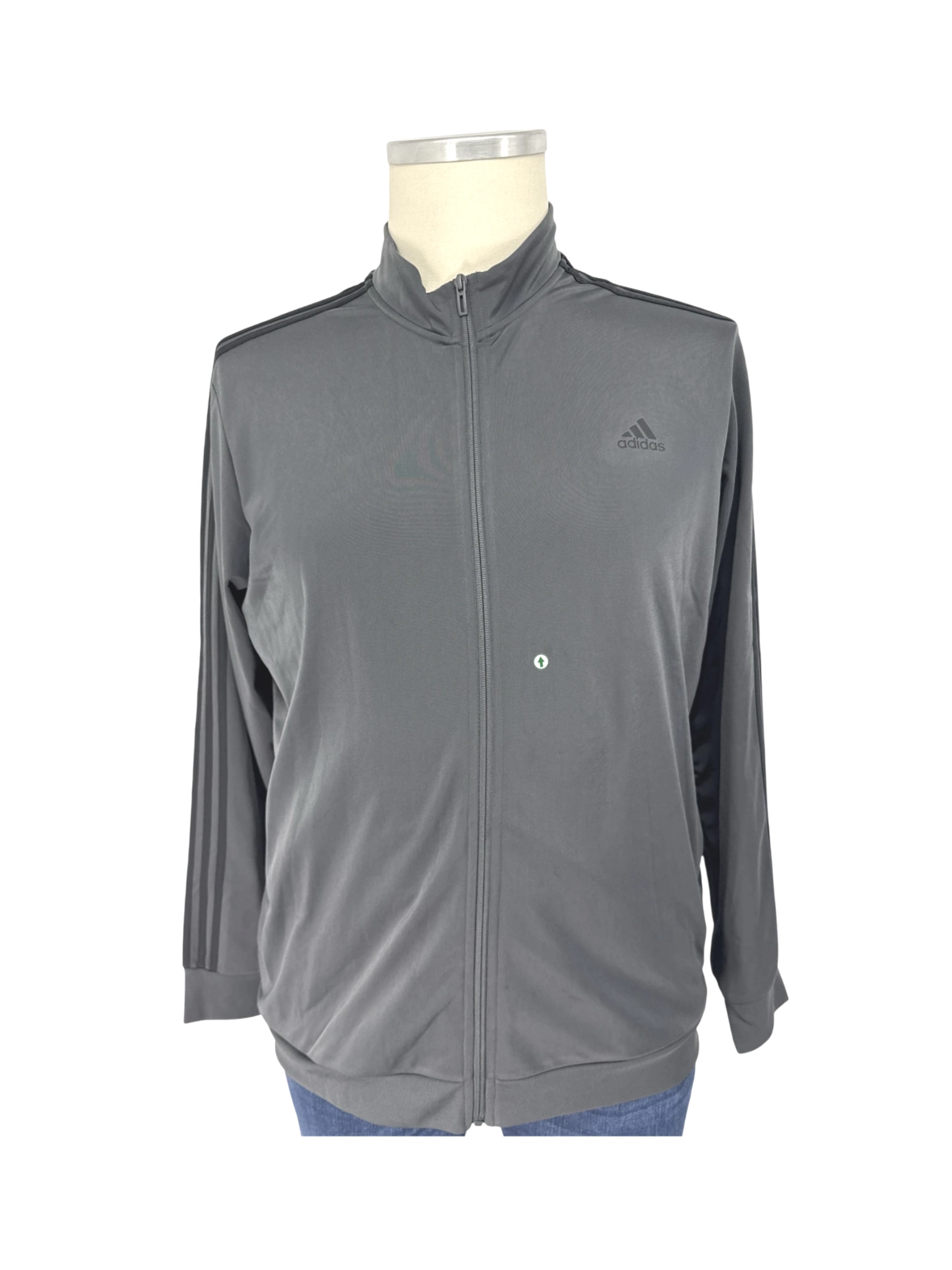 Must have - Elevate your casual wardrobe with this pre-owned Adidas jacket. Crafted from a comfortable polyester blend, this jacket features a classic design with the iconic Adidas stripes. The full-zip closure and stand-up collar offer versatility, while the gray color makes it easy to pair with any outfit. Perfect for workouts, everyday wear, or layering during the colder months, this jacket is a stylish and functional addition to any closet.