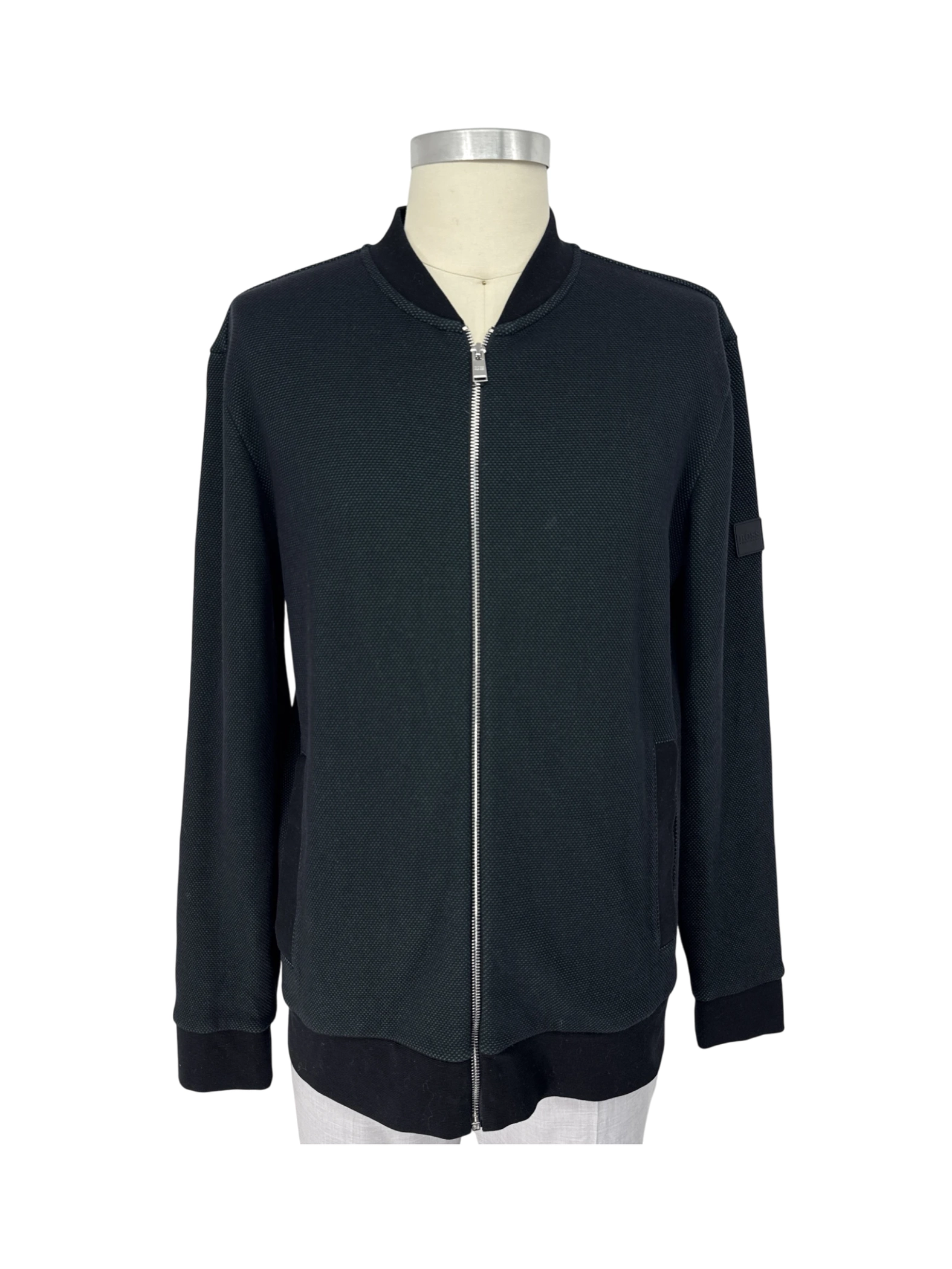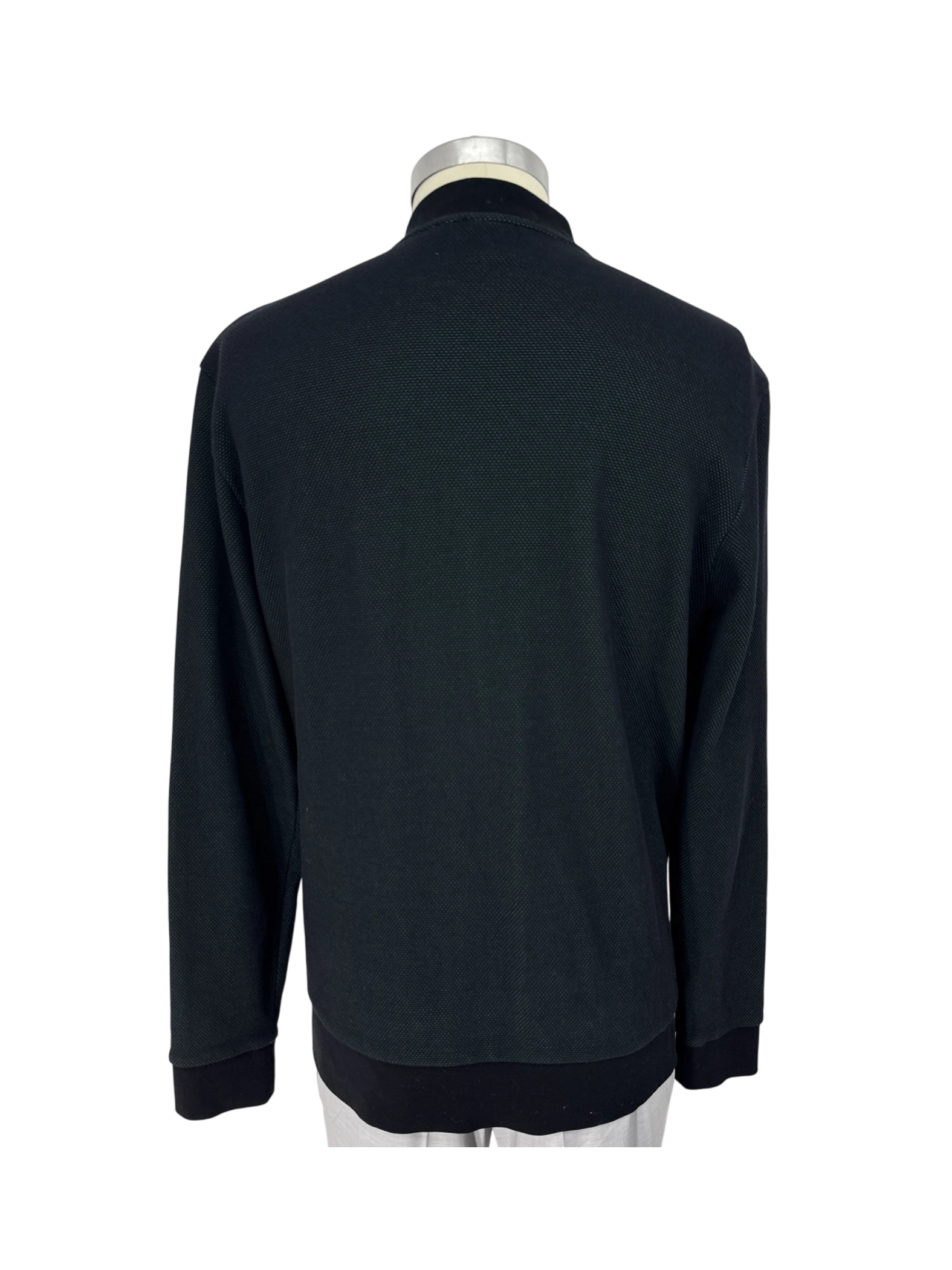 Elevate your wardrobe with this stylish BOSS Hugo Boss men's zip-up sweater. This pre-owned sweater features a classic design with a round neck and long sleeves. Crafted from a comfortable material and is perfect for layering. The versatile black color makes it easy to pair with any outfit. In excellent condition, this sweater offers both style and value. A must-have for any man's closet, suitable for various occasions, from casual outings to weekend getaways.