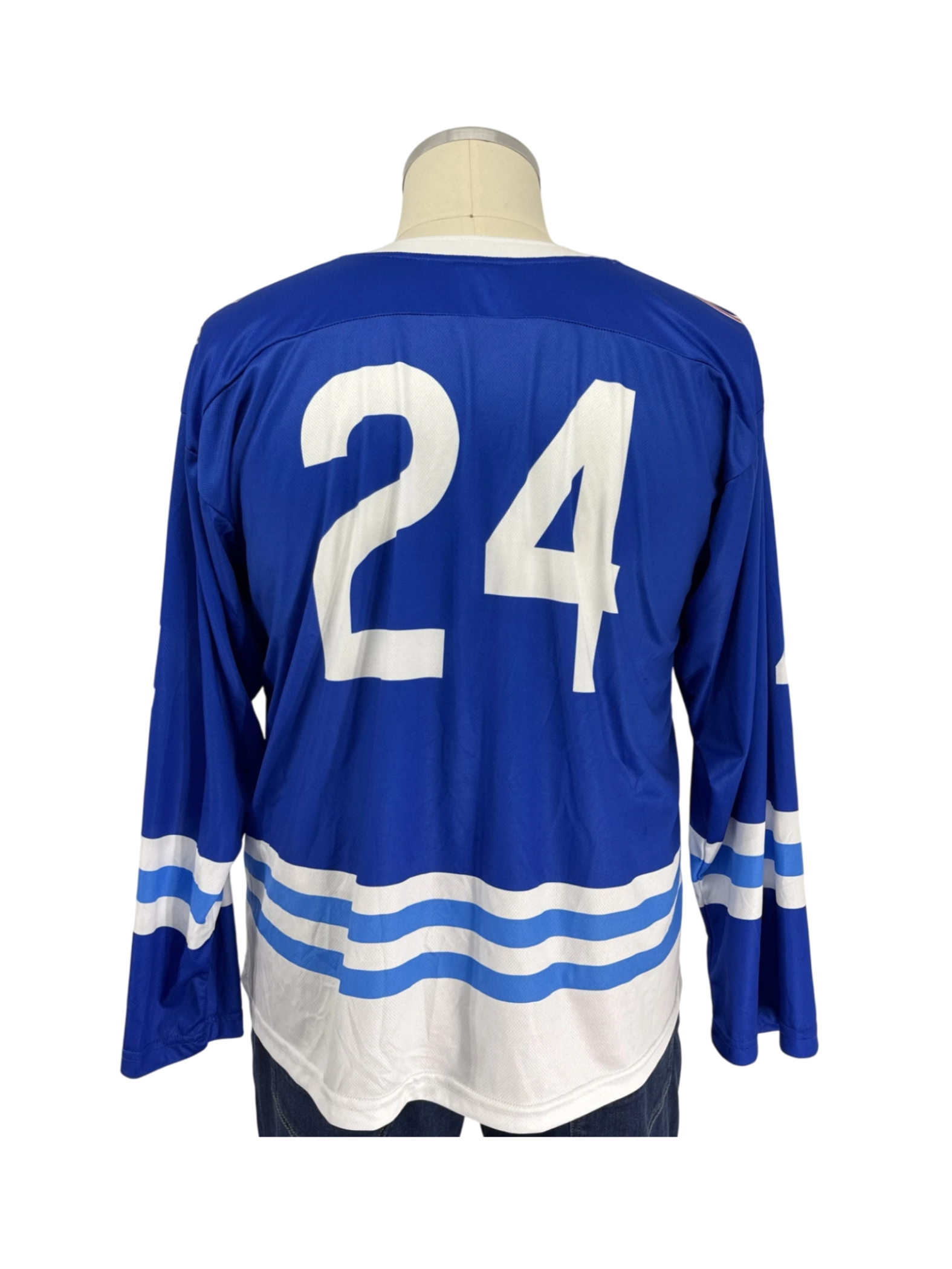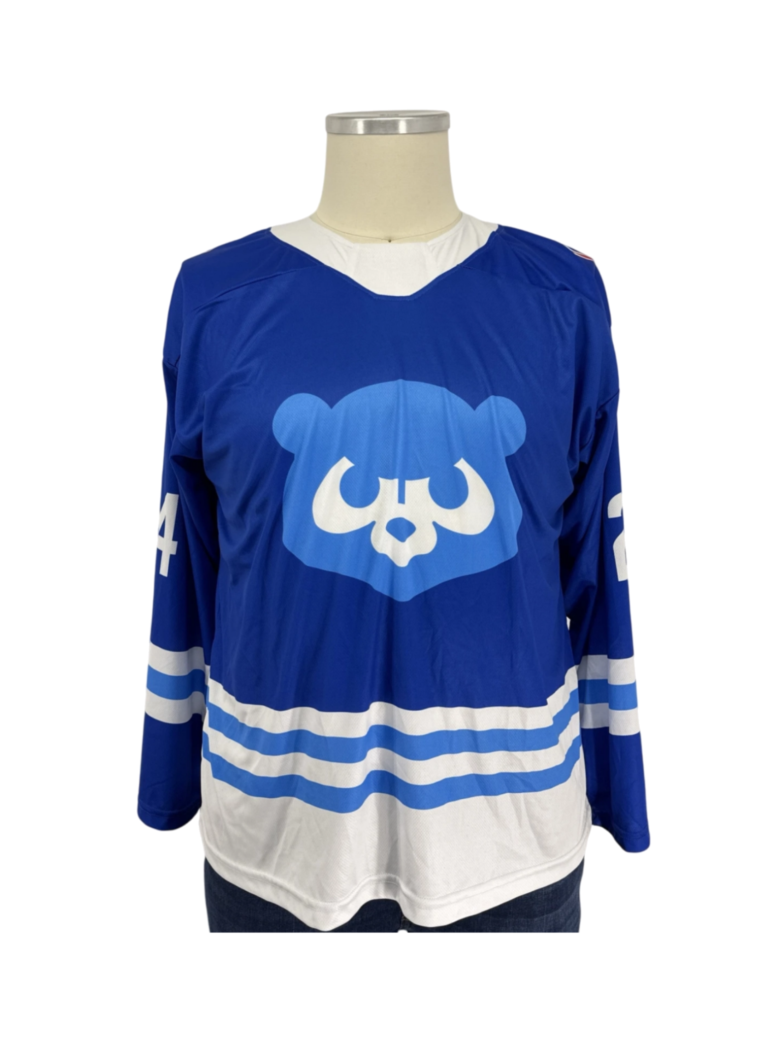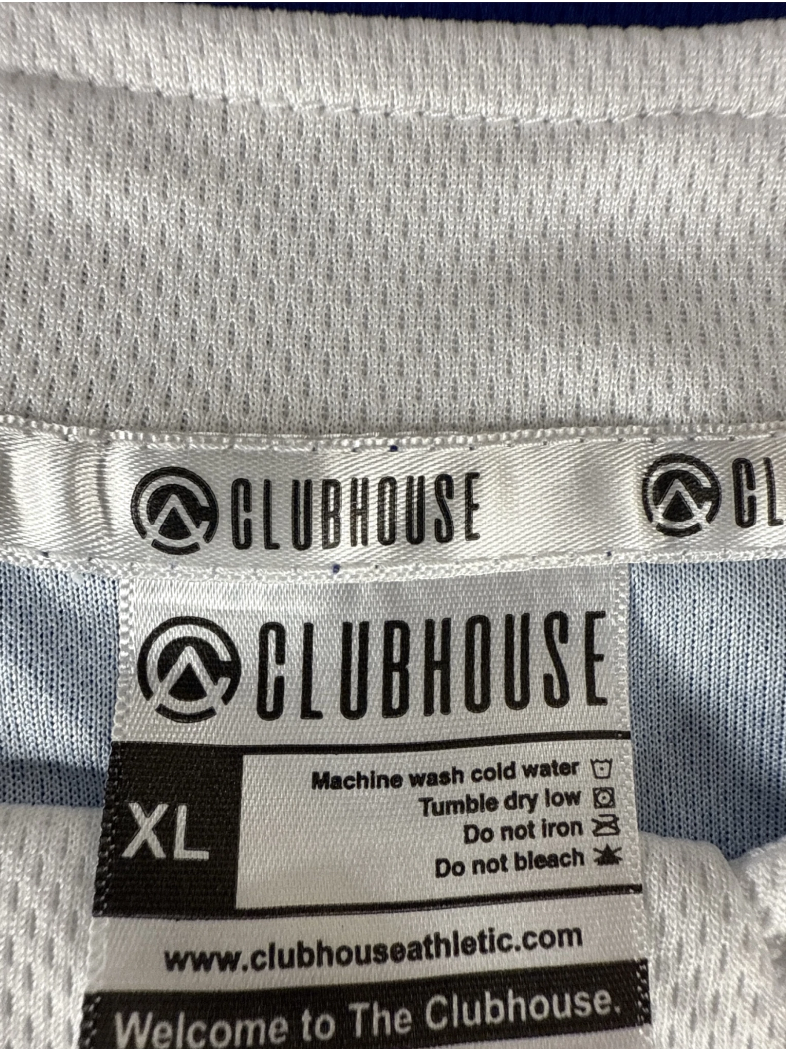 Show your team pride with this pre-owned CLUBHOUSE long sleeve shirt. This vibrant blue jersey features a unique design and is perfect for any fan looking to make a statement. Made from durable polyester, this shirt offers both comfort and style. Perfect for cooler weather, this long sleeve top is ideal for game days, casual outings, or as a unique addition to your wardrobe. Get your piece of fan gear today!