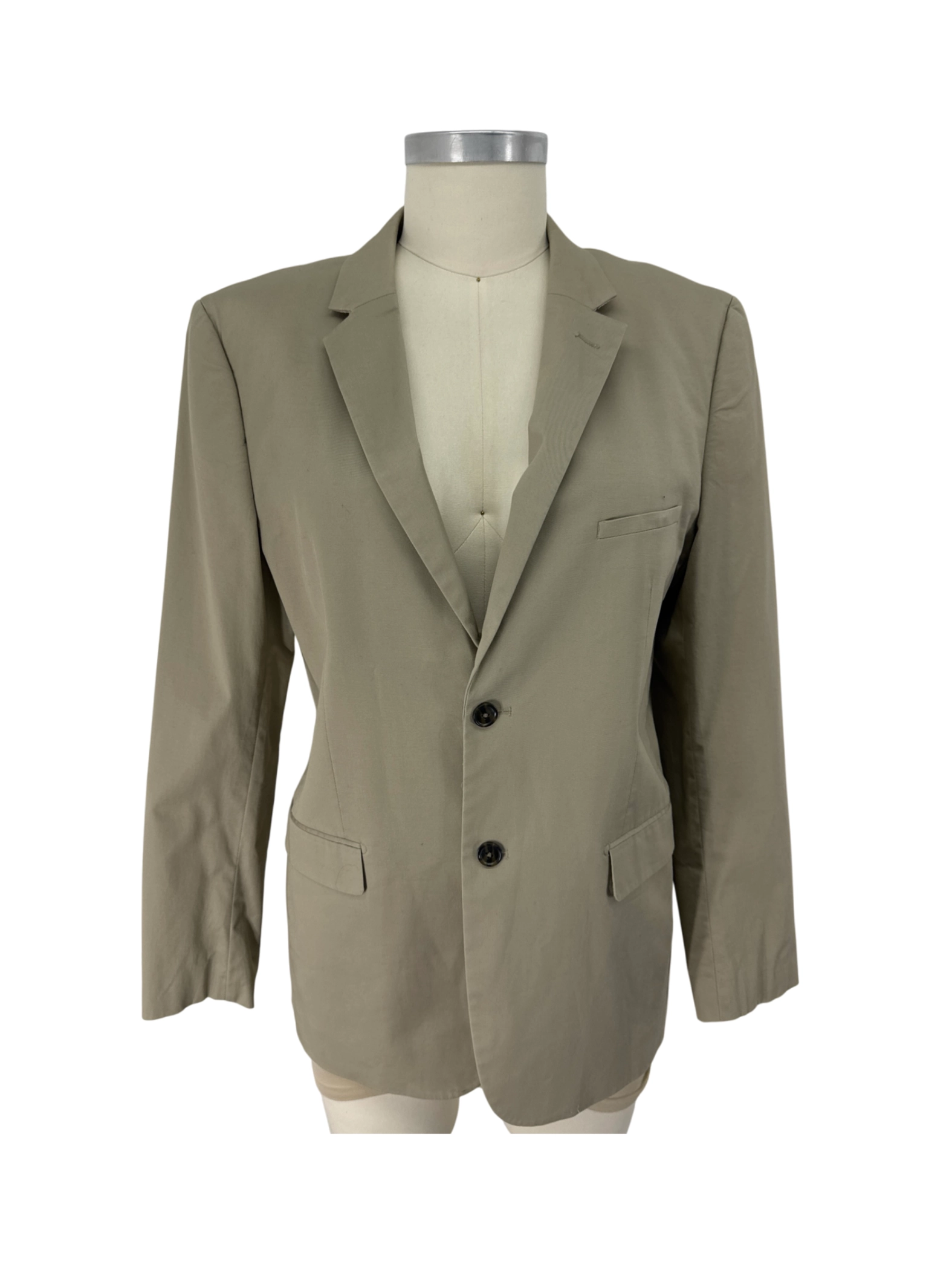 Elevate your wardrobe with this pre-owned MERONA blazer, a sophisticated and versatile piece perfect for any occasion. This classic blazer features a tailored fit, long sleeves, and a stylish design. Crafted from a comfortable cotton blend, it's ideal for layering in spring and fall. The khaki color adds a touch of elegance, making it a timeless addition to your collection. This jacket is a testament to quality and style.