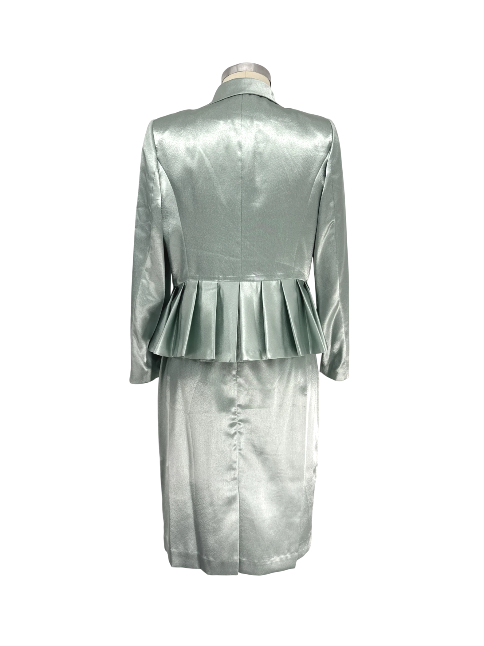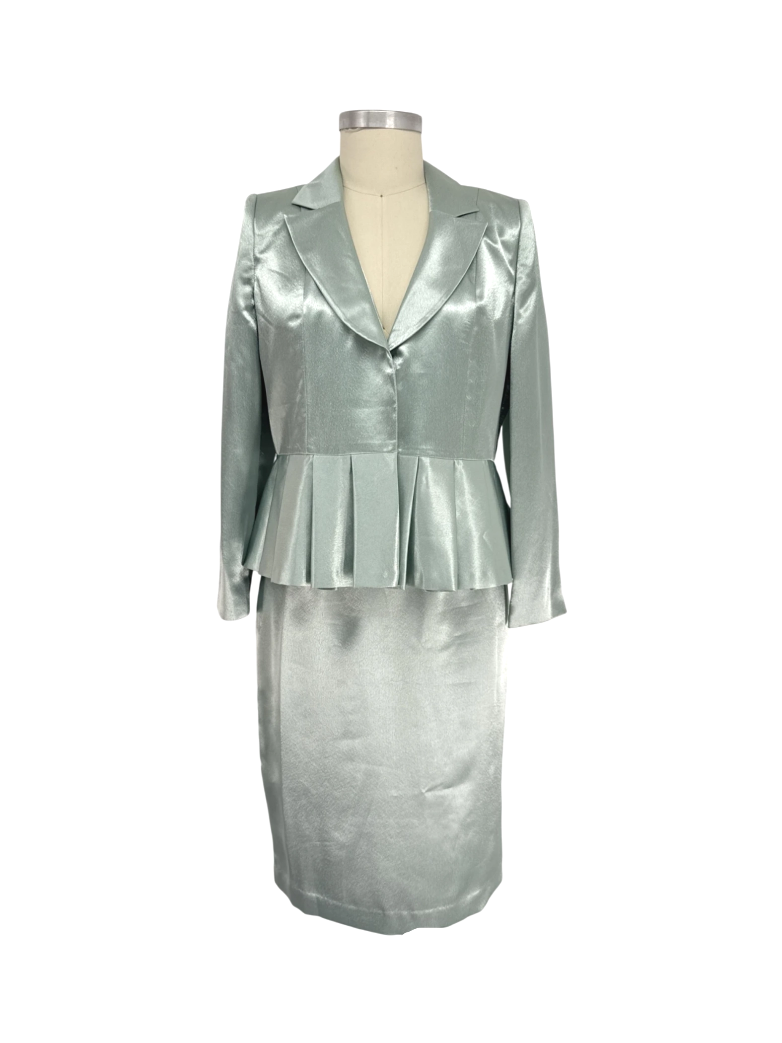 This elegant Michael DeGray blazer and skirt set is a stylish addition to any wardrobe. The set features a classic blazer design and a matching skirt, perfect for business or special occasions. The high-quality material gives a luxurious feel and the tailored fit flatters any figure. Made from 100% polyester, the set is durable, easy to care for, and designed for comfortable wear. A pre-loved find, this set is a perfect blend of vintage charm and modern style.