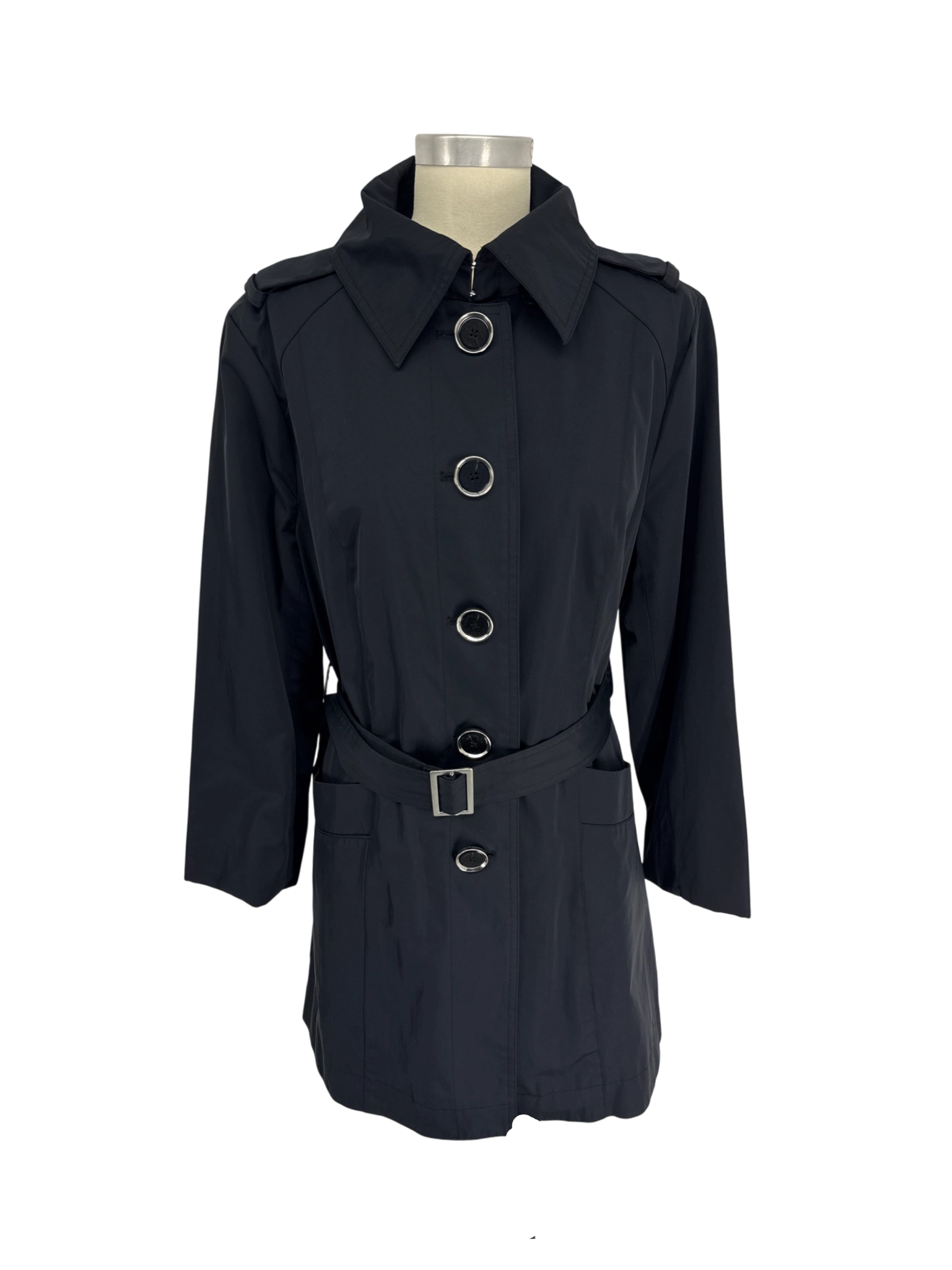 Elevate your outerwear collection with this stylish pre-owned MICHAEL KORS black coat. Crafted from a durable blend of cotton and polyester, this coat offers both comfort and resilience. Its classic design features a flattering silhouette, a belt for a customizable fit, and elegant detailing. Perfect for layering during cooler seasons, this coat is a versatile addition to any wardrobe, offering sophistication and timeless style. This coat is perfect for a chic everyday look.