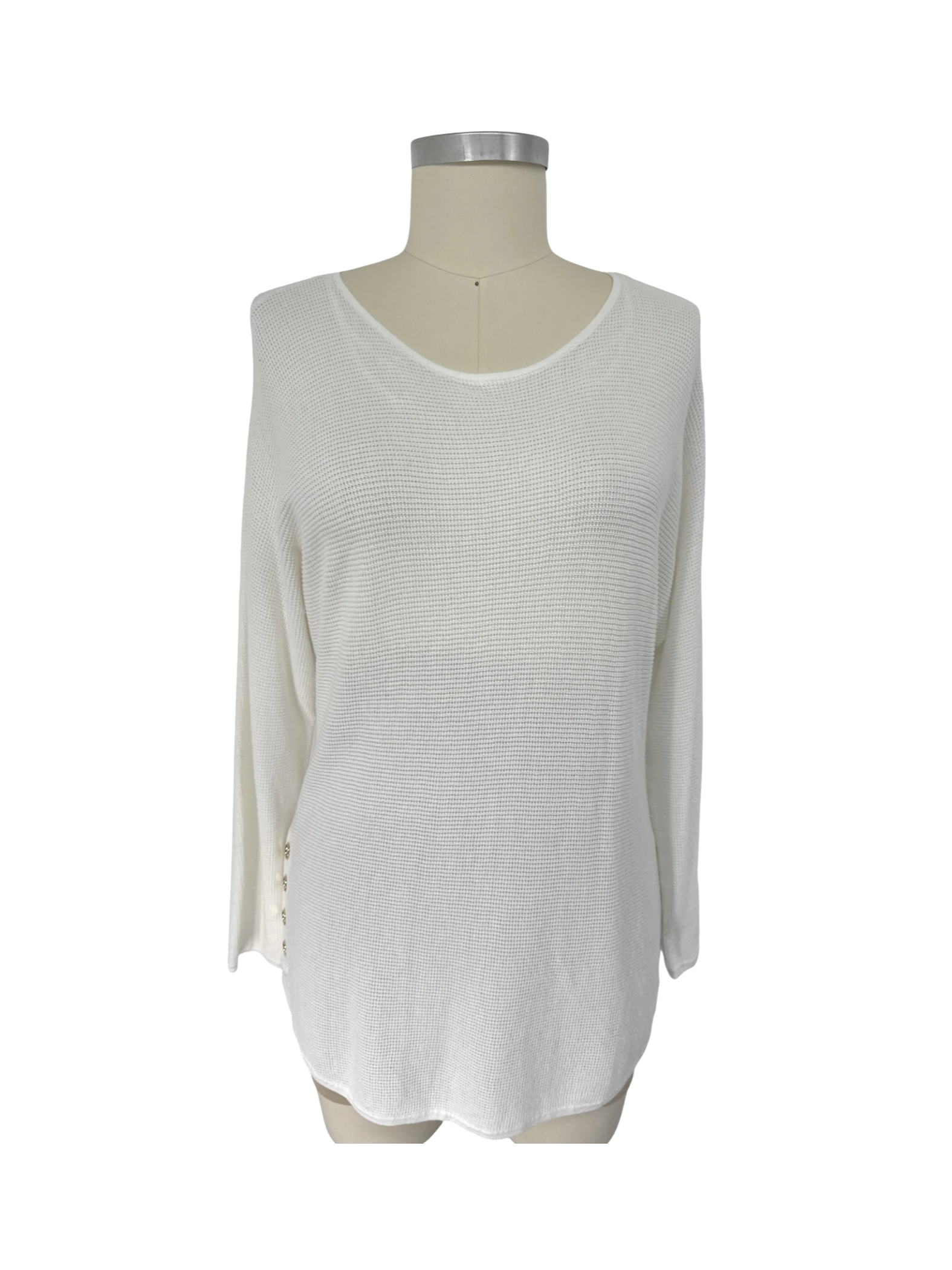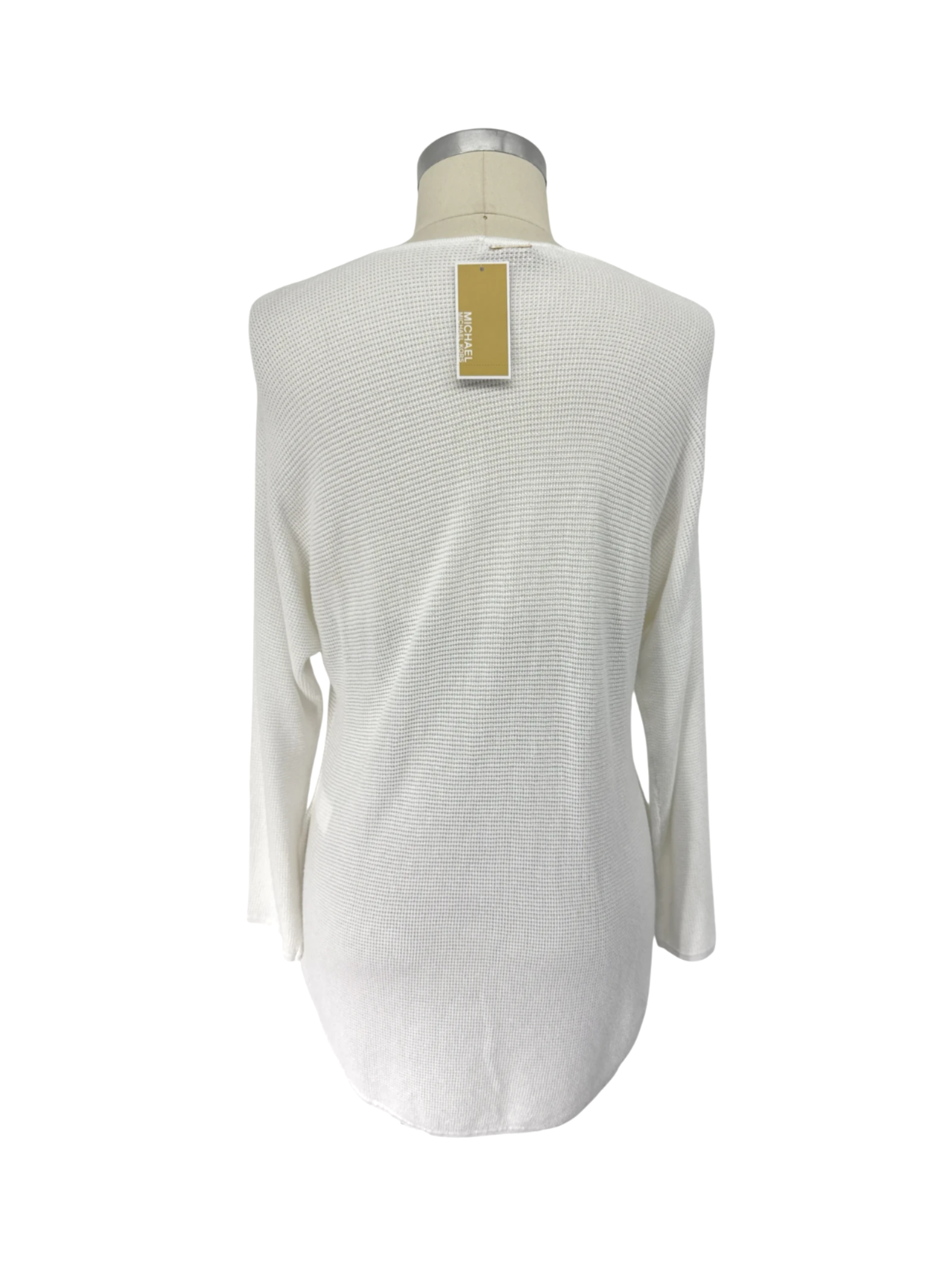Elevate your wardrobe with this pre-owned Michael Kors sweater. This stylish piece boasts a classic round neck and a versatile white hue, perfect for any occasion. Crafted from a soft blend of cotton, viscose, and nylon, this sweater offers both comfort and durability. Ideal for spring or fall, it's a timeless addition to any woman's collection. Pair it with your favorite jeans or skirt for a chic, effortless look. Get ready to make a statement with this must-have sweater!