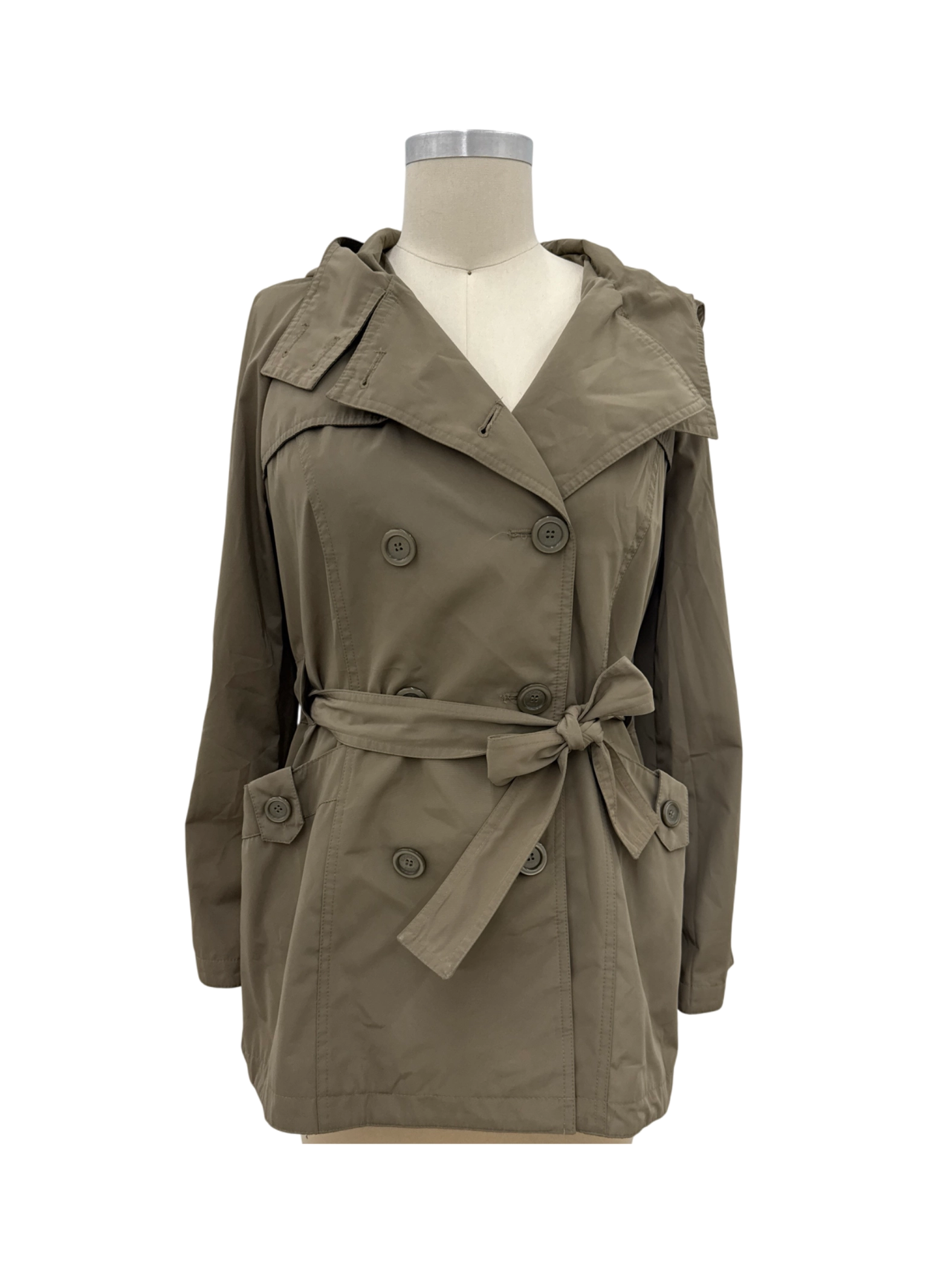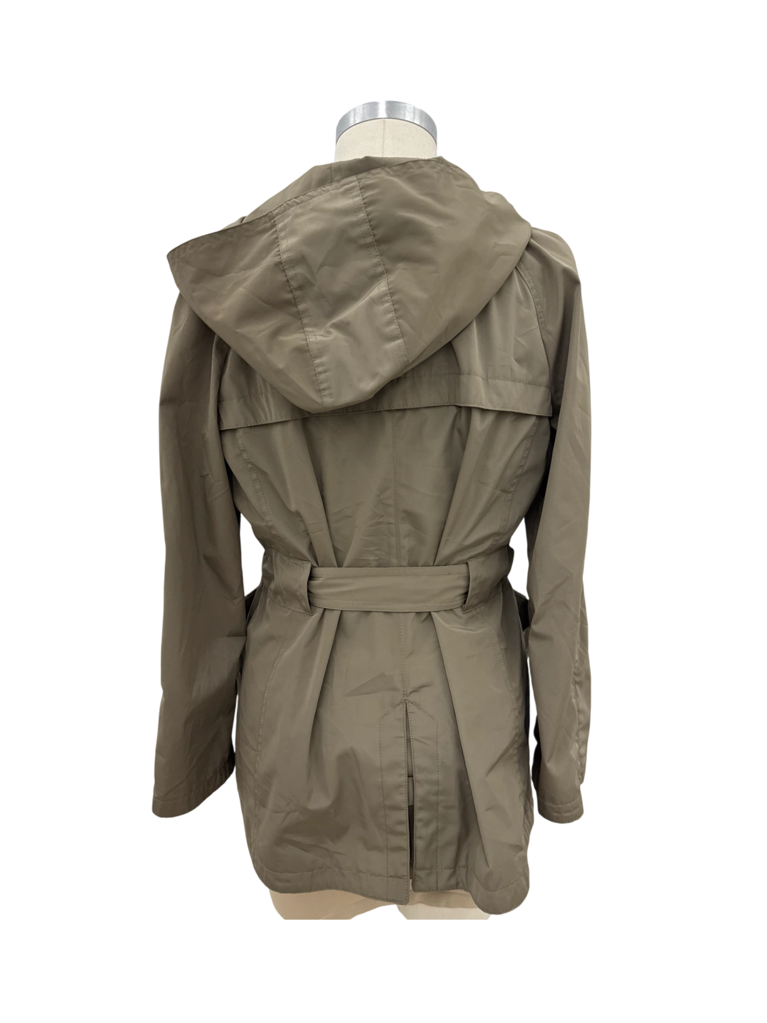 This pre-owned Michael Kors coat is a stylish and versatile addition to any wardrobe. The coat features a classic design with a hood and a belt, perfect for layering during cooler seasons. Made of durable polyester, this coat offers both comfort and functionality. The neutral brown color makes it easy to pair with various outfits. Perfect for a chic and practical everyday look. This coat is designed for a timeless appeal.