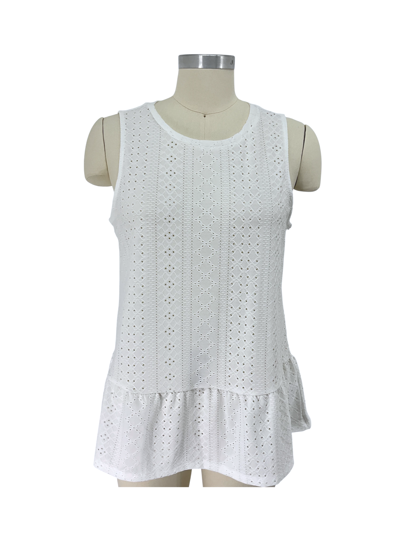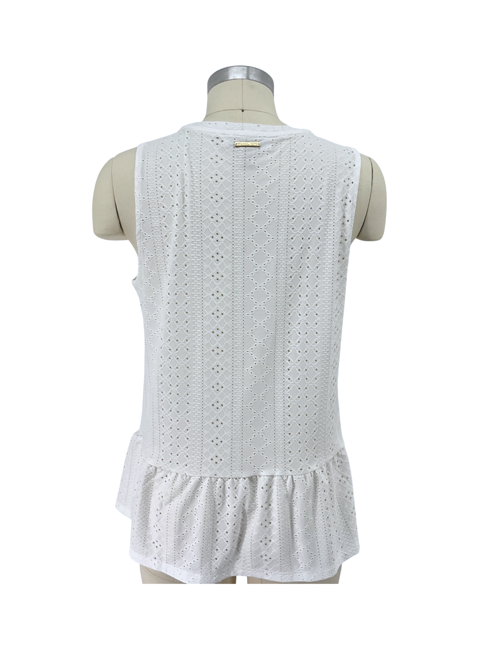 The white Michael Kors Ruched Shoulder Eyelet Top is available in size medium with a round neck.