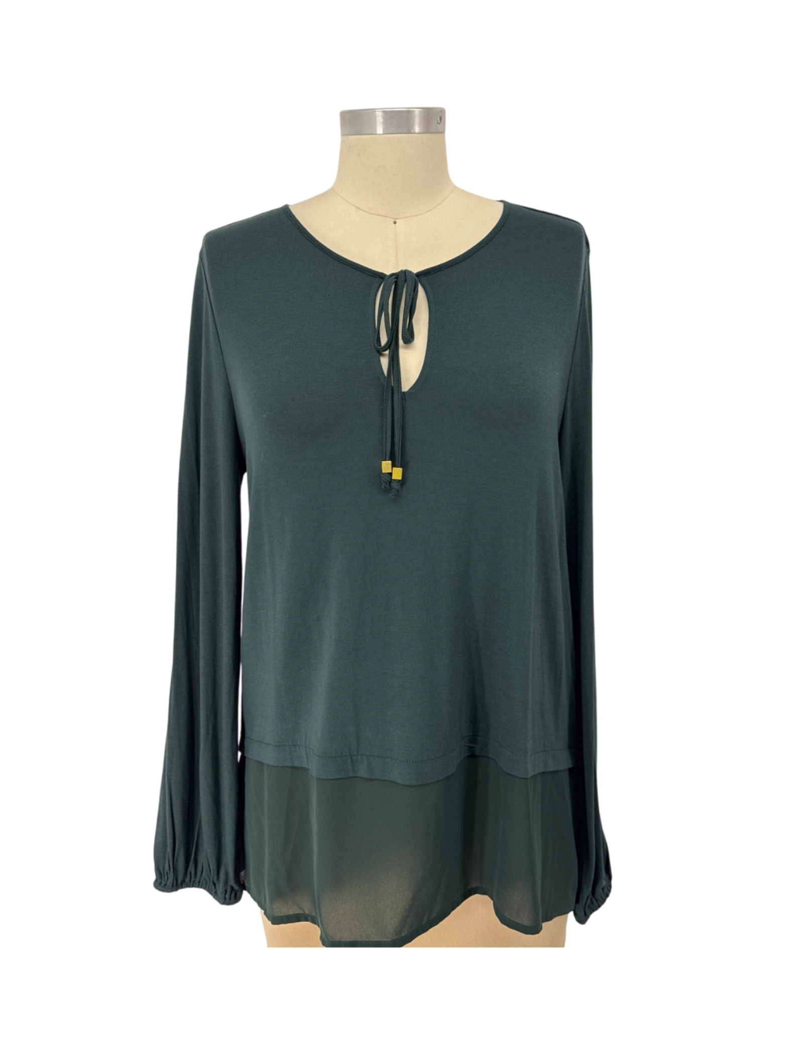 This MICHAEL Michael Kors top is a stylish and versatile addition to any wardrobe. The long-sleeve tunic features a flattering silhouette with a round neck and keyhole detail. Crafted from a comfortable blend of polyester and viscose, it's perfect for fall and winter. This pre-owned top is in great condition, offering both style and value. A timeless piece that can be dressed up or down for any occasion.