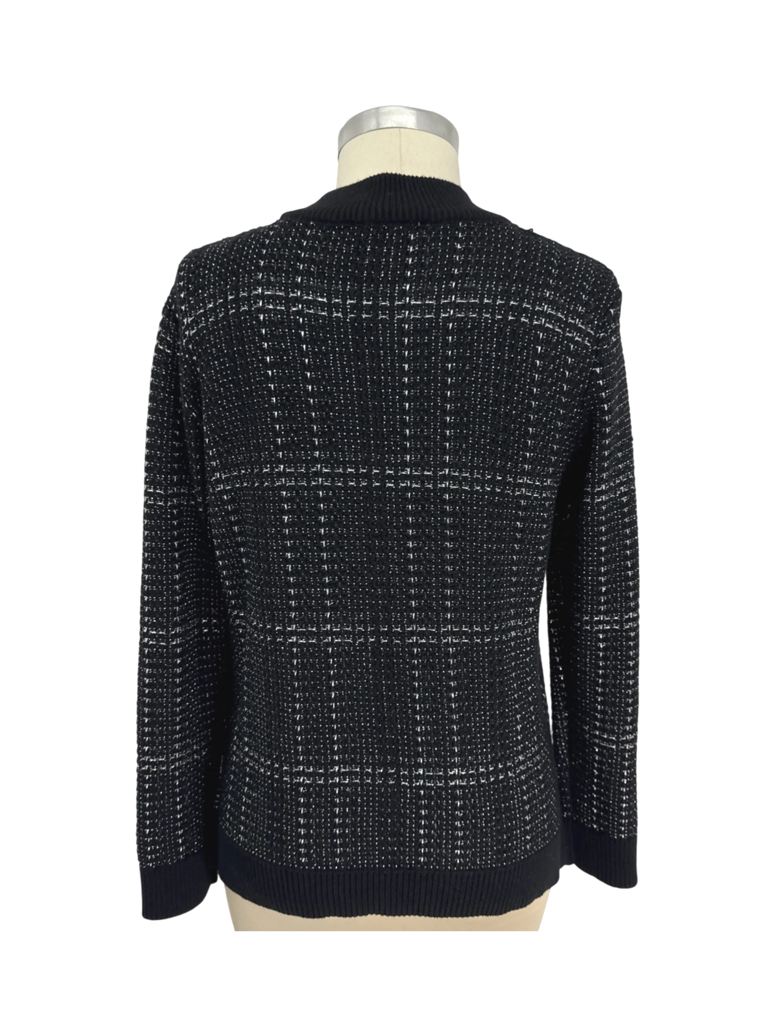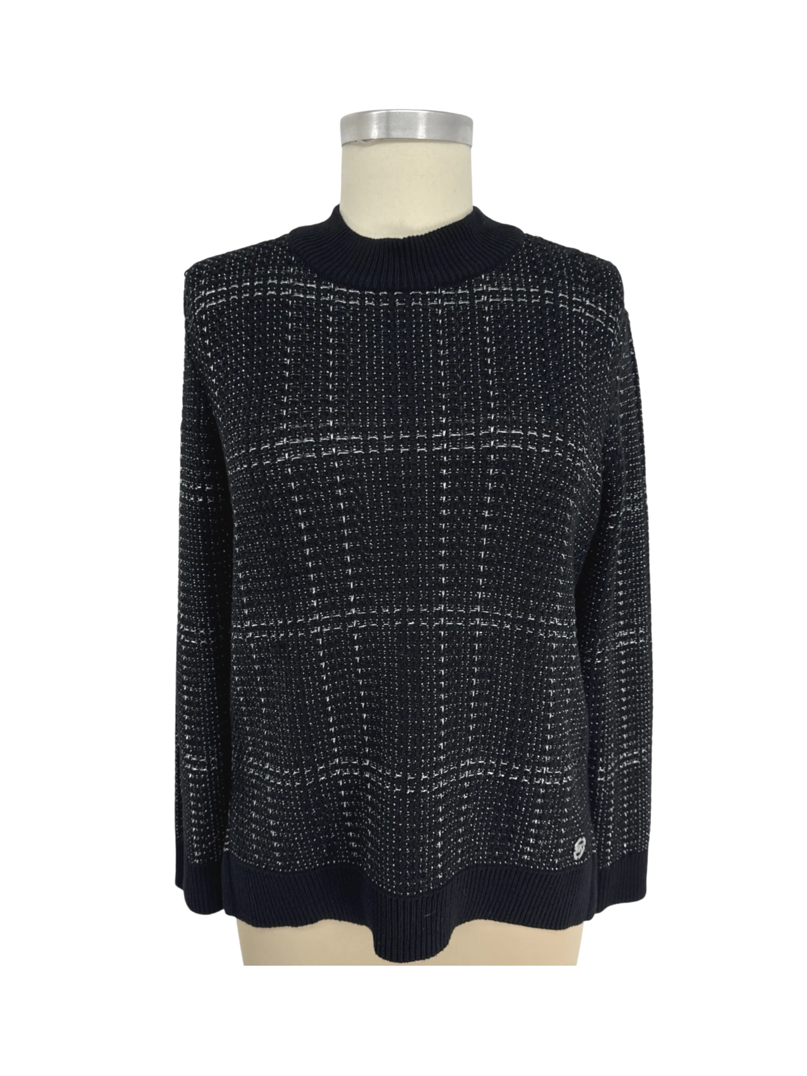 Elevate your wardrobe with this pre-owned MICHAEL Michael Kors sweater. This stylish sweater features a classic turtleneck, a chic black and white checkered pattern, and a touch of metallic detailing. Crafted from a blend of cotton and polyester, it offers both comfort and durability. Ideal for fall and winter, this pullover sweater is perfect for a sophisticated casual look. It’s a great addition to your collection, combining designer style with everyday wearability.