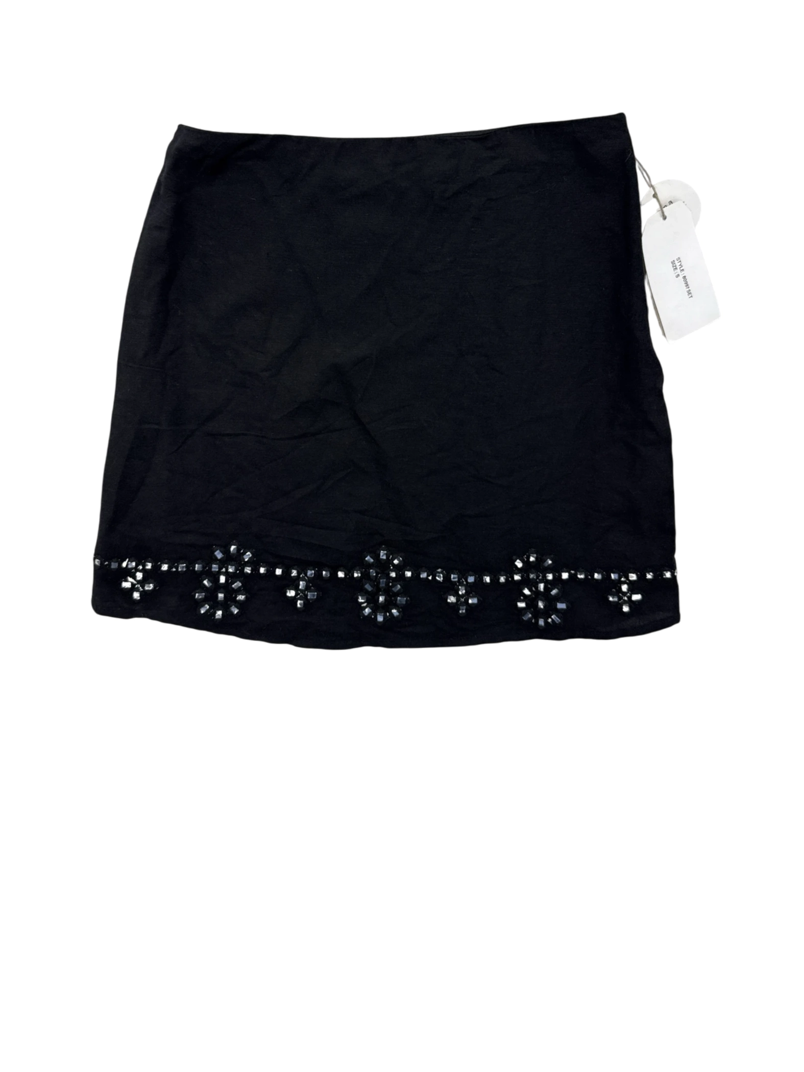 This chic, pre-owned Midnight Sky skirt is a stylish addition to any wardrobe. The mini A-line silhouette is flattering and versatile, perfect for both casual and dressier occasions. Crafted from a comfortable blend of rayon, cotton, and linen, the skirt is finished in black, making it easy to pair with any top. Featuring subtle embellishments, this skirt offers a touch of sophistication. A timeless piece at an attractive price. - This chic, pre-owned MIDNIGHT SKY skirt is a versatile addition to any wardrobe. Featuring a flattering A-line silhouette, embellished detail and crafted from a comfortable blend of rayon, cotton and linen. Perfect for warmer weather, this mini skirt is ideal for casual outings or dressing up for a night out. Its classic black hue ensures easy pairing with various tops and footwear, offering endless styling possibilities. A stylish and sustainable choice.
