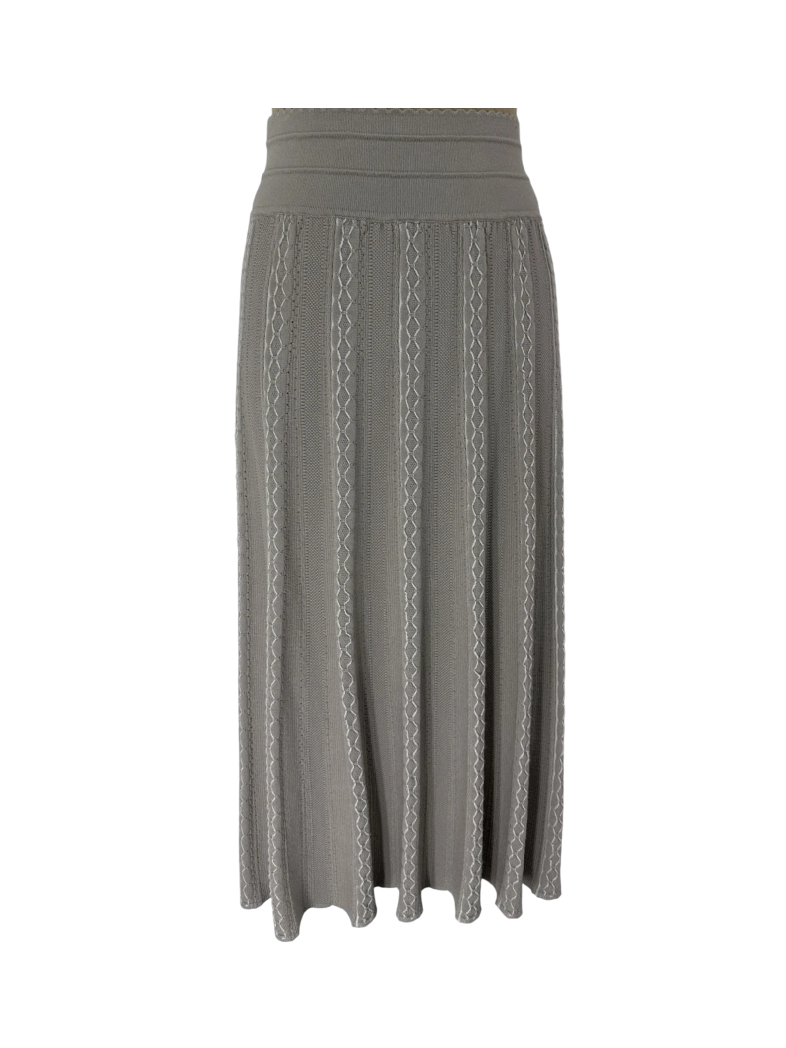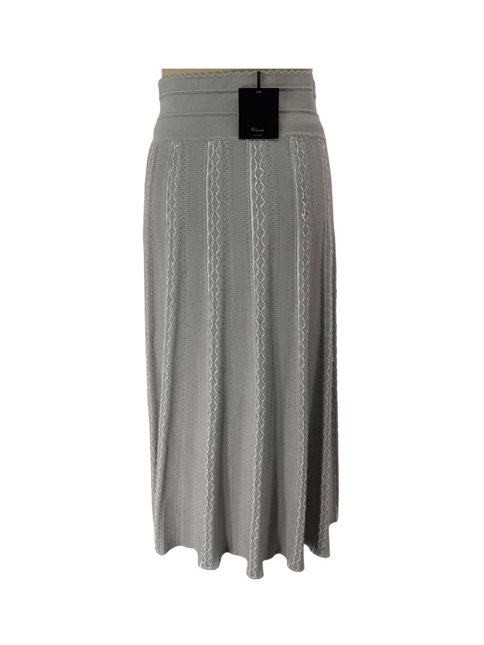 This pre-owned Milano skirt offers a sophisticated and versatile addition to any wardrobe. The elegant gray color and knit design create a timeless look, perfect for a variety of occasions. With its flattering A-line silhouette and maxi length, this skirt provides both comfort and style. It’s ideal for the colder months and is in excellent condition, making it a great value for fashion-conscious buyers.