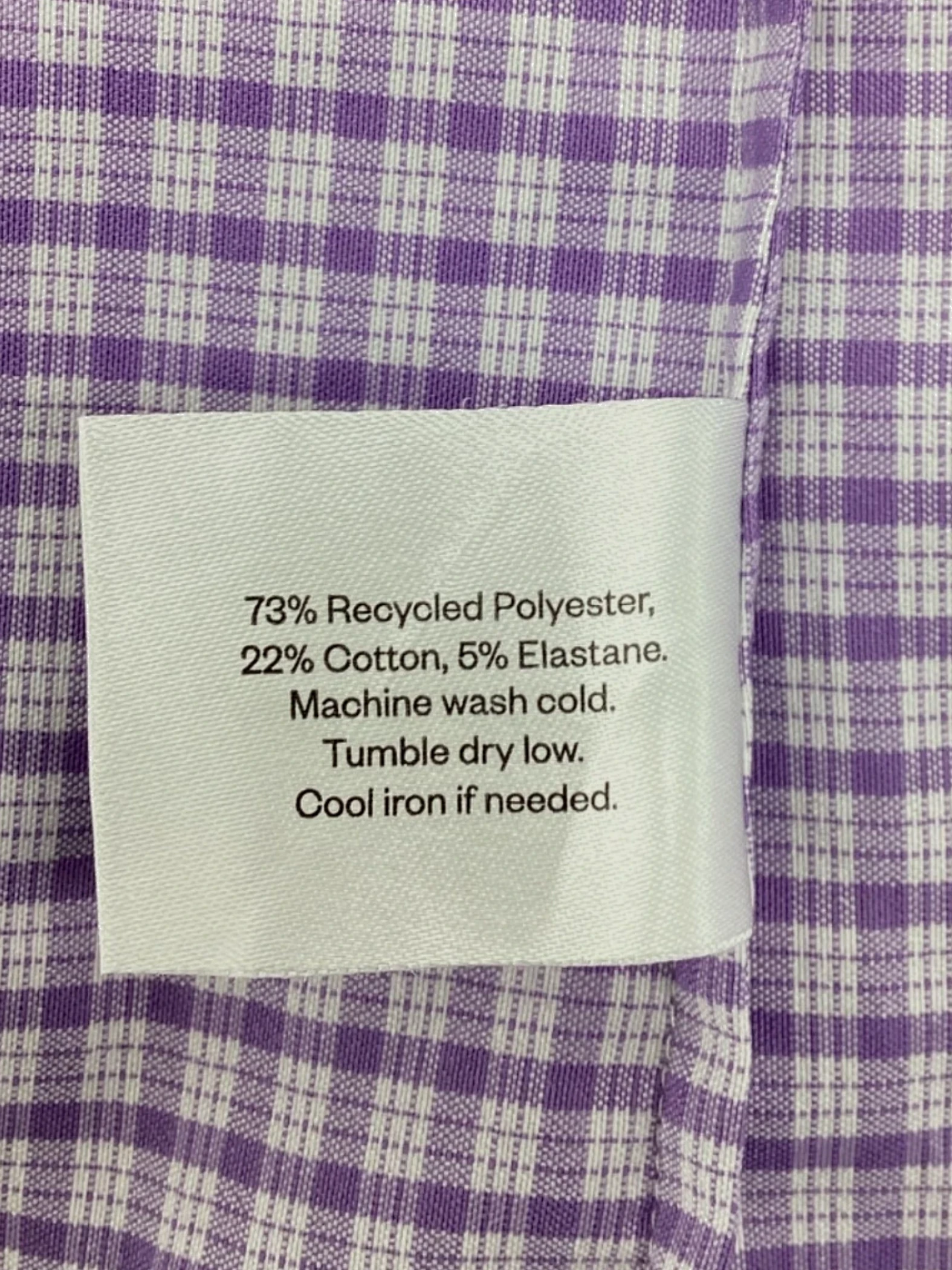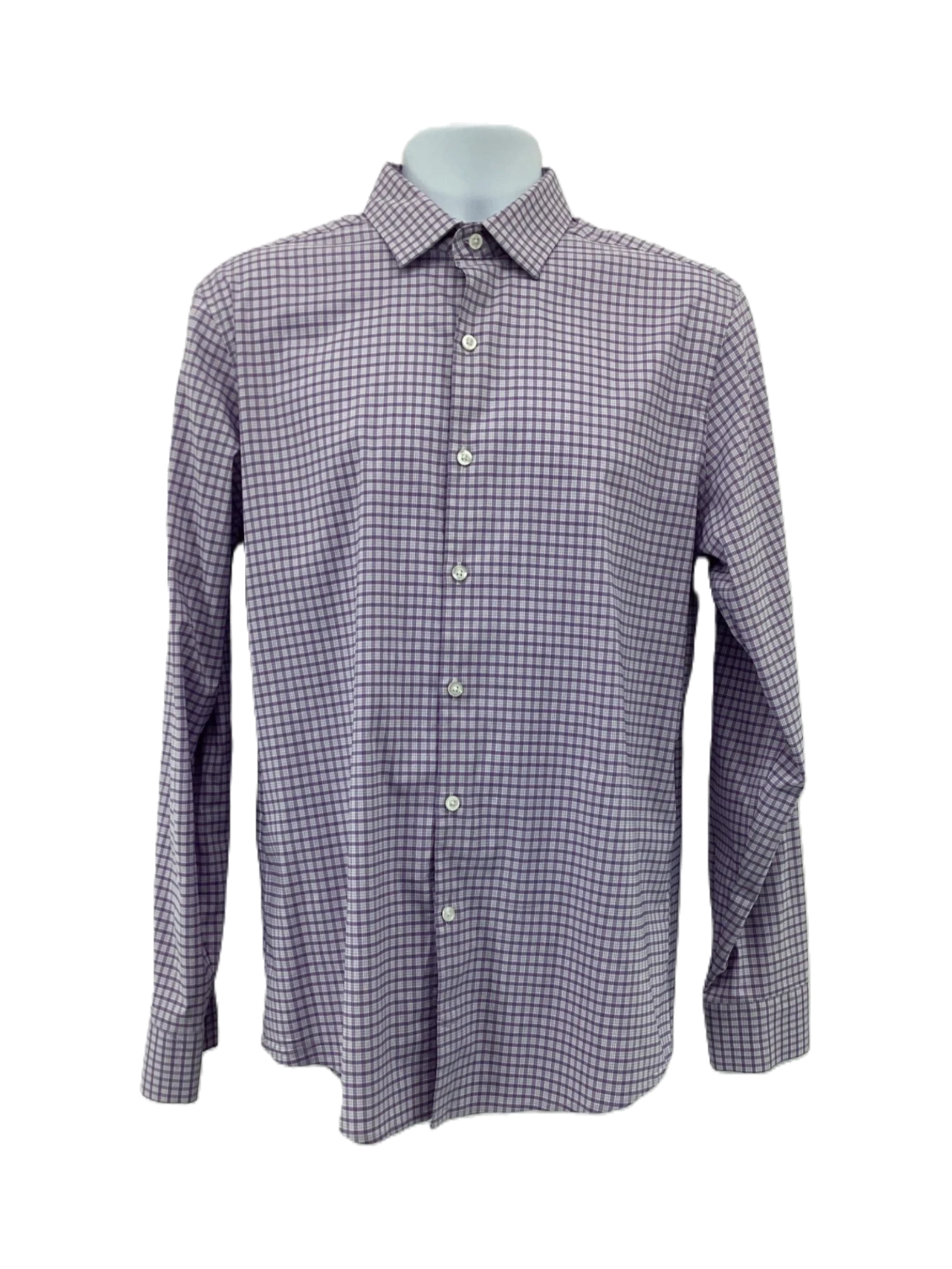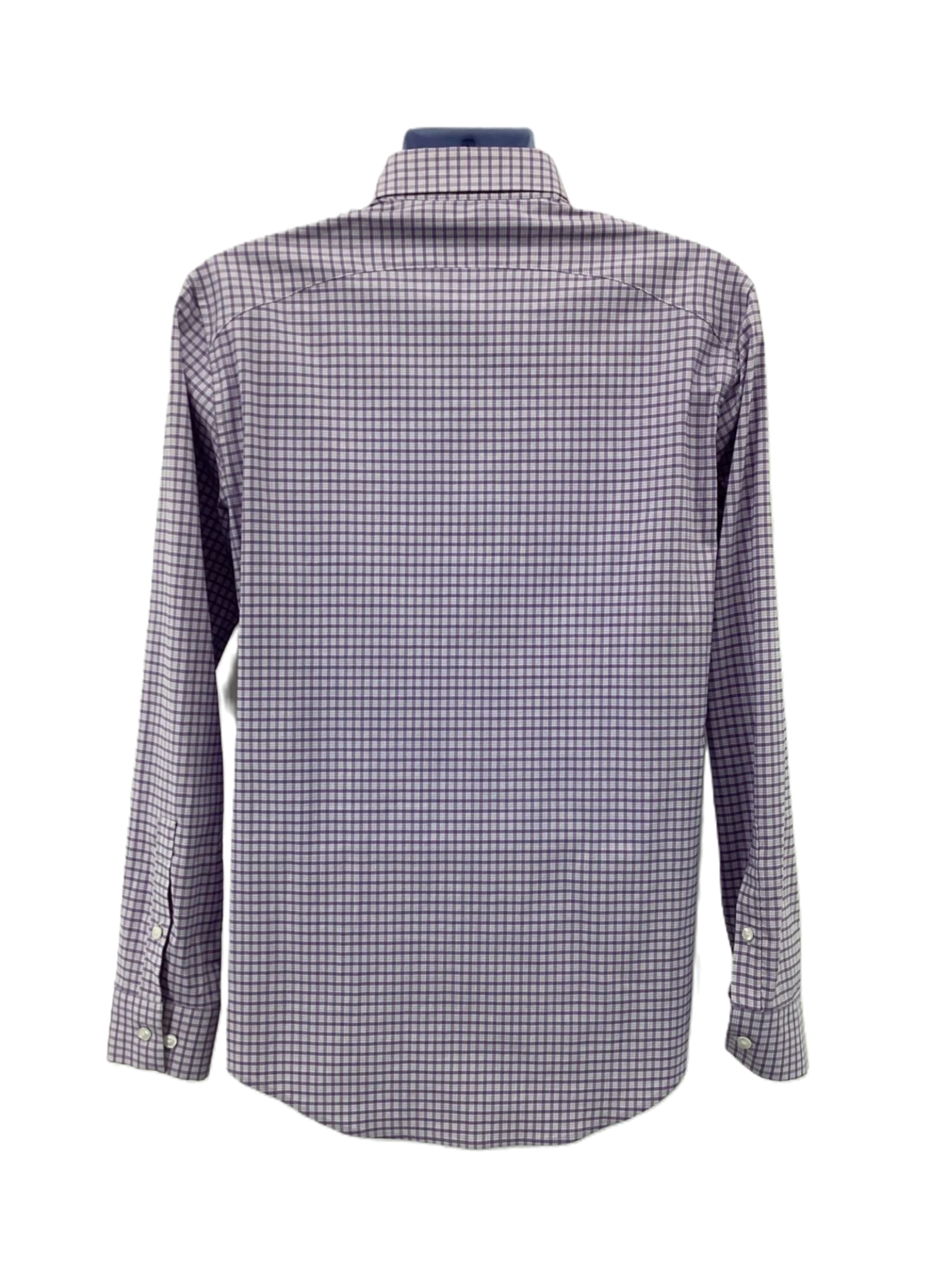 This is a purple plaid button-up shirt.