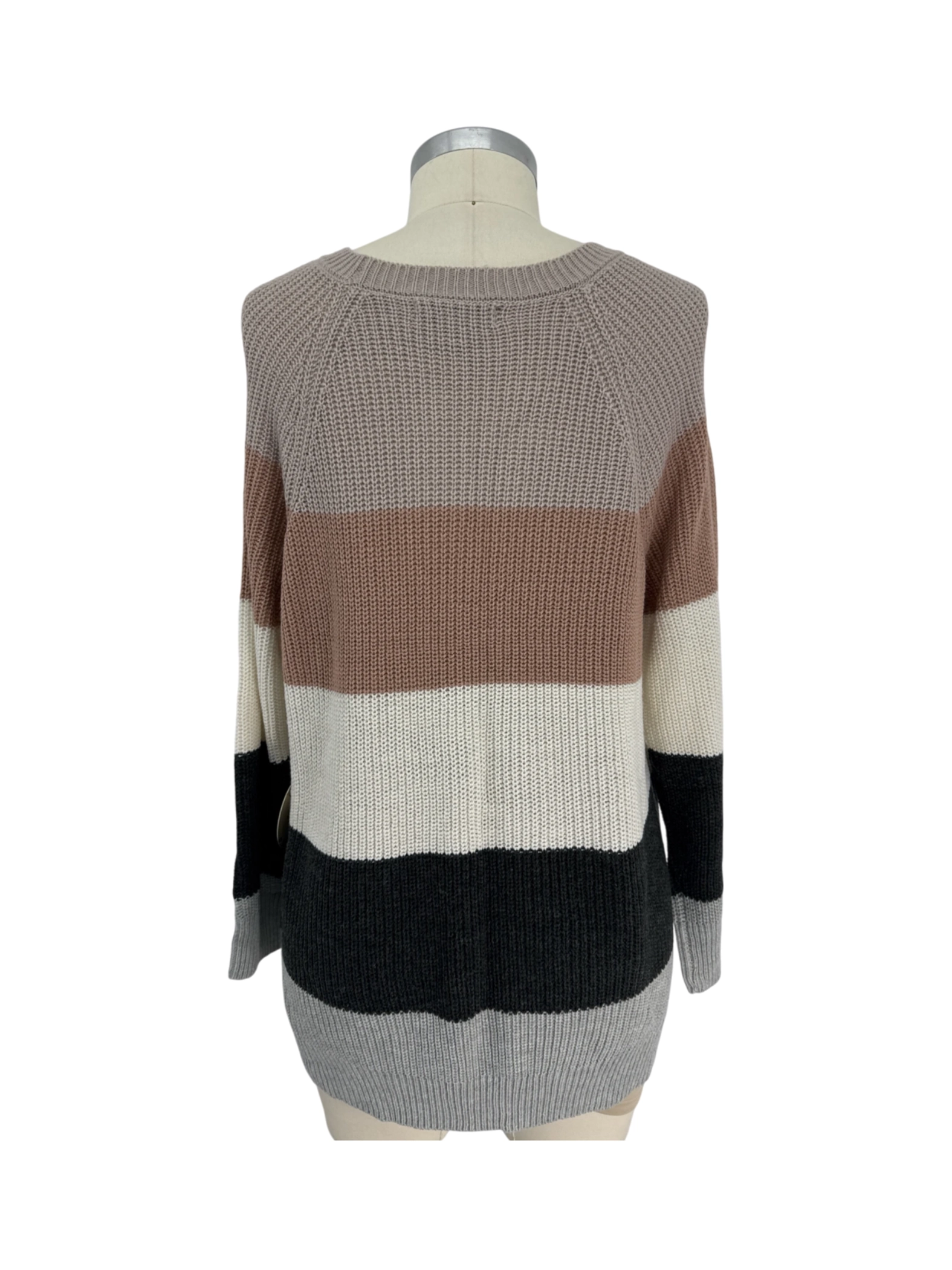 This MISIA sweater is a stylish addition to any wardrobe. Crafted from a soft acrylic blend, this pre-owned sweater features a classic round neck and a comfortable fit. With its multicolor stripes design, it's perfect for cooler days. The sweater is in excellent condition, offering both comfort and style at an affordable price.