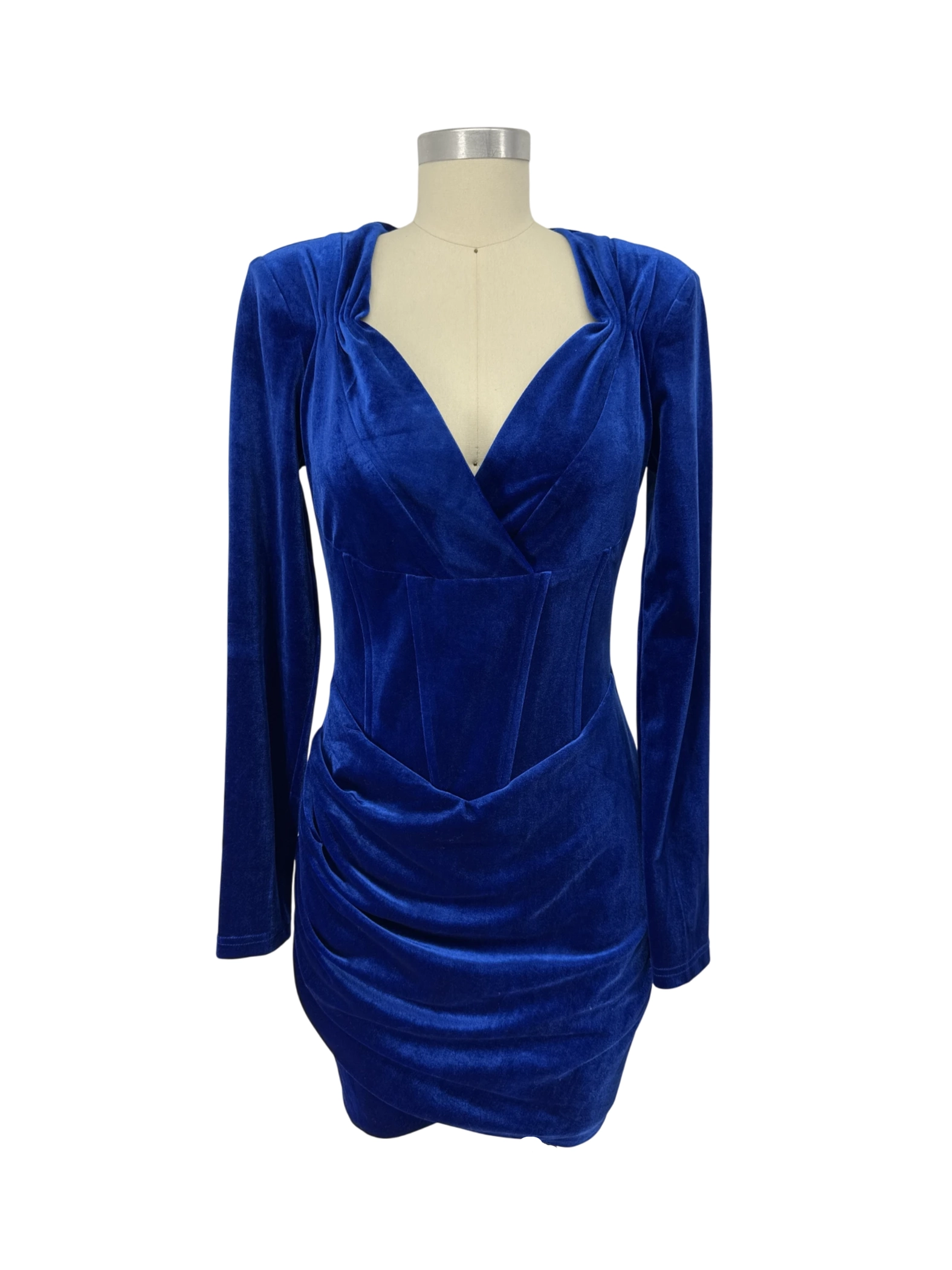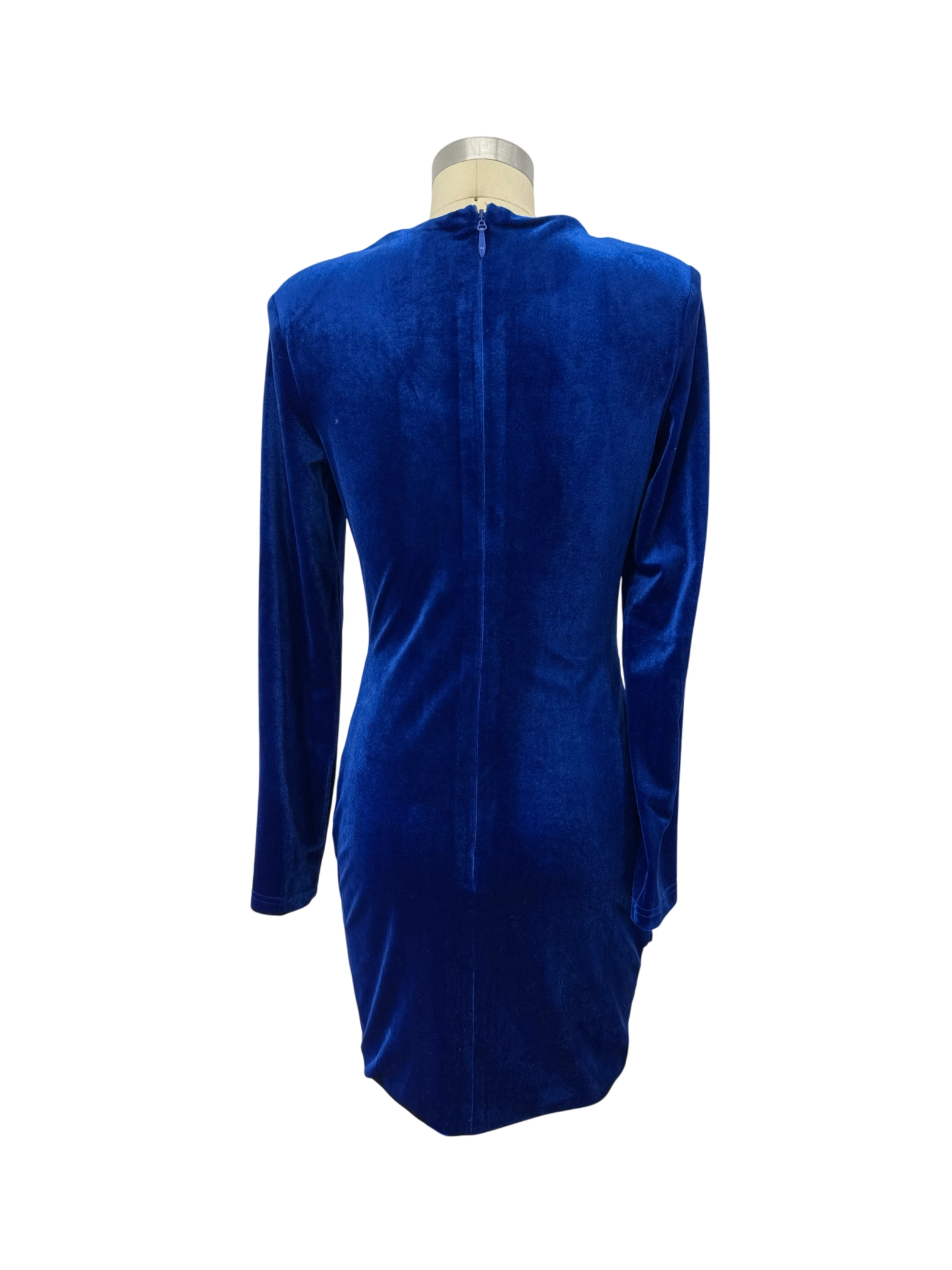 Elevate your evening look with this stunning MISS CIRCLE bodycon dress. This pre-owned mini dress features a flattering V-neckline and elegant long sleeves. Crafted from a luxurious blue velvet fabric, it offers a comfortable yet chic fit. Perfect for cocktail parties or a night out, this dress will make you feel confident and stylish. This dress is a perfect example of high-quality fashion that offers both comfort and style. A must-have addition to any woman's wardrobe, providing versatile style. It is perfect for both casual and glamorous occasions.
