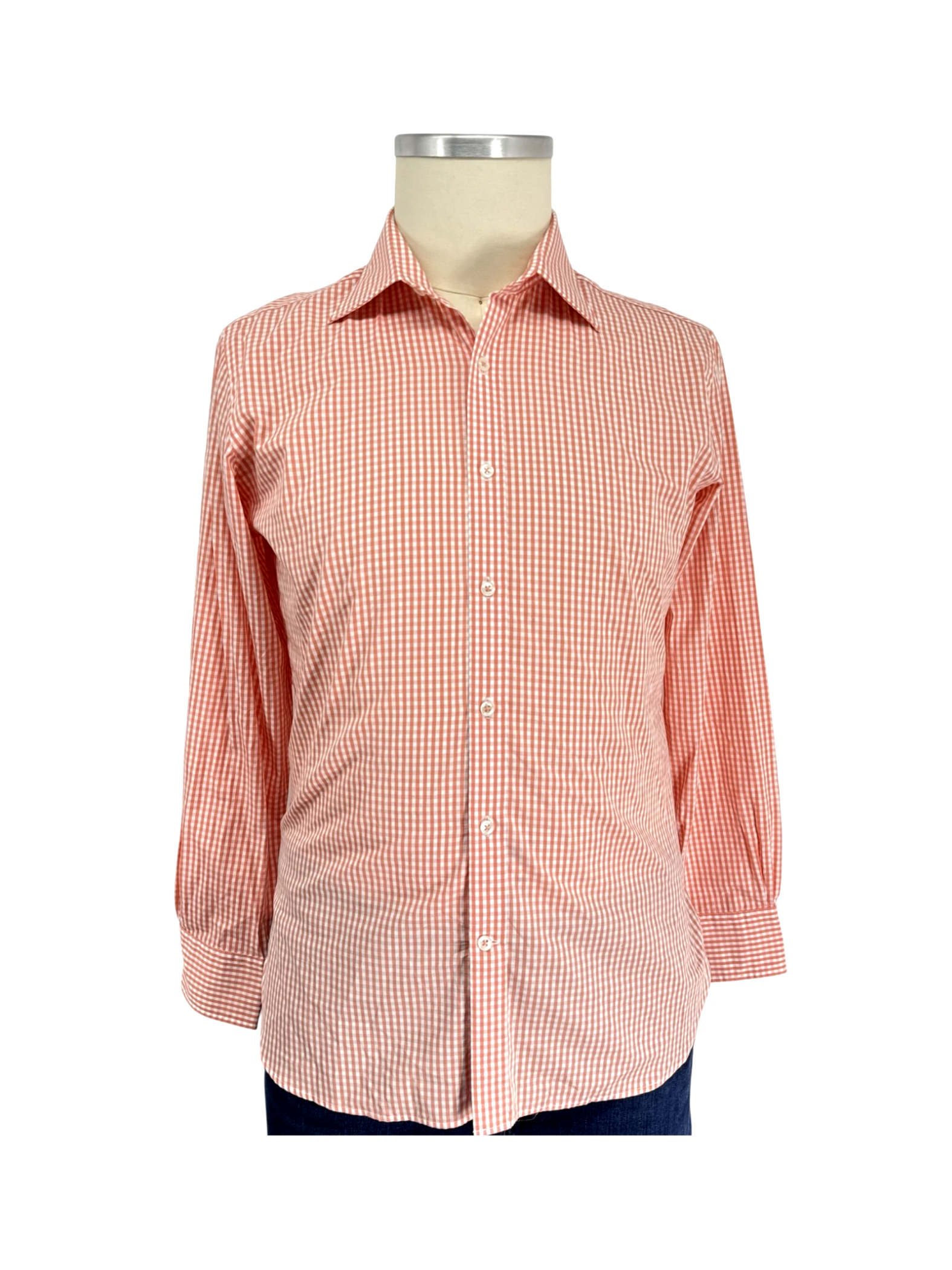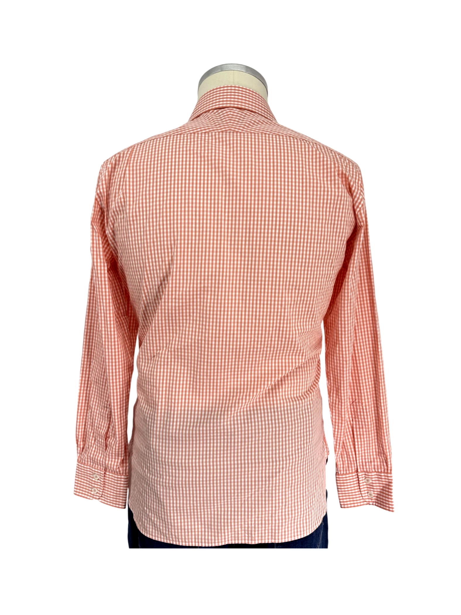 Elevate your wardrobe with this pre-owned M.J. Bale men's long sleeve shirt, perfect for any occasion. Featuring a stylish checkered pattern in vibrant orange, this shirt is sure to turn heads. Crafted with quality materials, it offers both comfort and durability. The classic collar and button-up closure add a touch of sophistication. Ideal for spring, summer, and fall, this shirt is a versatile addition to your collection. Find the perfect fit and make a statement with this timeless piece.